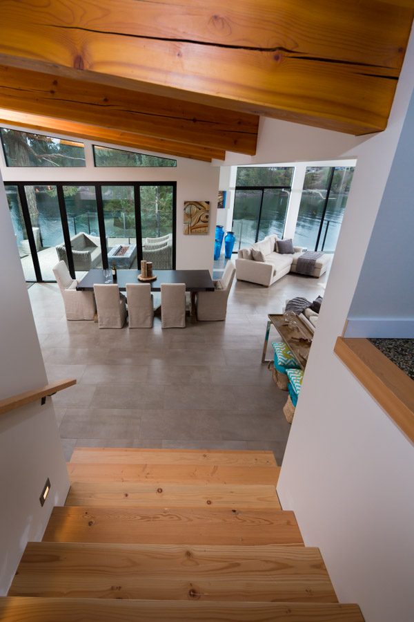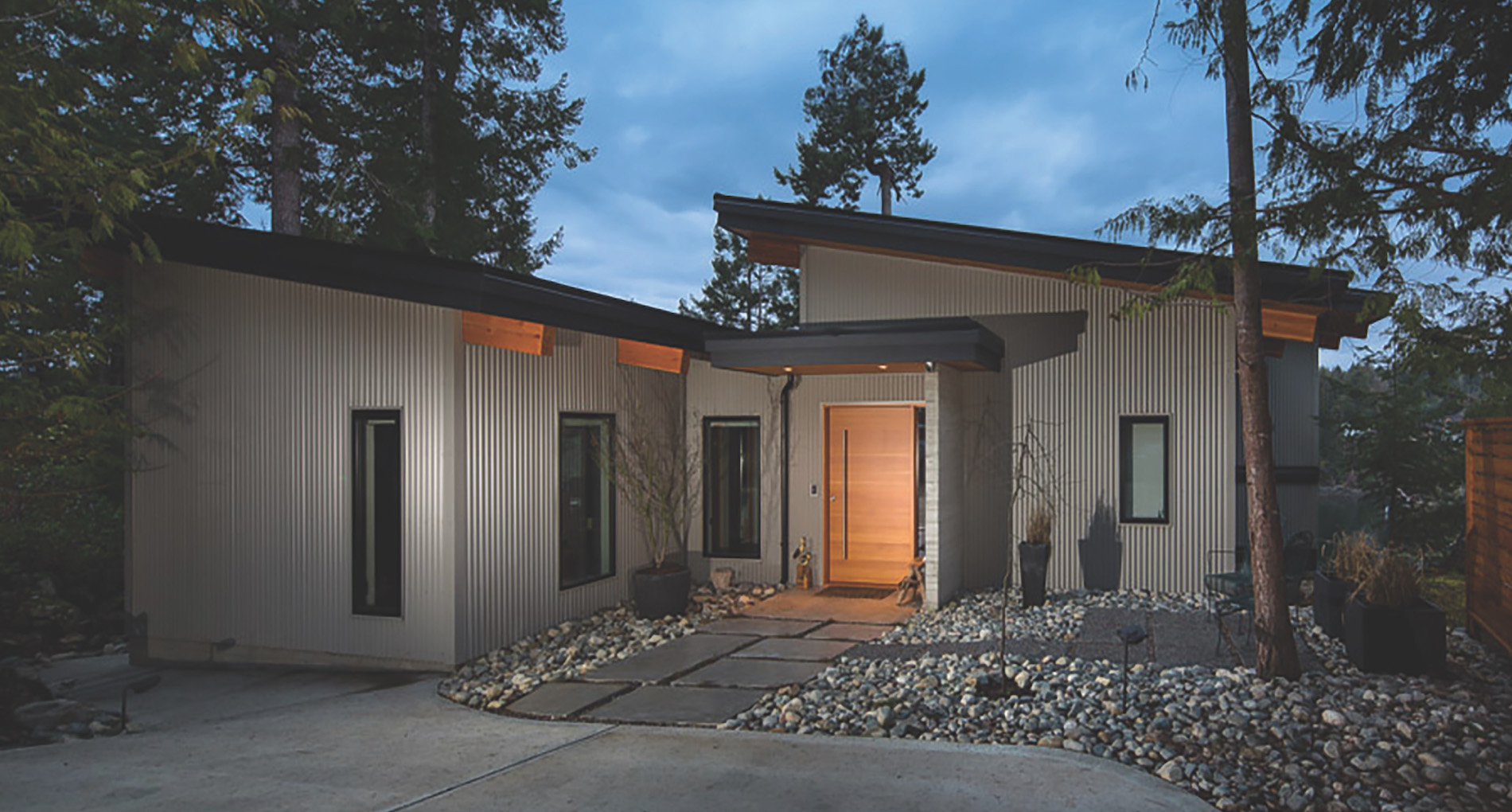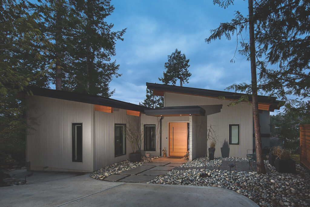 This Cliffside home is an open-concept contemporary design with many eco-friendly features. The entire home is completely automated and is equipped with geothermal radiant heat throughout. Nestled on a bedrock cliff in a quiet ocean bay this is a low maintenance home that is finished with metal siding and roofing.