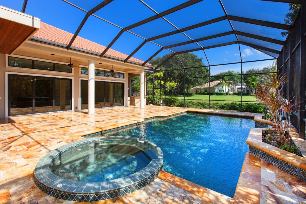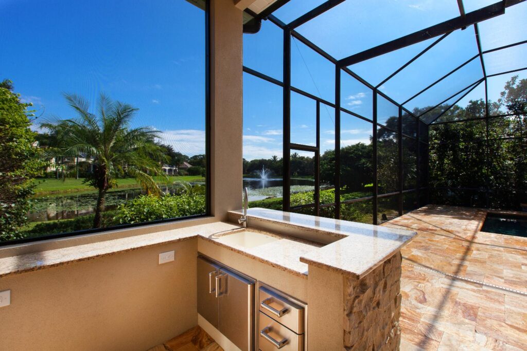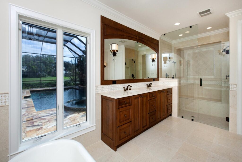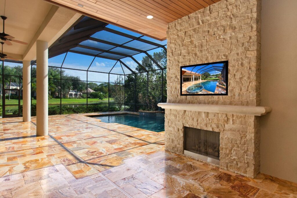 The outdoor living space is designed for ultimate relaxation and entertainment, featuring an outdoor lanai with heat, a fireplace, and bi-fold patio doors that seamlessly integrate with the interior dining area. The primary and guest baths are the epitome of luxury, finished with the finest cabinets, tiles, and plumbing fixtures. Completed in just 11 months, this residence offers an exquisite blend of comfort and style, making it a true sanctuary.