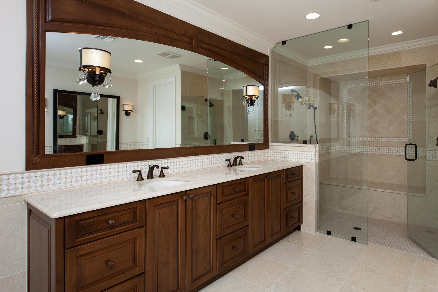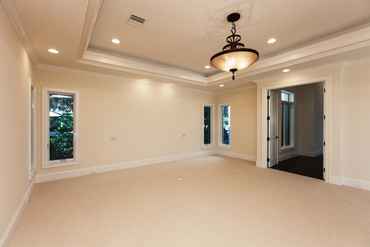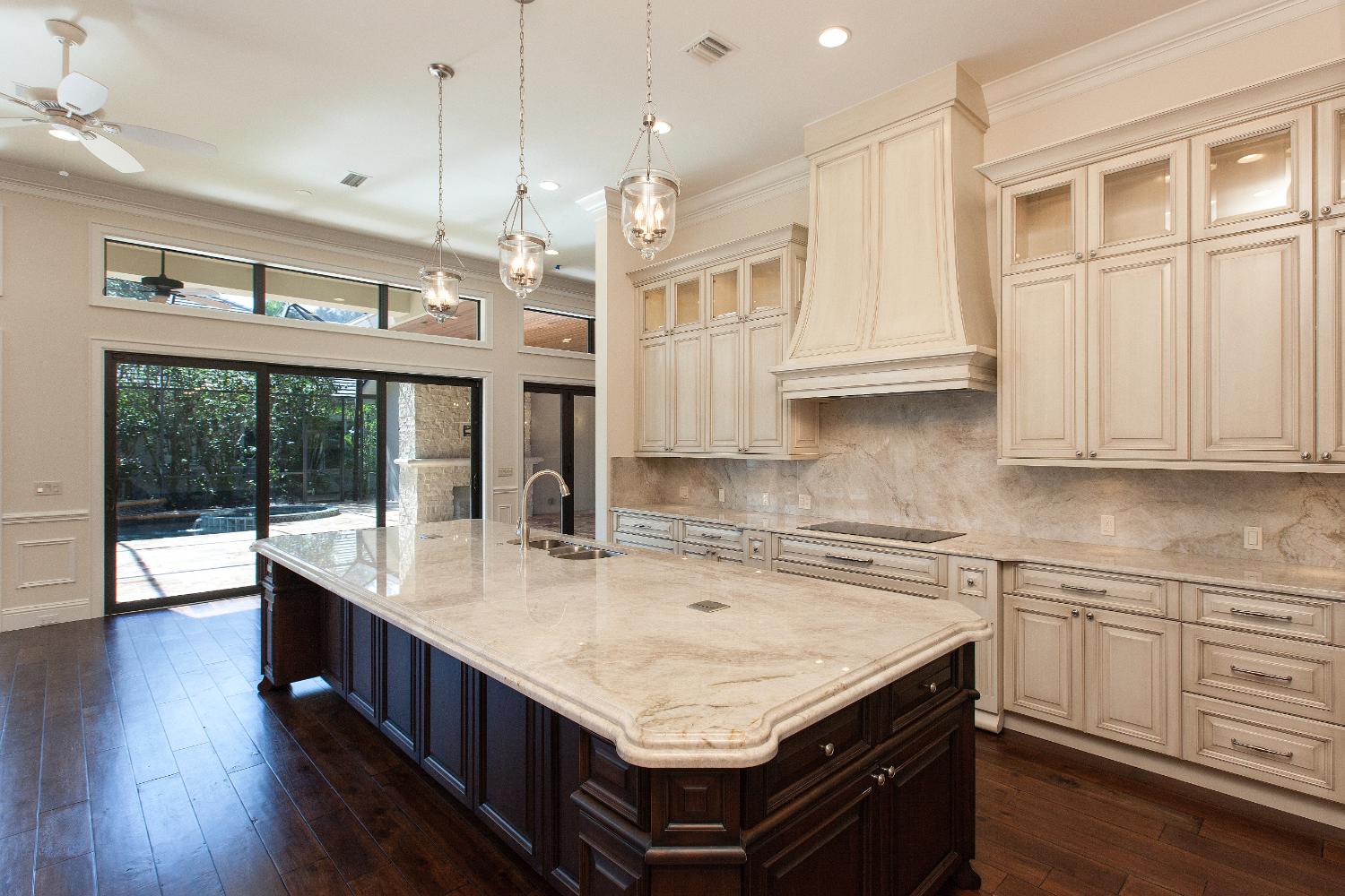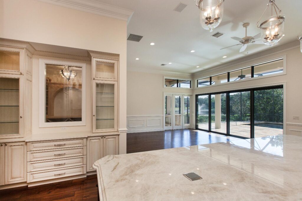 Timeless Elegance on Sugarmill Drive showcases a masterful blend of modern luxury and classic charm, epitomizing refined living. The grand foyer greets you with a dual-sided fireplace, seamlessly connecting the formal living and dining rooms, and an enlarged, heightened entryway that was meticulously rebuilt from the foundation up. The fully custom kitchen is a culinary masterpiece, featuring a double layer laminated double ogee edge countertop and a walk-in, climate-controlled wine cellar, viewable through a window in the kitchen, adding a touch of sophistication.
