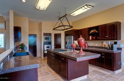 Advantages: Concrete floors for custom home kitchens make a lot of sense. They can be anything you want them to be, from muted to bright and colorful. They don’t necessarily need a design, but often do incorporate one. It can be anything from an interesting pattern to a unique graphic. Concrete floors are extremely durable and easy to clean and maintain. When concrete floors are finished with low VOC finishes, they are environmentally-friendly and promote good indoor air quality.