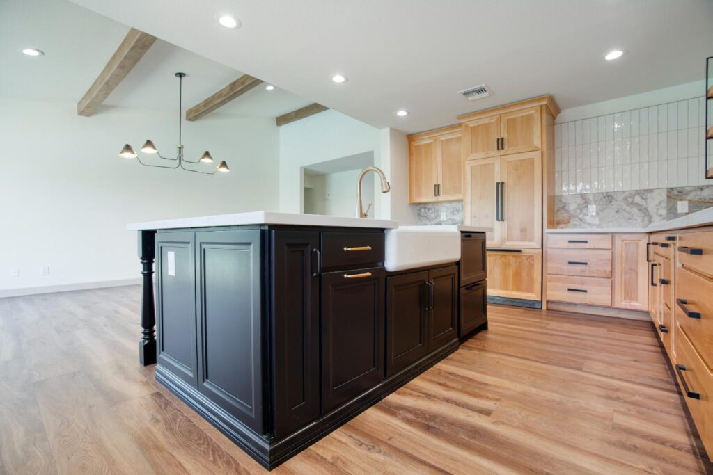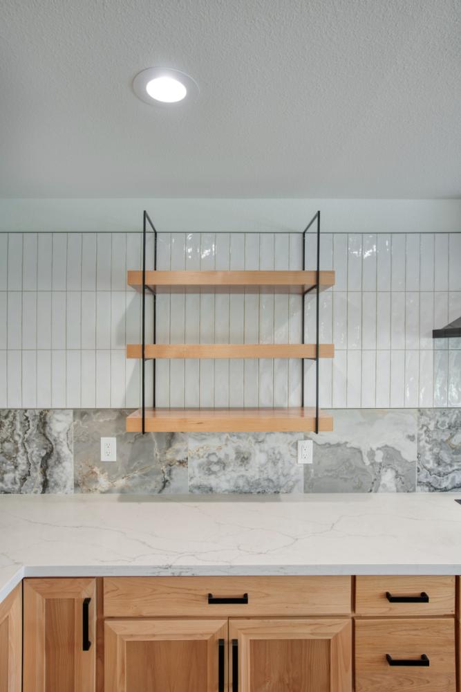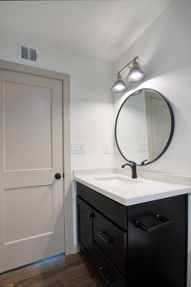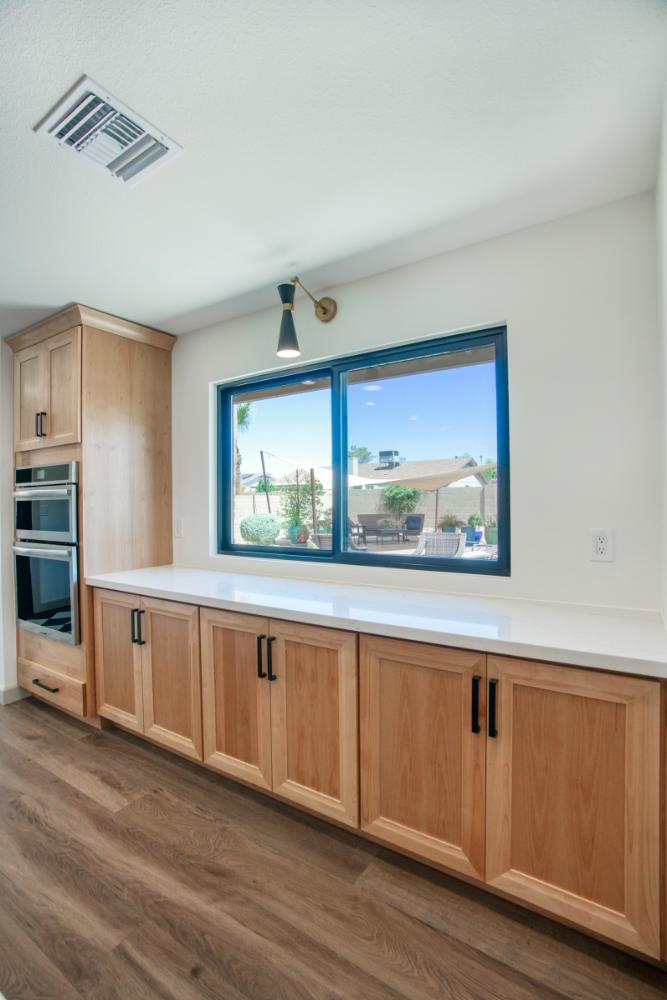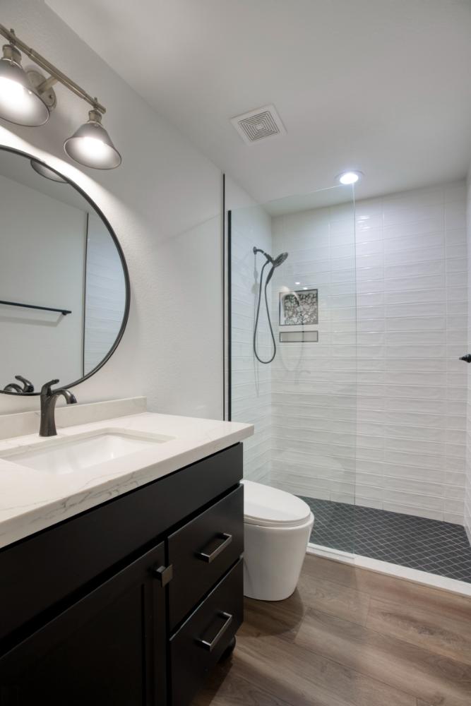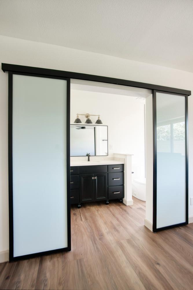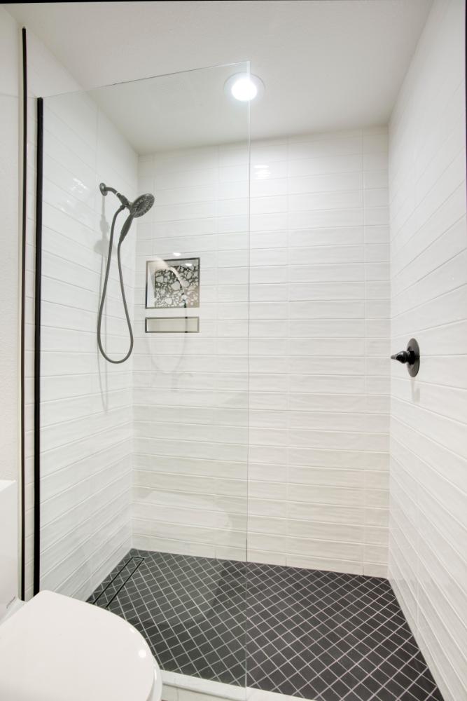 Whole home interior remodel including new kitchen floor plan, cabinets, appliances and countertops. Flooring, lighting, paint, doors and trim throughout the home. Bathroom gut with new tile, fixtures, glass, cabinets and tops.