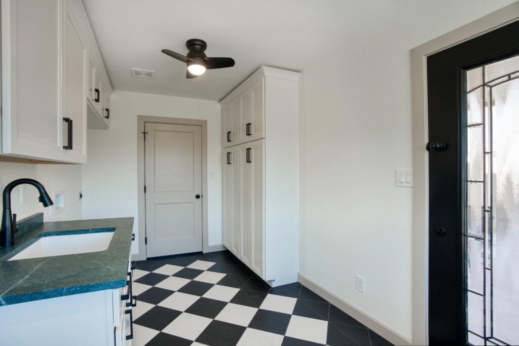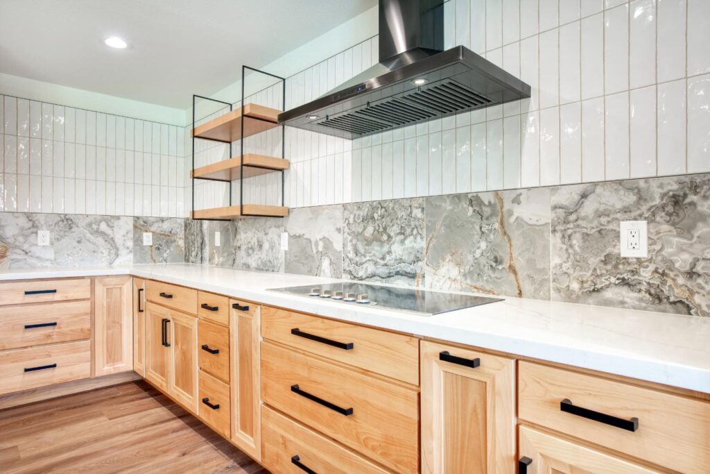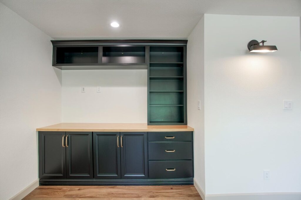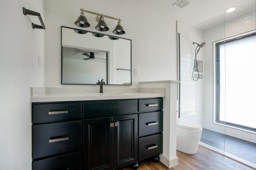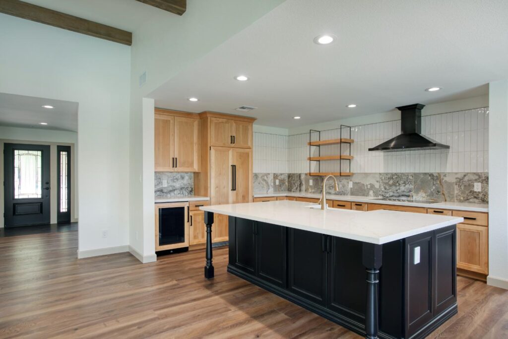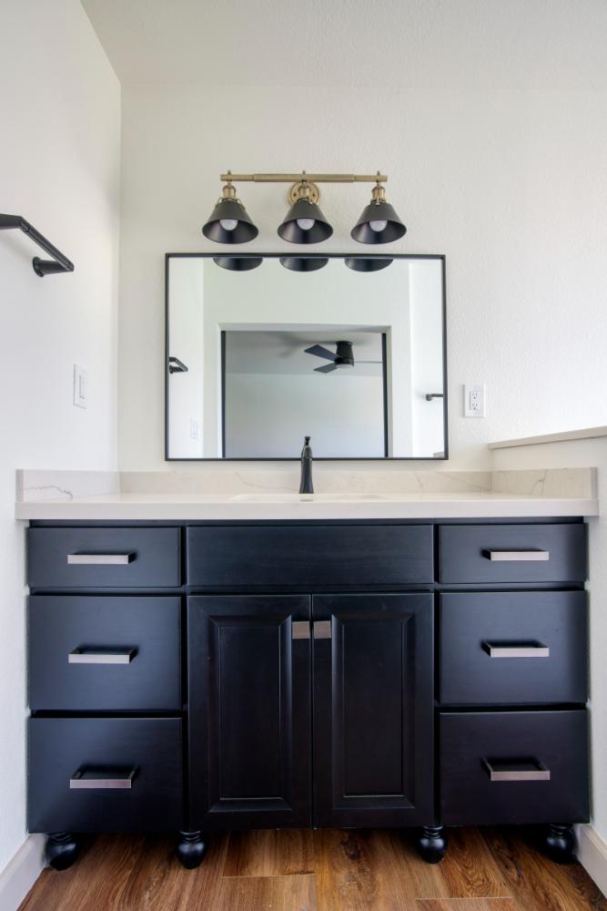 Whole home interior remodel including new kitchen floor plan, cabinets, appliances and countertops. Flooring, lighting, paint, doors and trim throughout the home. Bathroom gut with new tile, fixtures, glass, cabinets and tops.