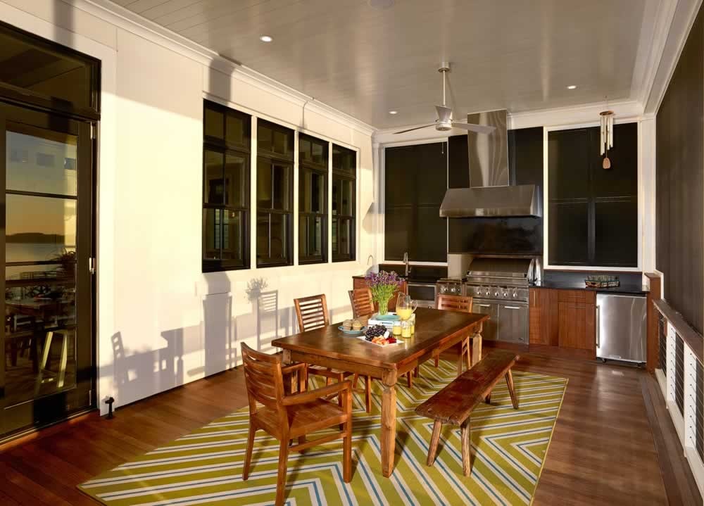 Outdoors, a screened porch with a fireplace and full kitchen creates a space that’s made for staying put. Comfortable, timeless, and relaxed, this home captures the spirit of simple coastal living in Charleston.