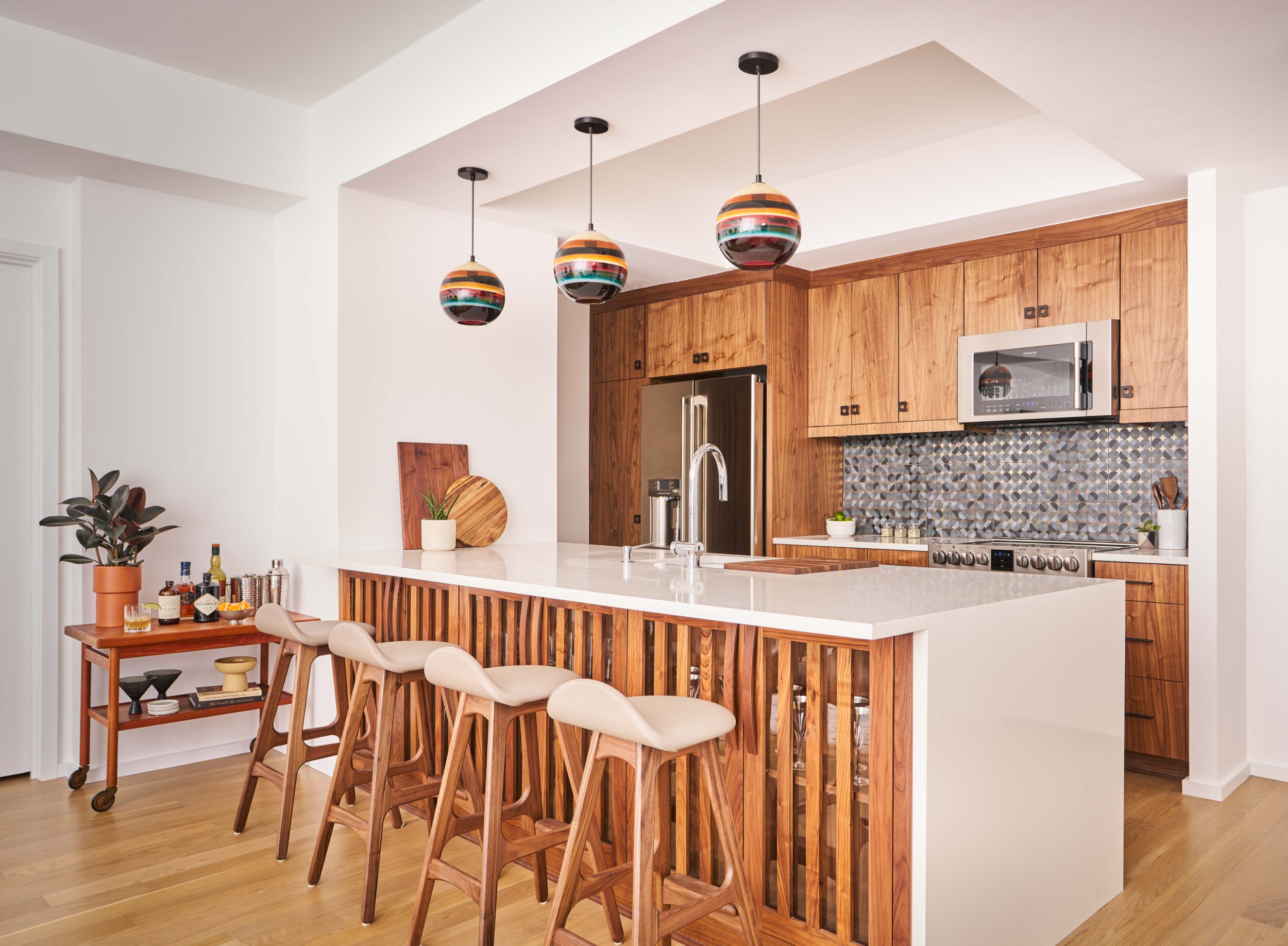 While sleek, modern kitchens remain popular, there’s a growing shift toward warmer, more organic materials. Natural wood cabinetry, stone countertops, and textured finishes create an inviting and timeless look. Expect to see more warm-toned woods, such as walnut and oak, paired with natural stone backsplashes and handmade tiles that add character and depth to the space.
