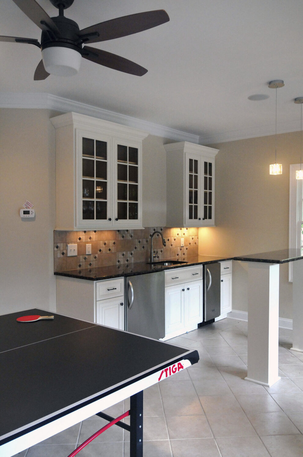 Here is a perfect spot to convince teens to hang out in your home. As our children grow, it becomes more important to provide a space for them and their friends where they can hang out, socialize and feel a little more “grown up” while they’re having fun. When the space isn’t being used for the kids in your life, it also makes a great spot for adults to watch the game, enjoy a game night or cozy up with a glass of wine and a little Netflix. This space checks all of those boxes making it a remodeling option that is fun, functional and adds value to your home.