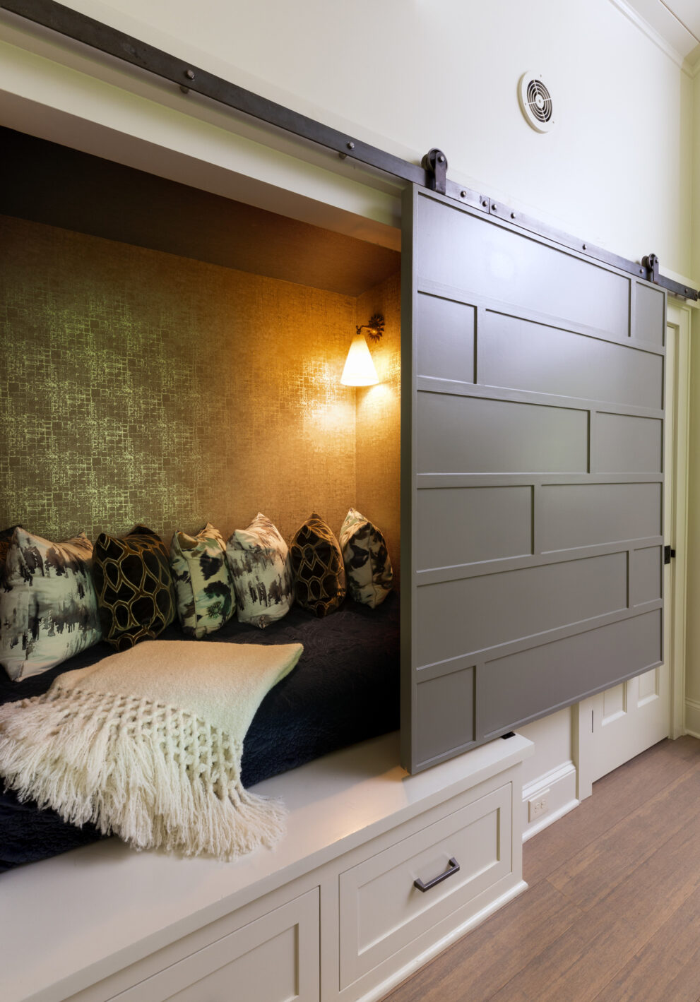 Here we have a space that has organizational components to house toys, games and extra blankets. Additionally, this cozy nook serves as an enchanting space to hide and read a book or that perfect extra spot for your youngest guests and Saturday night sleepovers.