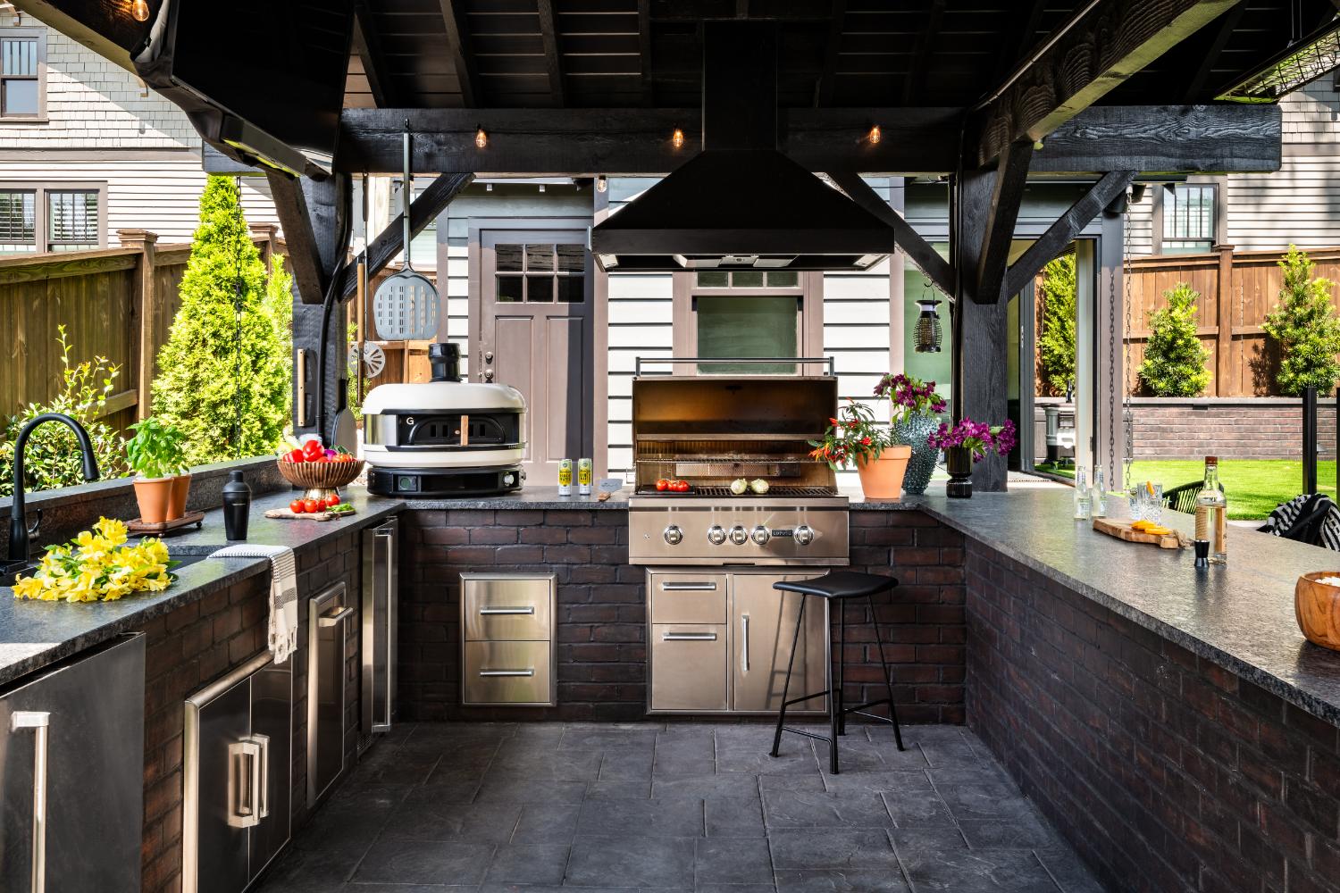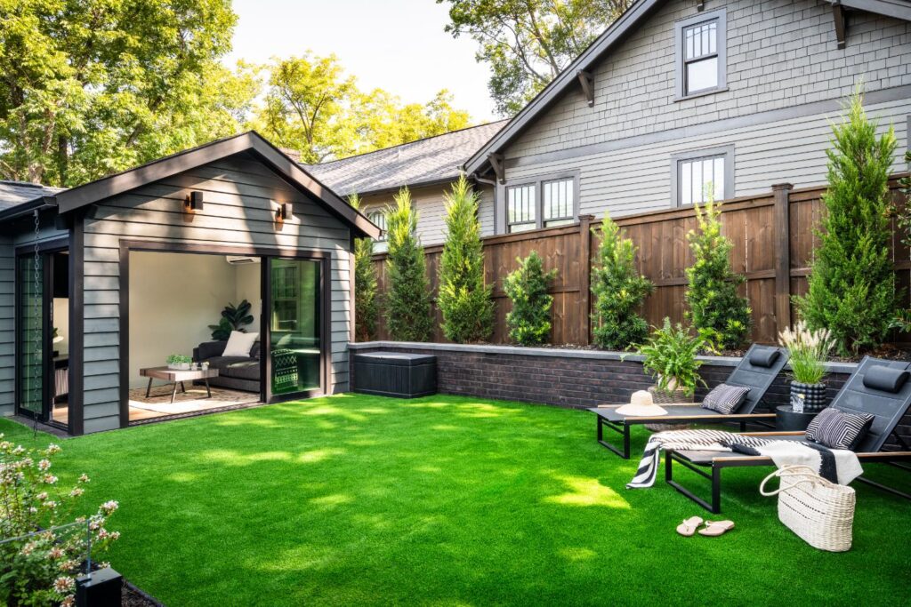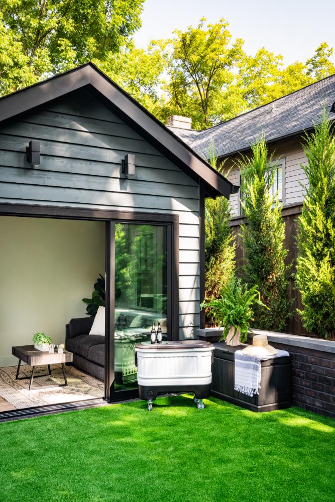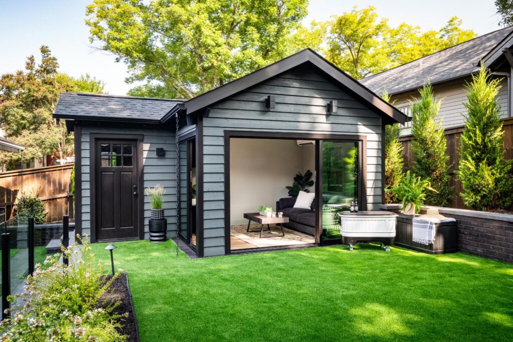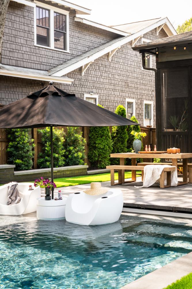 This project transformed an existing backyard into a modern outdoor living space featuring a pool, custom kitchen, and a large open turf area. This space seamlessly connects to an adjacent ADU through triple sliding glass doors, allowing for effortless indoor/outdoor entertaining.
