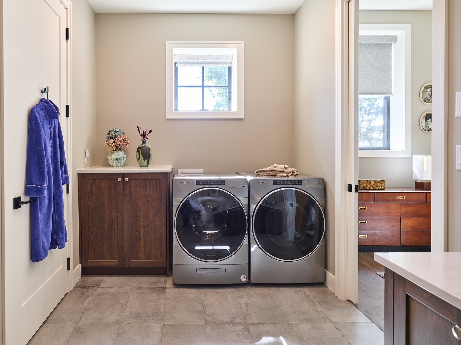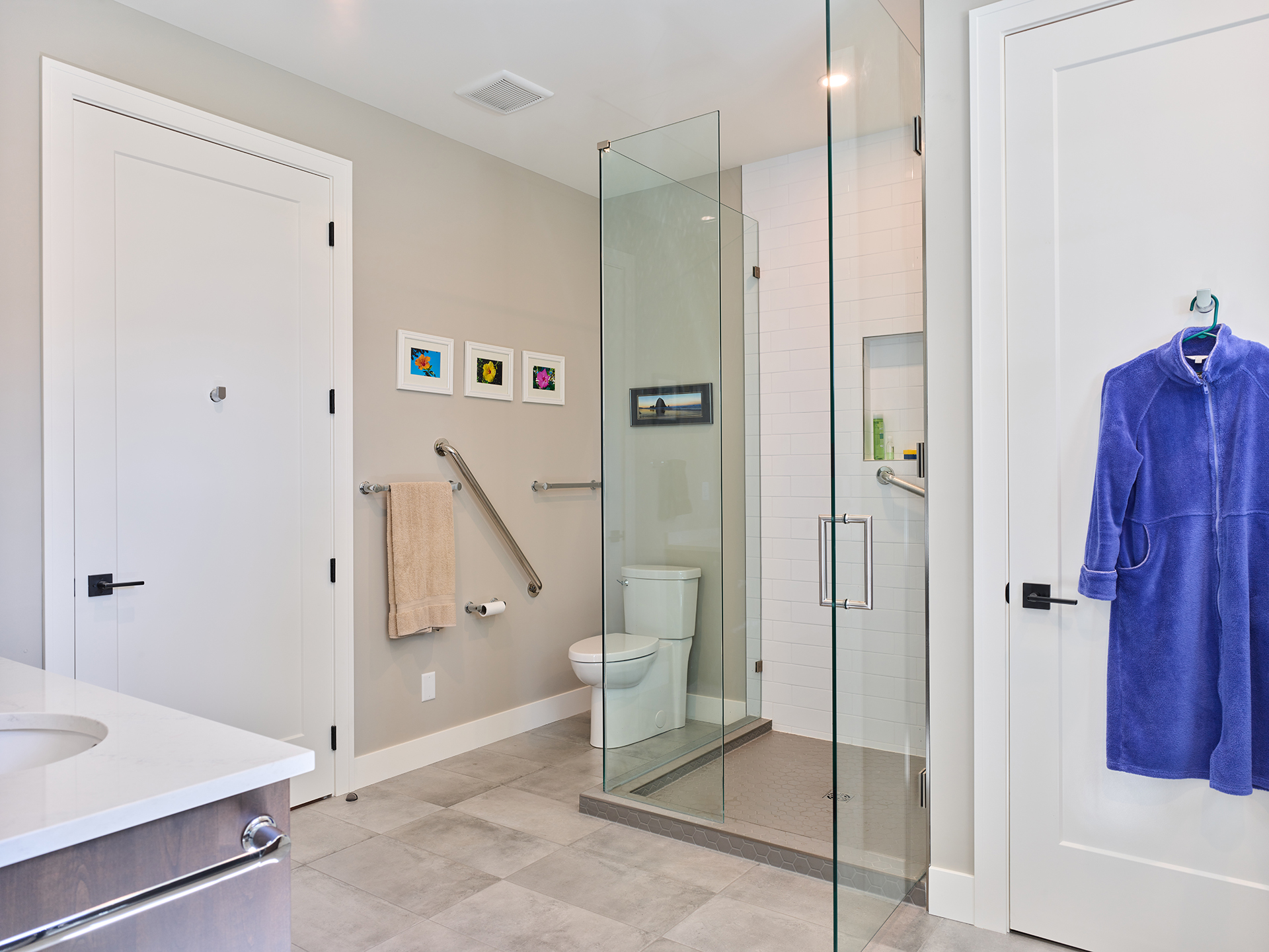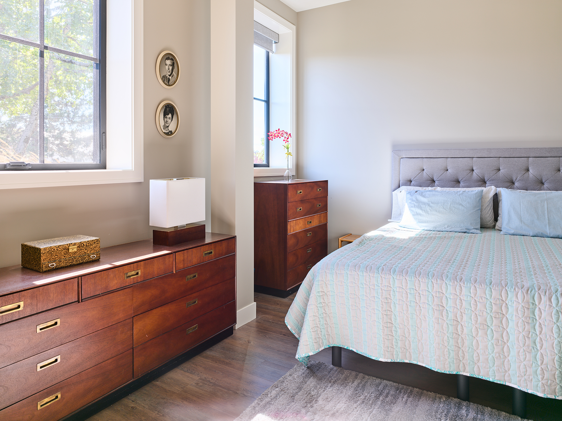 Conversion of a woodwork shop into a secondary suite for aging parents. The entire space was insulated well for fire and sound and a two-bedroom suite was incorporated into the existing workshop. Heated with in-floor hydronic heat and a dedicated AC unit. Features a grade-level patio accessed through a pair of French doors.