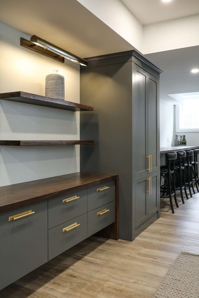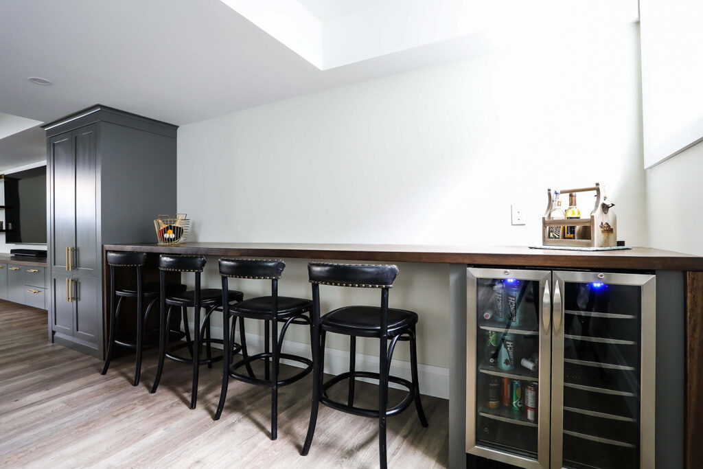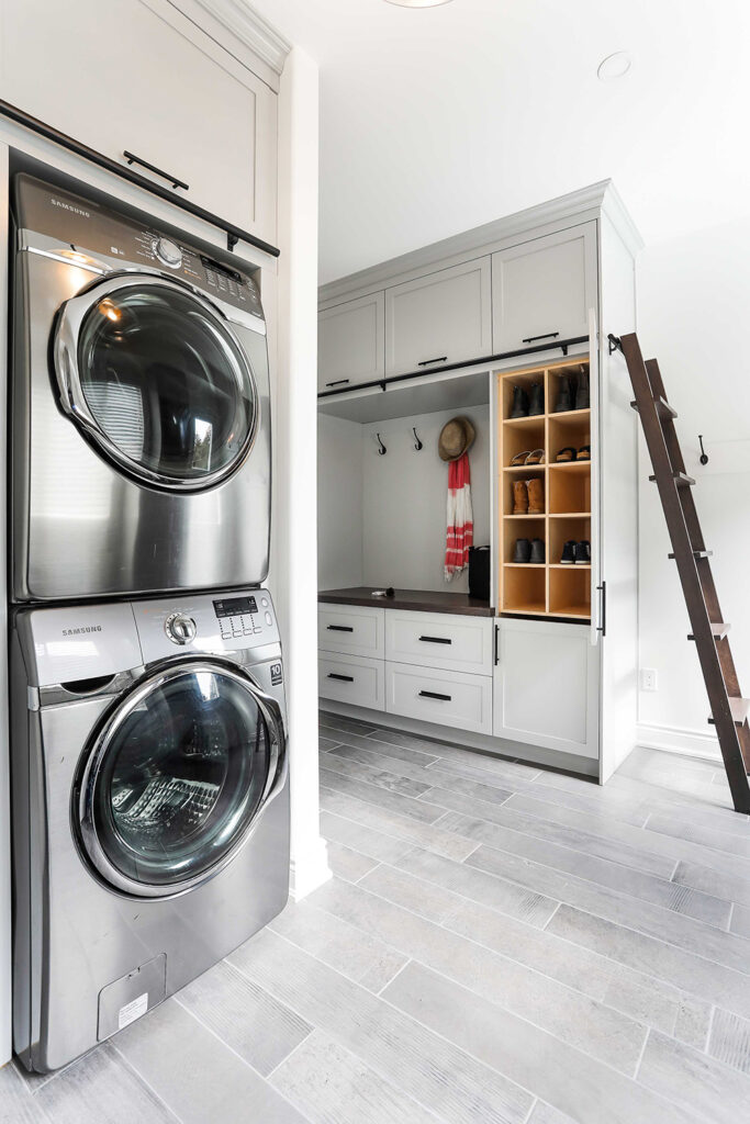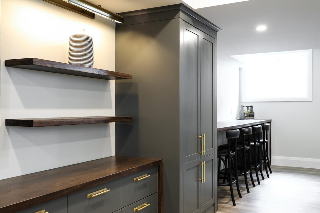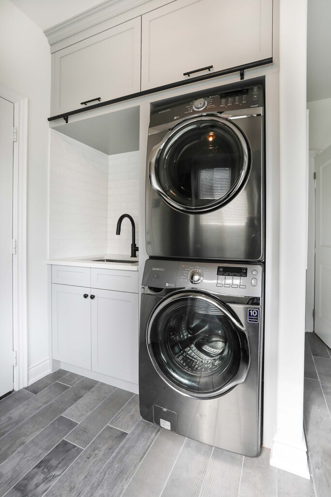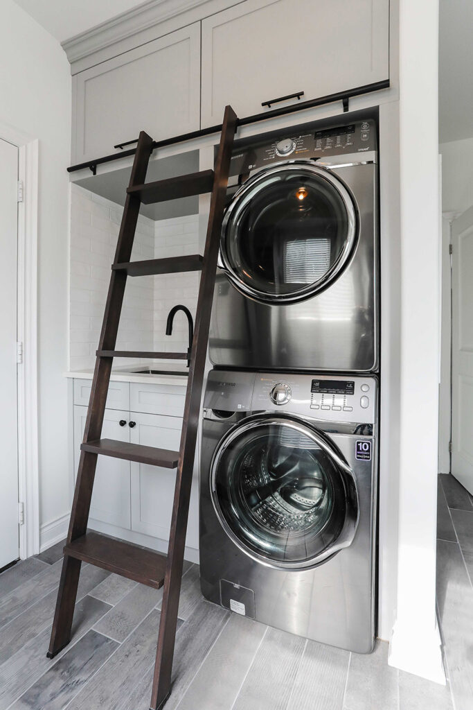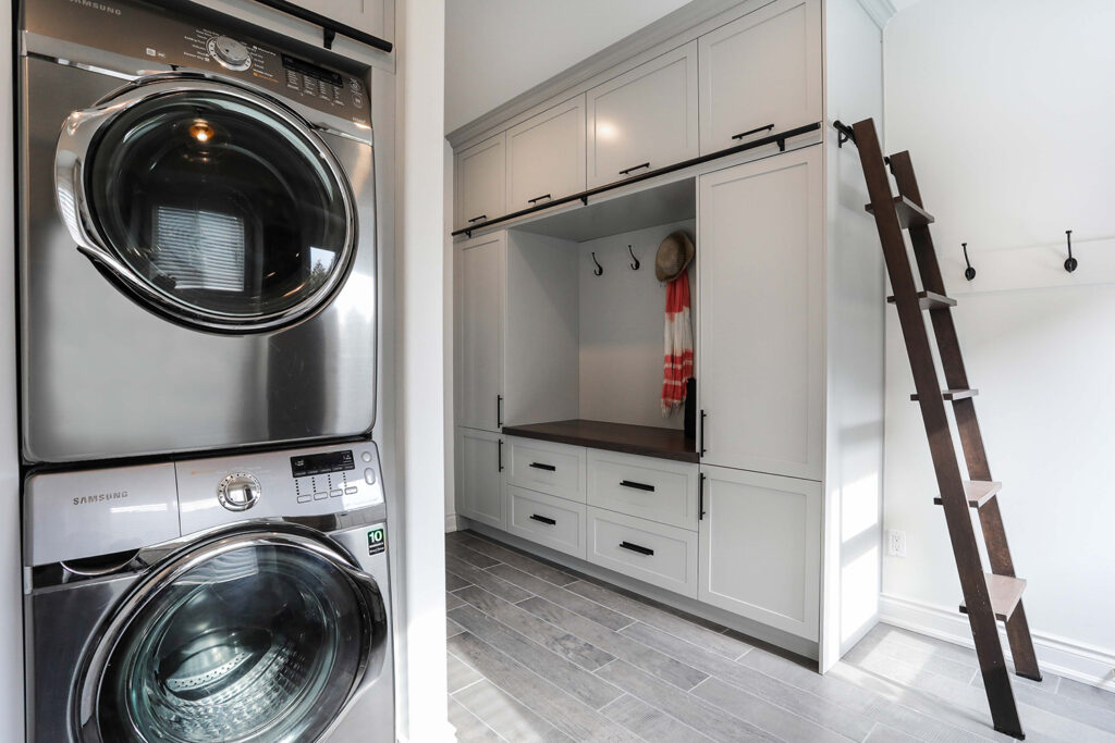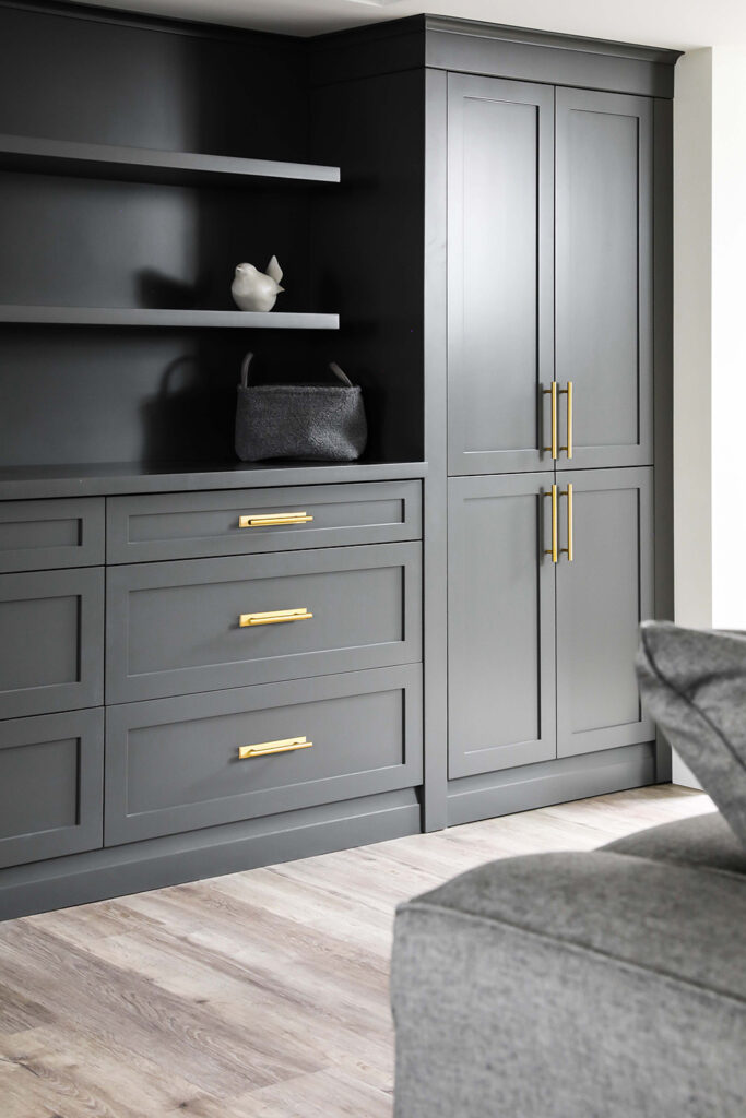 The client’s objective was to create a space that could accommodate family time as well as a kids play area. They also required additional specific storage solutions, and wanted everything custom designed and built-in in order to create an equal balance of functionality and beauty. Both the laundry and basement have been designed with elegance.