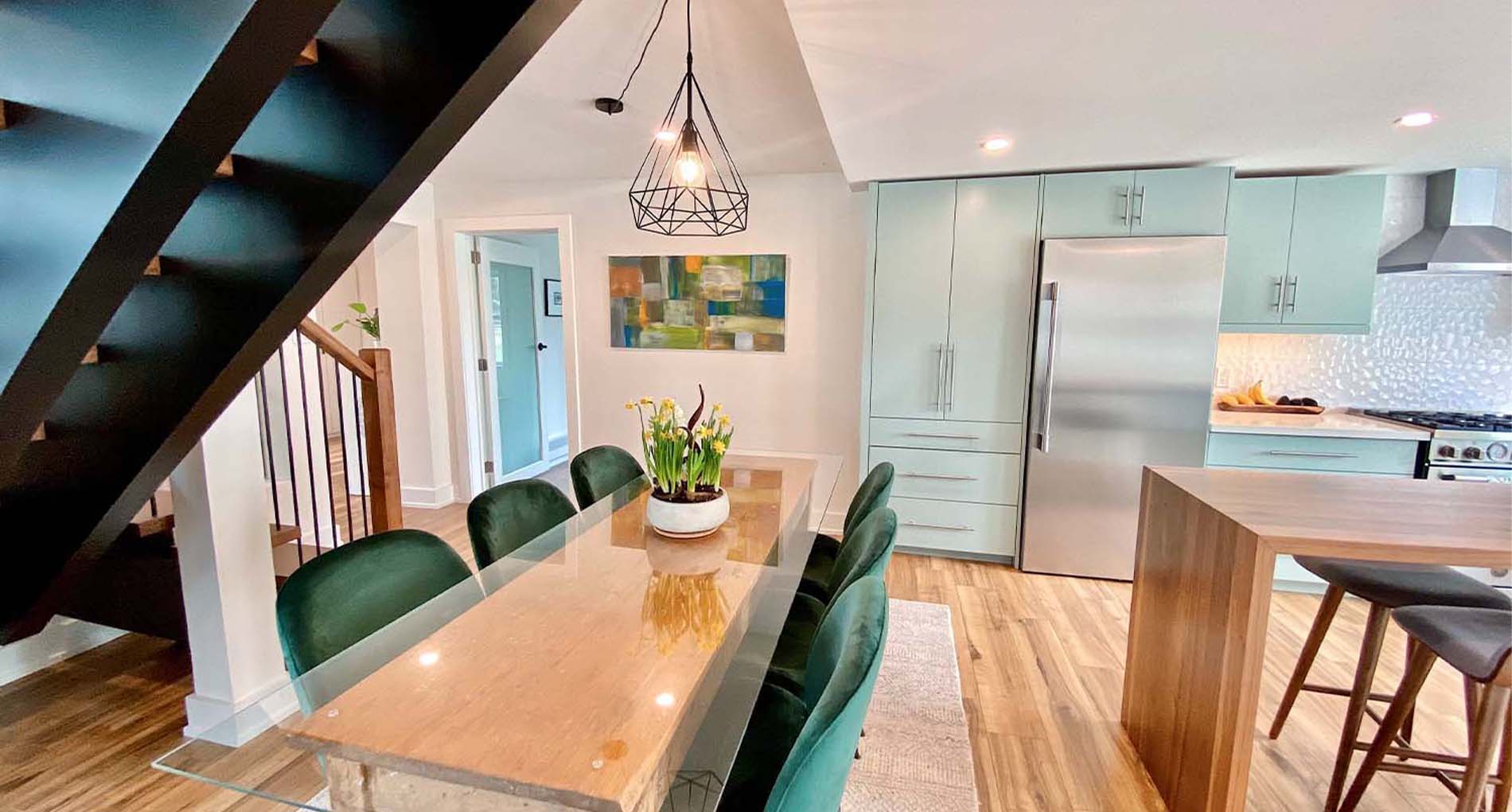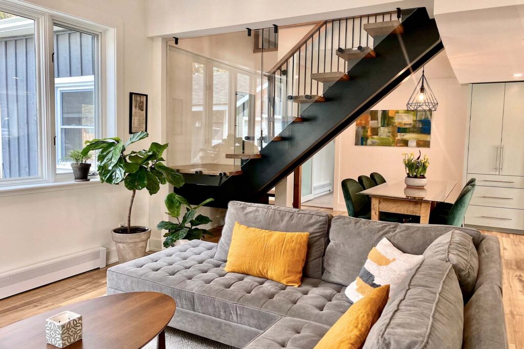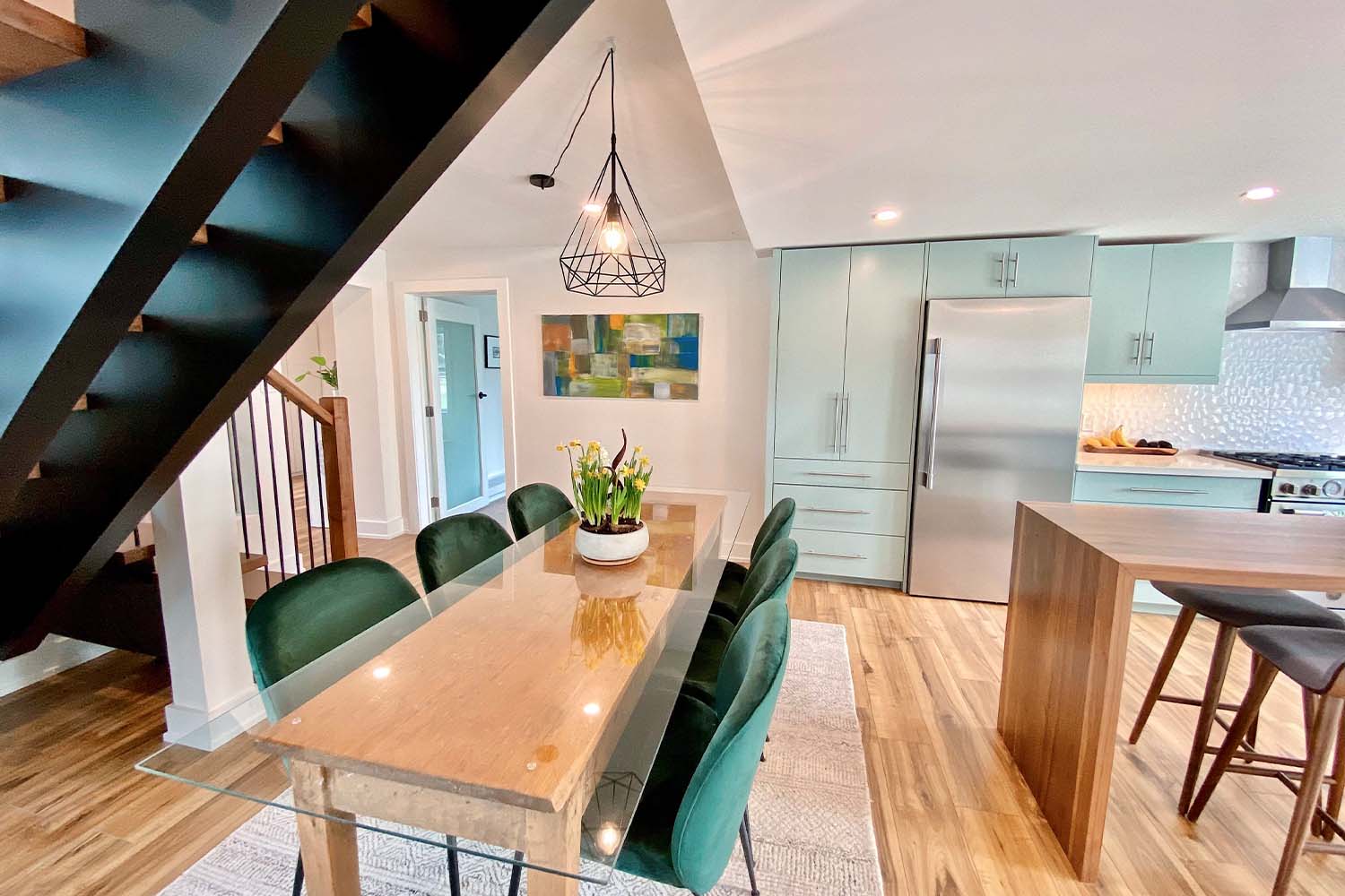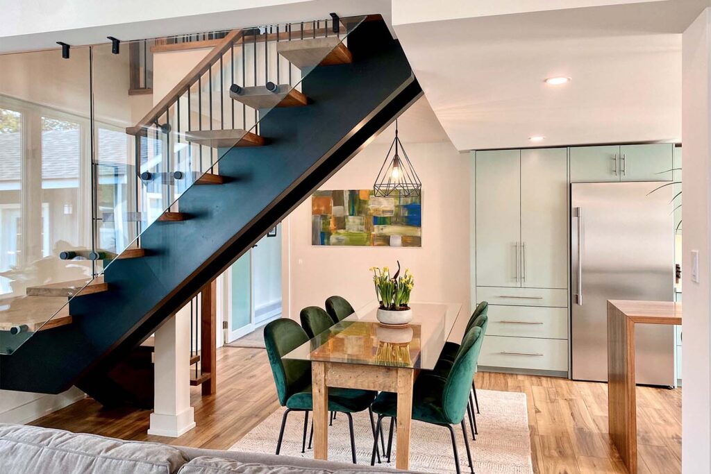 A large property severed to include what the long-time neighbours claim to be a ‘horse stable’, the clients were thrilled about their new purchase and wanted to restore the home while keeping the character of the space. We fully renovated the home into a modern yet classic design. By removing walls and replacing the stairs with glass panels, the open concept became a focal point and welcomed an airy feel.