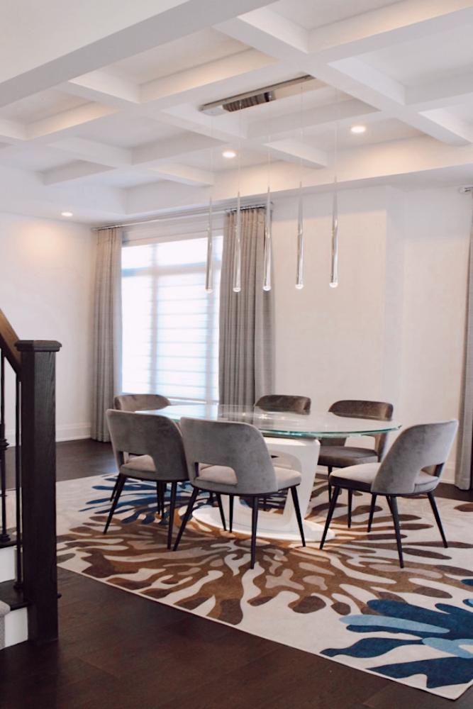 Ascend to the top floor, aptly named the Sky Bar, where endless vistas await. Sip cocktails while basking in the vast expanse of sky and water, framed by the stunning three-sided Urbana fireplace. Intricate coffered ceilings adorned with unique light fixtures add a touch of glamour to every moment, whether you’re unwinding after a busy day or hosting friends for an unforgettable soirée.
