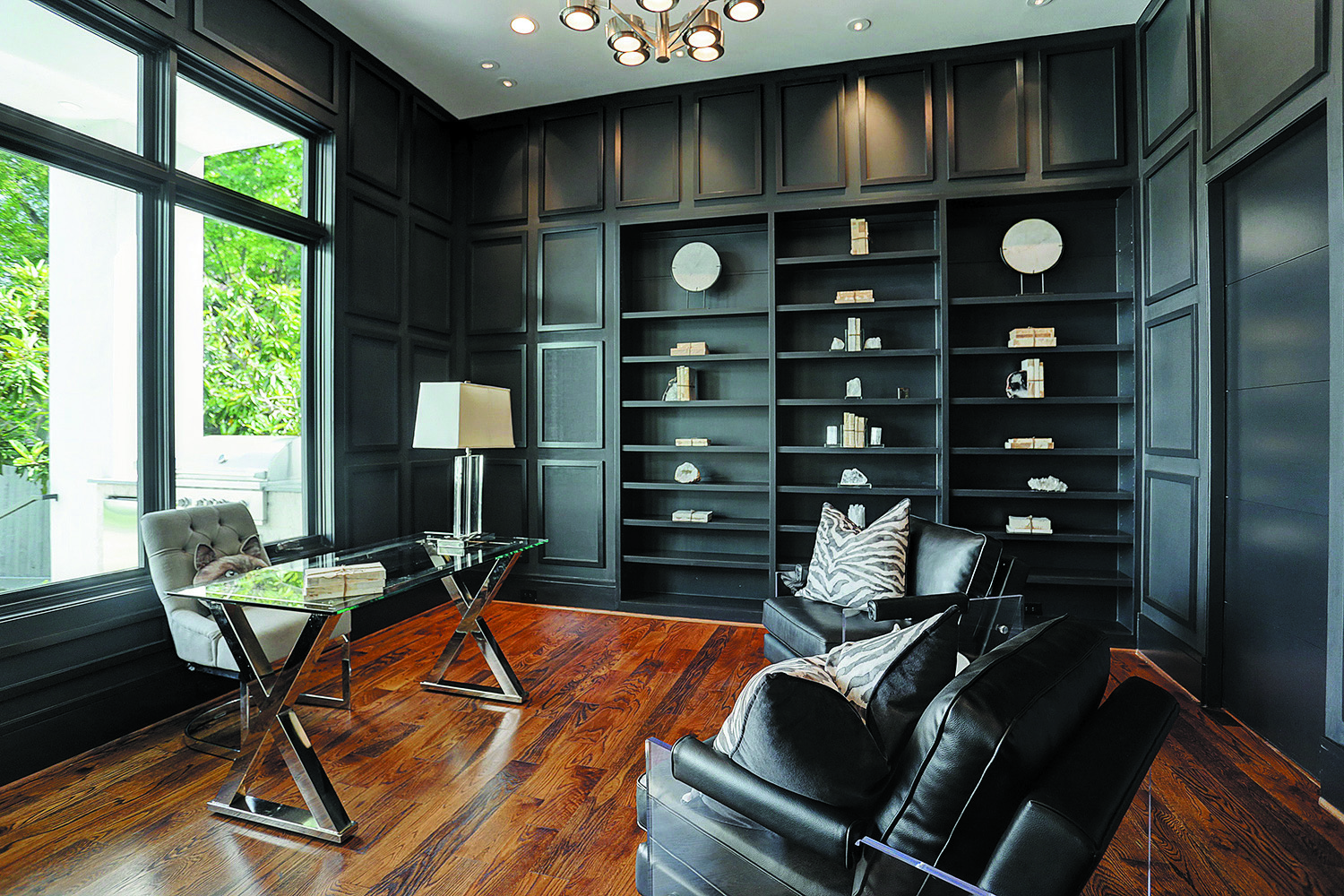 If you consider yourself a purist when it comes to your home’s aesthetic, but occasionally like to incorporate hints of modern design, the Cliffbrook remodel is a great resource for you!This room utilizes cool tones paired with beautiful natural light to strike a tone that is both professional and contemporary.