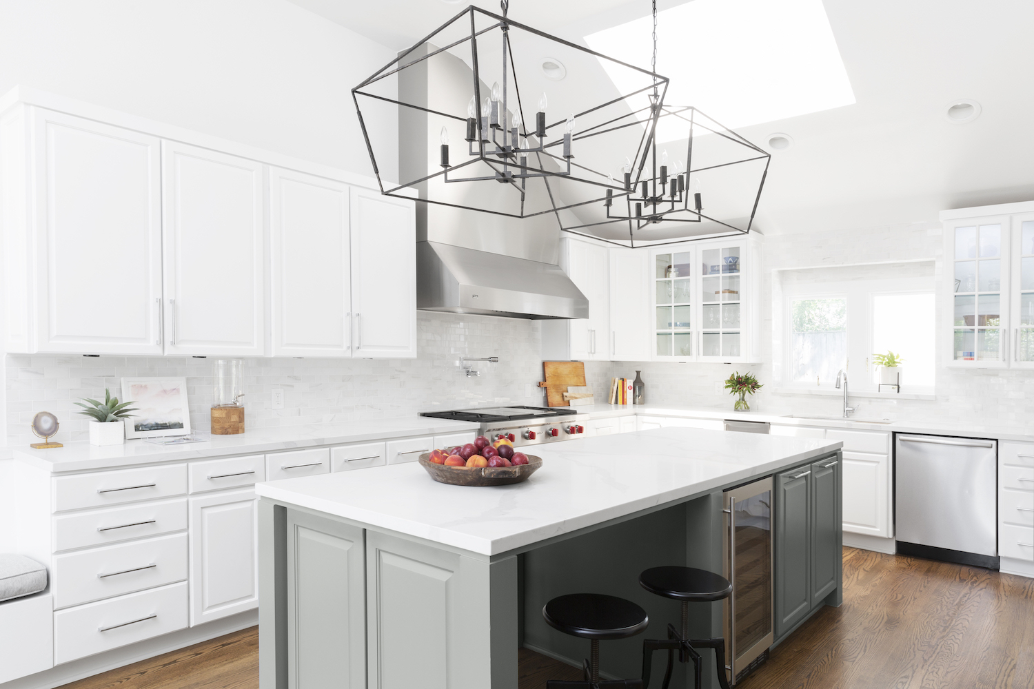 If your kitchen cabinets and countertops are in good condition and/or fairly new, sometimes a new backsplash is all you need to give the existing elements an updated look and feel. New cabinet hardware is another option but be sure the existing holes match with the new hardware or you may run into a “domino” effect with filling/sanding/painting.