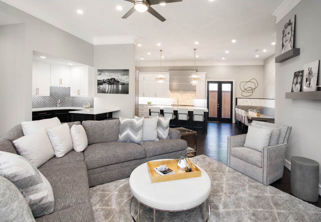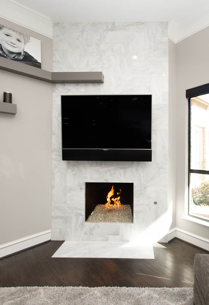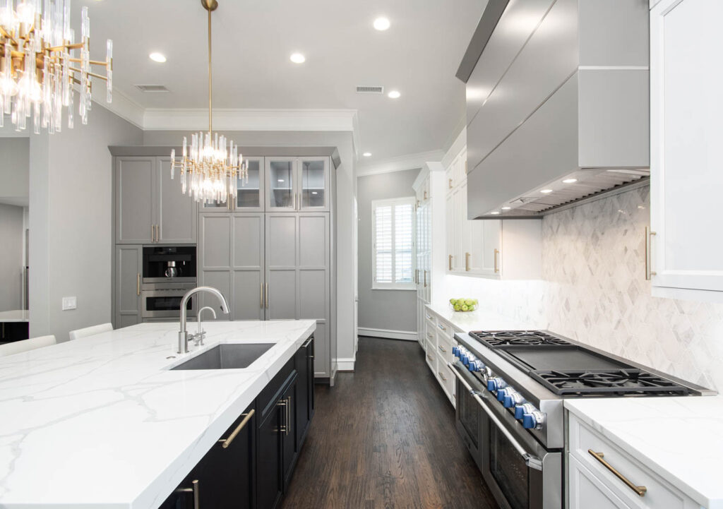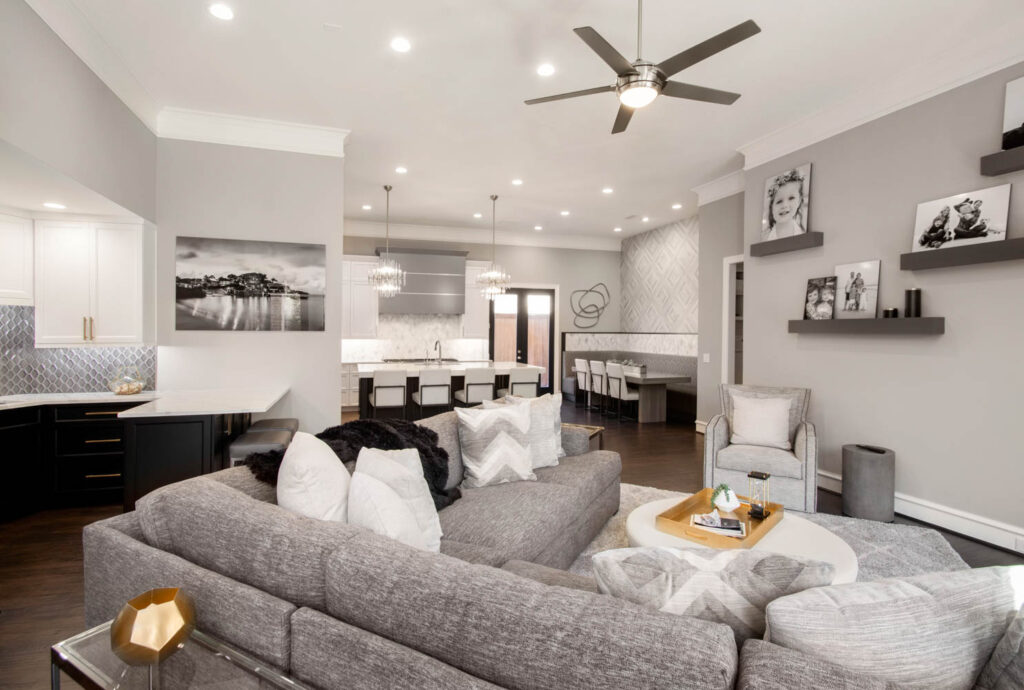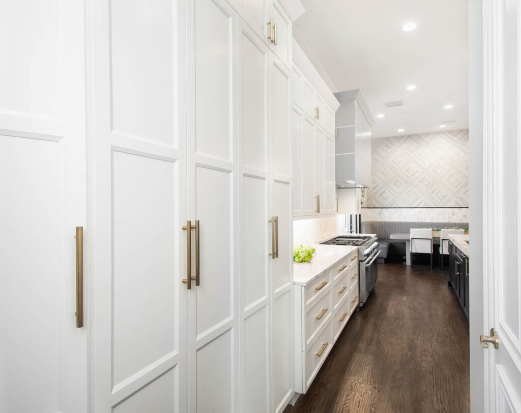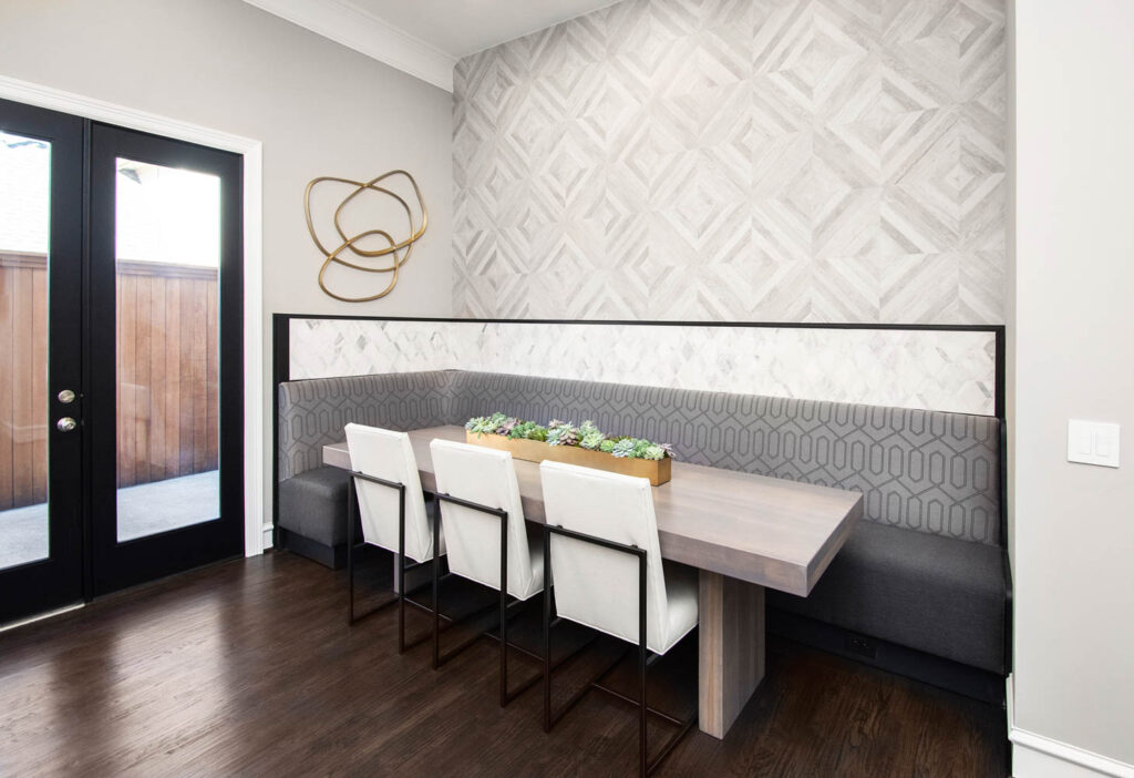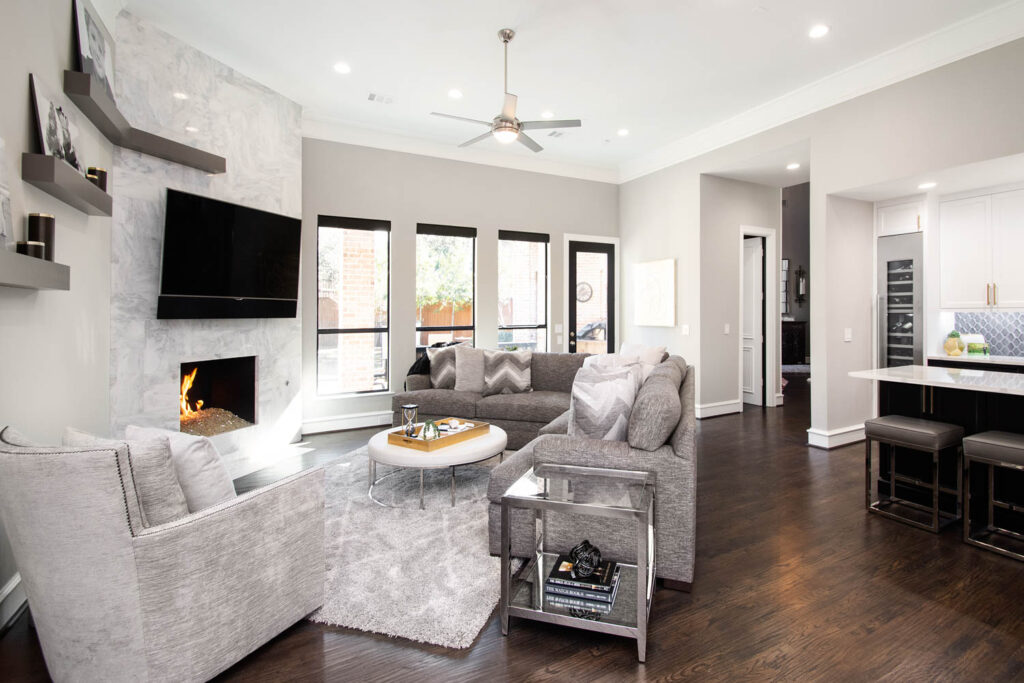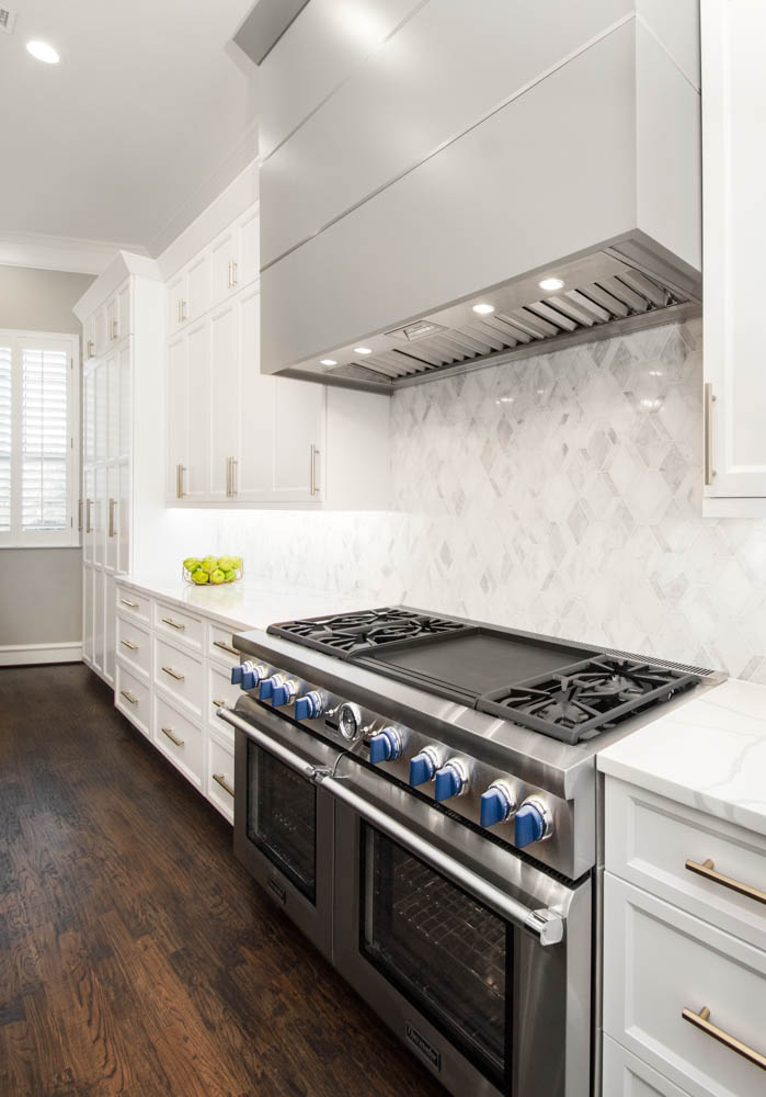 Our clients wanted to open their living spaces; including their kitchen, bar, and den. They wanted a cleaner look but feared an all-white kitchen was trendy. Their kitchen was not utilized well and was very dark. We gutted the kitchen and added a large island and banquet seating table. In the den, we eliminated the dark built-ins and fireplace surround. The walls were flushed out, floating shelves were added, and the fireplace is now covered in marble. The bar was gutted, opened up and completely redone. The powder bath also got a fun makeover! Our clients absolutely love their new space.