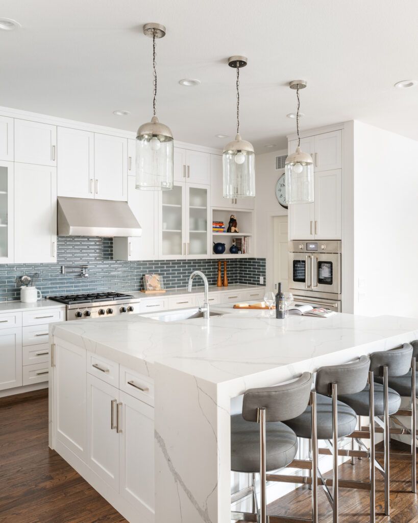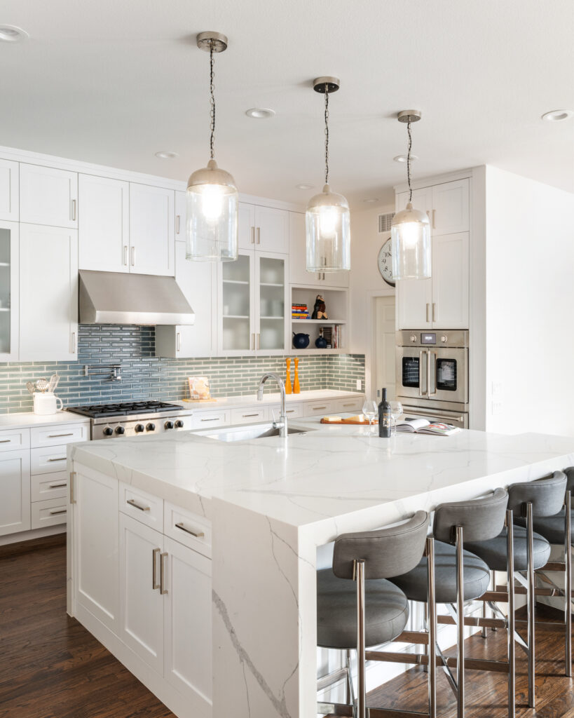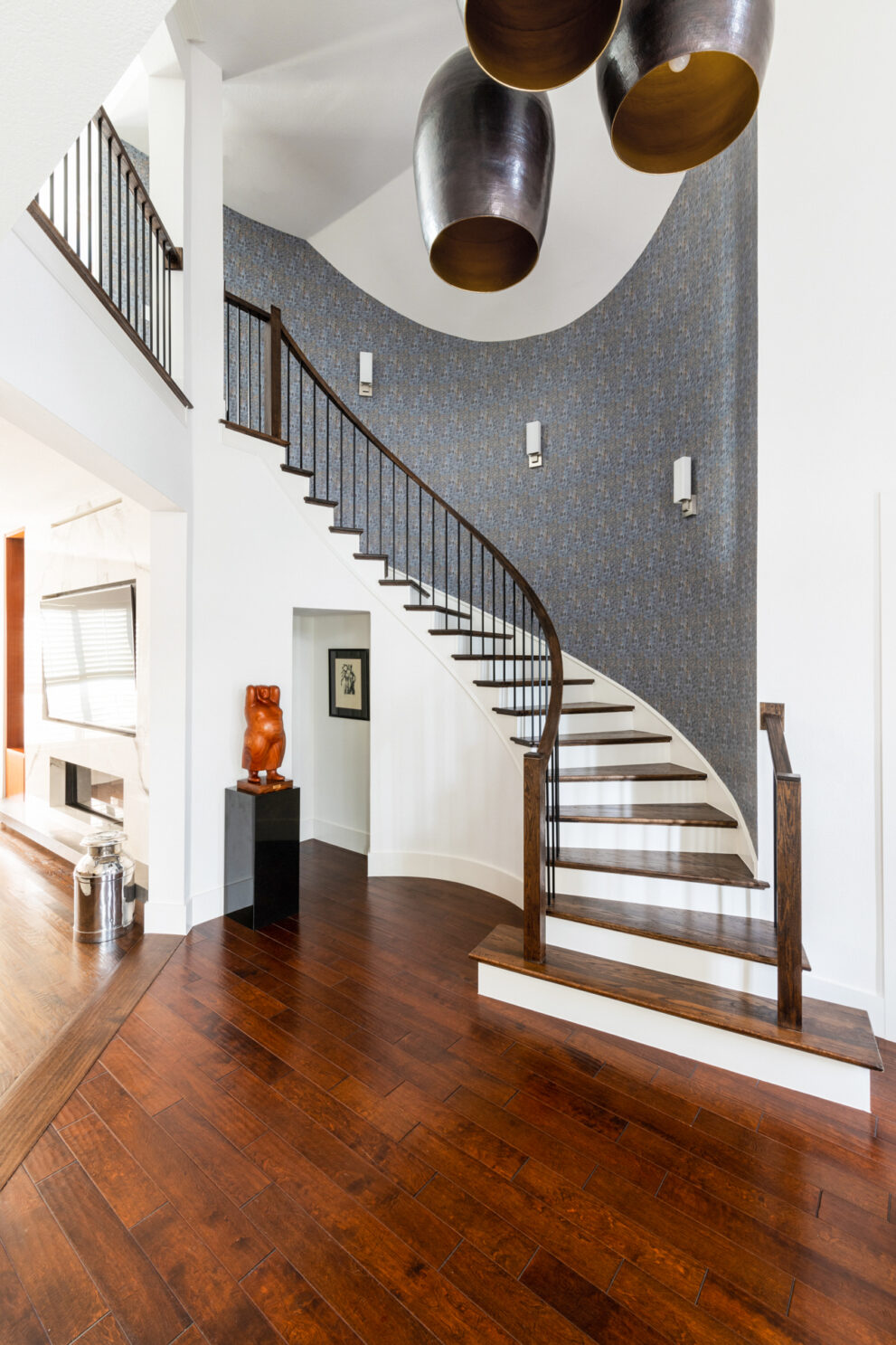 This 1990s, Plano, TX home location was loved by this busy family of 4. She is a trained professional chef and the family entertains often. The remodel was inspired by their desire for a new kitchen that got rid of an eye sore column that closed off the kitchen from the family room. While they were out of the house, they decided that they wanted to make over the entire rest of the home with new bathrooms, paint, flooring, and wallpaper. The home is night and day different and the living spaces really stand out!