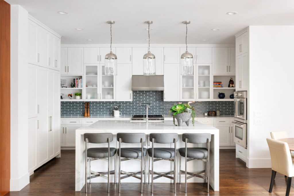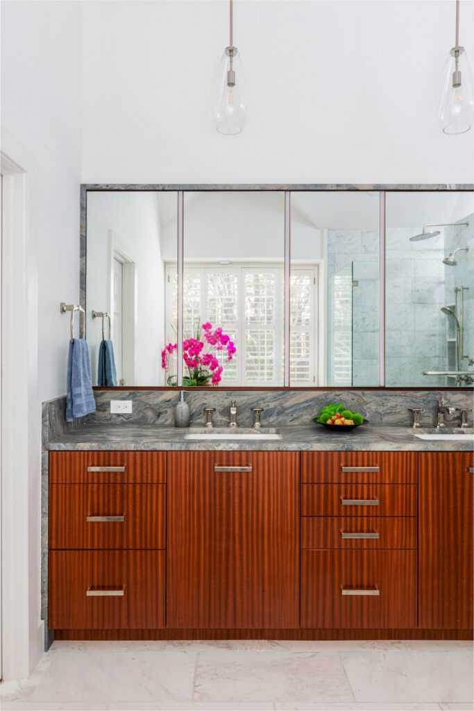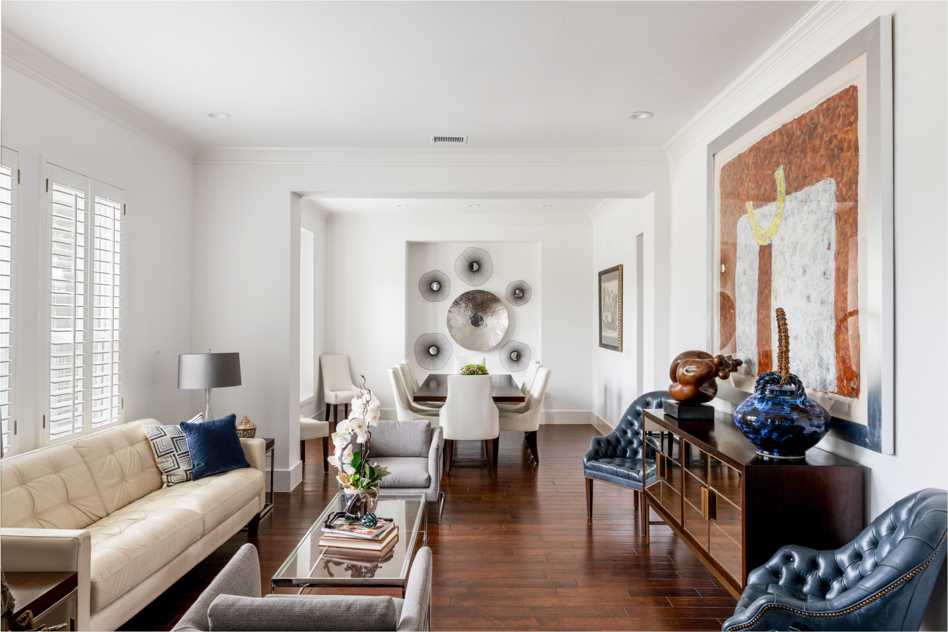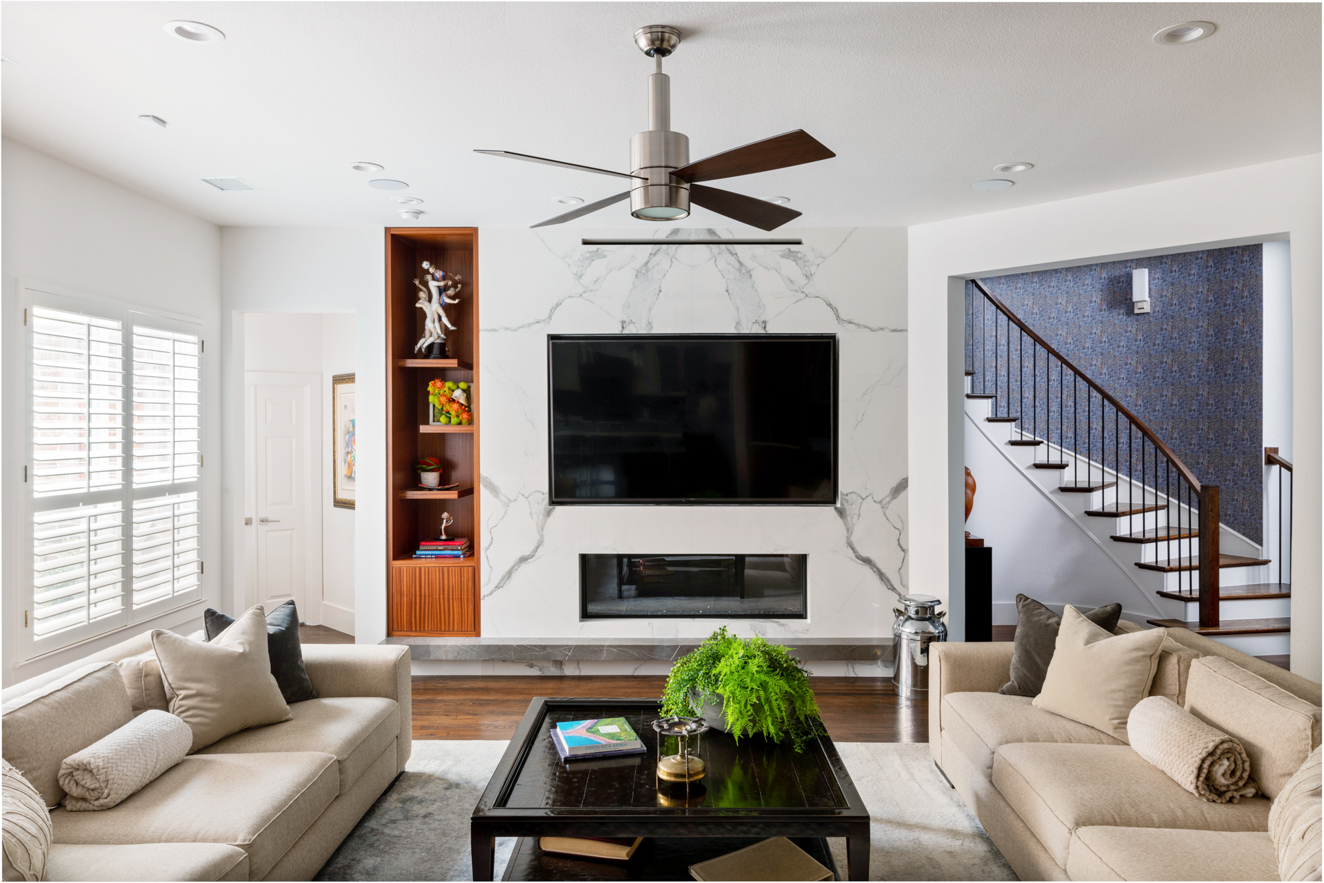 This 1990s, Plano, TX home location was loved by this busy family of 4. She is a trained professional chef and the family entertains often. The remodel was inspired by their desire for a new kitchen that got rid of an eye sore column that closed off the kitchen from the family room. While they were out of the house, they decided that they wanted to make over the entire rest of the home with new bathrooms, paint, flooring, and wallpaper. The home is night and day different and the living spaces really stand out!