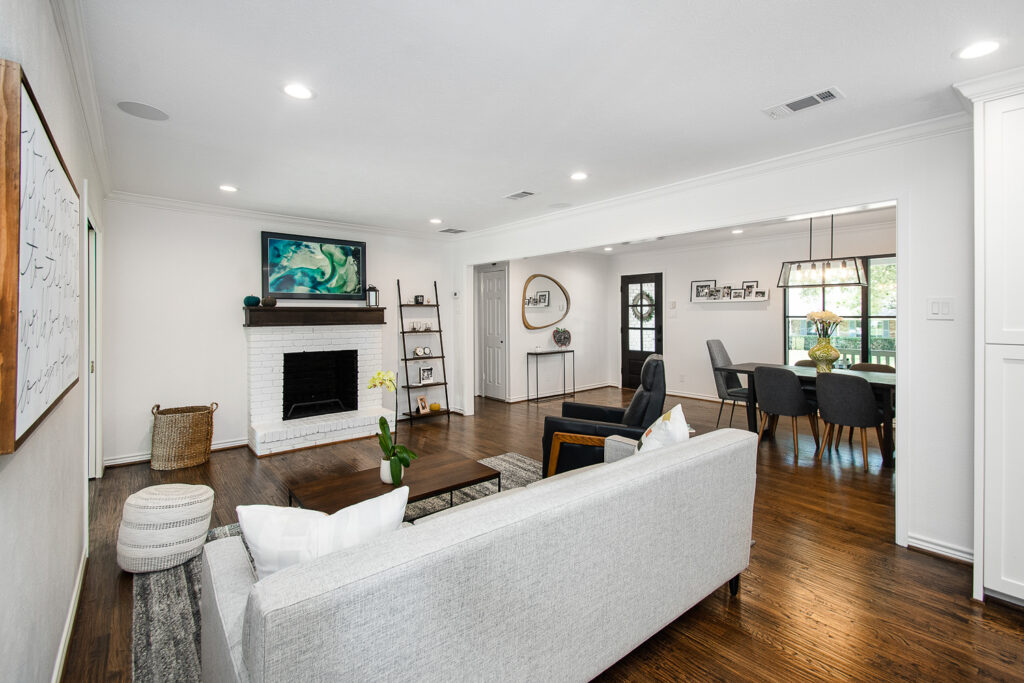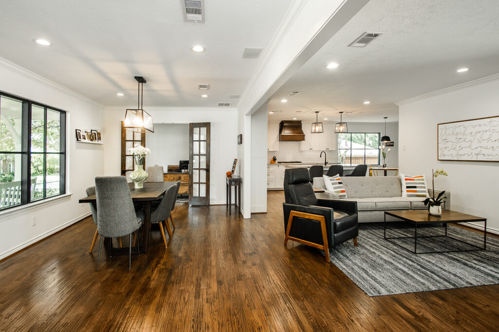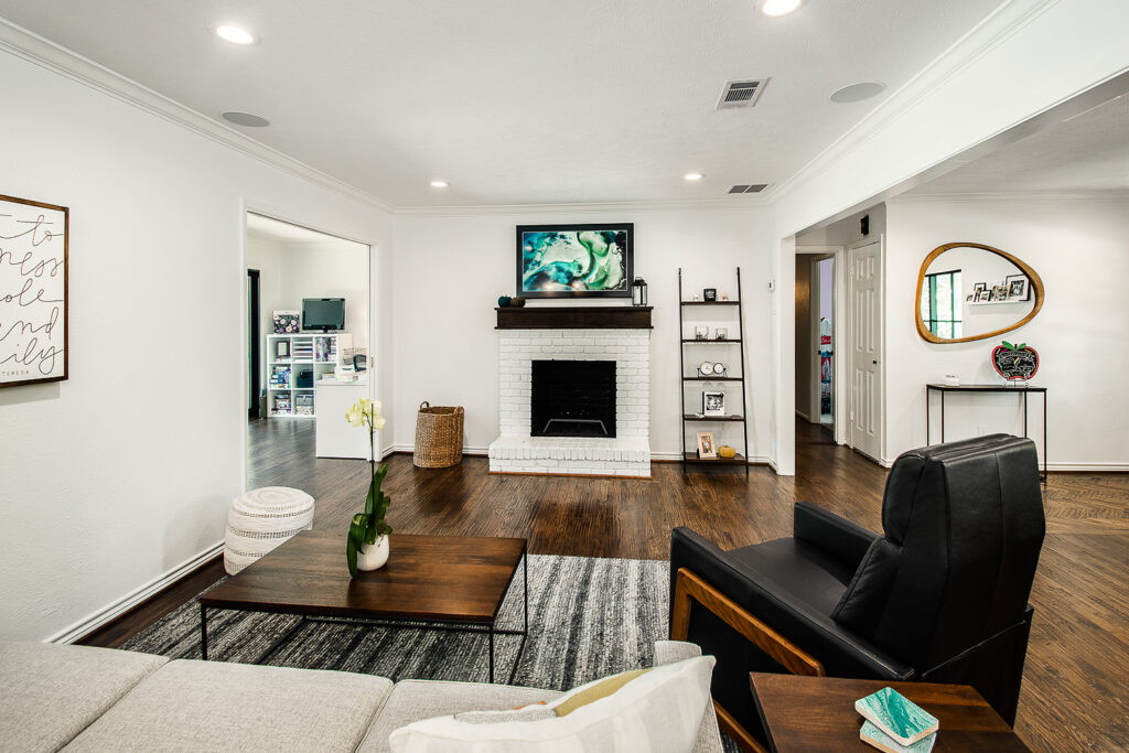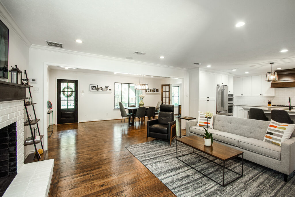 Our clients came to us after recently purchasing a 1967 home in the lovely Spring Creek neighborhood. Their home had character and warmth, but it was in need of updating in order to be functional for their everyday needs. They wanted to update the kitchen, add an office to accommodate them working from home, and they wanted consistent flooring throughout the front of the house.