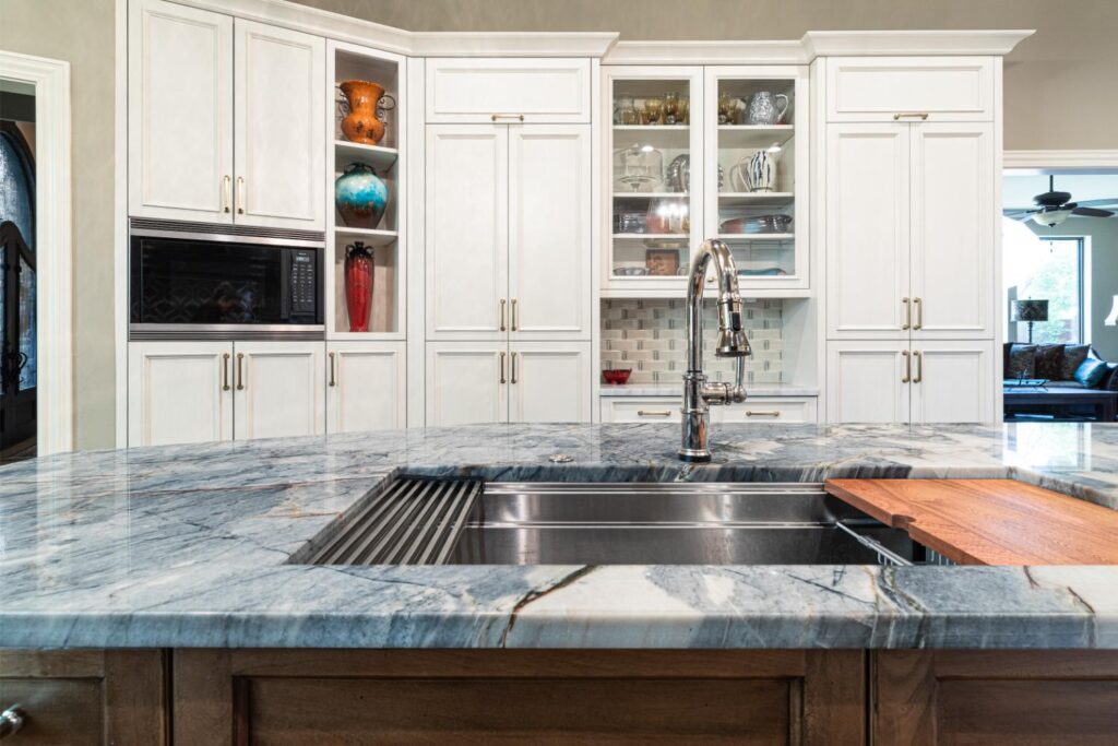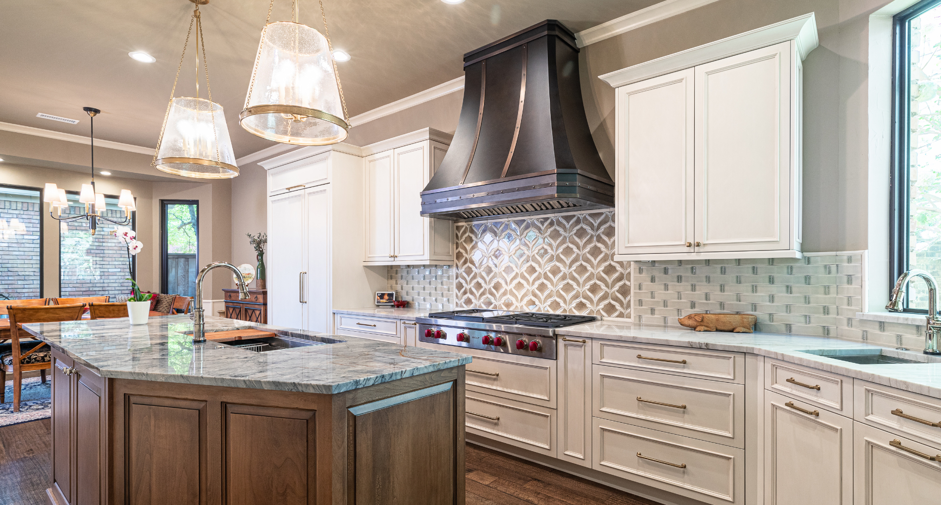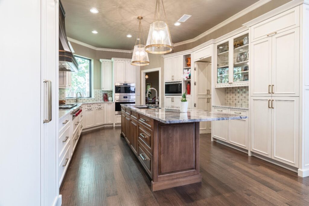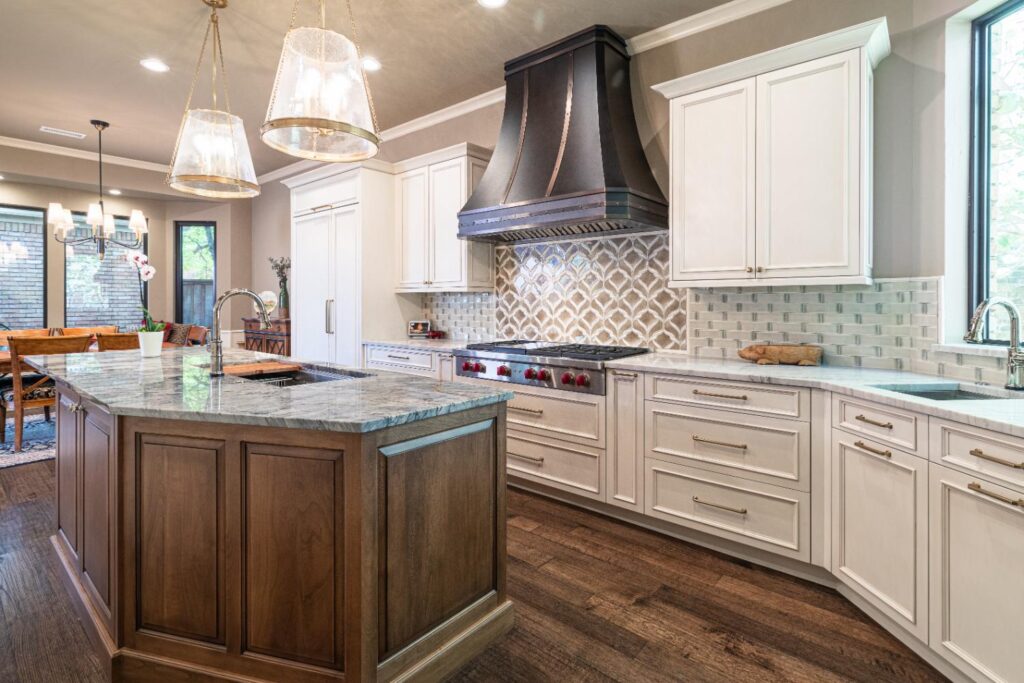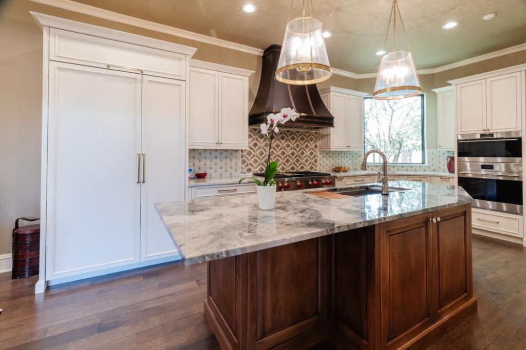 Our clients have lived in this North Dallas, TX home since it was built in 1987. Their children were all grown, so these active empty nesters saw the perfect chance to finally update their kitchen. They wanted better flow and functionality. He knew he wanted Bentwood cabinets, but she did not know anything about them. Once she saw them, she fell in love! There were so many personal customizations from roll out shelving, pull out utensil drawers, a stand mixer lift, and even hidden doors; anything was possible! She loved the fact that they got to visit the Bentwood factory and see their actual cabinets being painted. The couple also knew that they wanted to ensure that the updates they were making had a designer touch, so Jenifer Wiley, of J Wiley Designs brought her expertise to this project. Our clients added Subzero Wolf Appliances and hid the refrigerator and dishwasher behind matching cabinet panels. Speaking of hidden, the panty access door has a speakeasy function that keeps this kitchen remodel looking and functioning flawlessly.