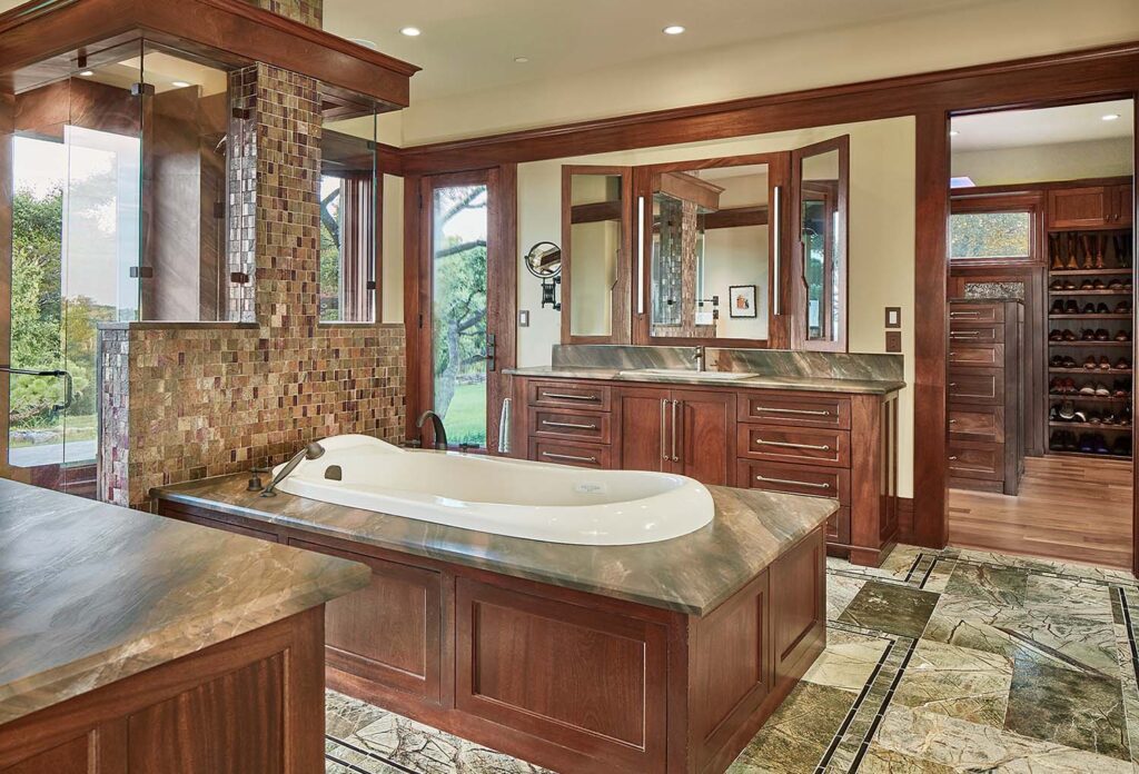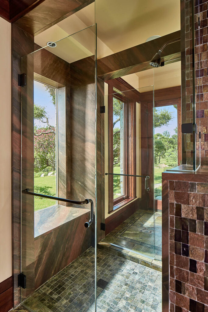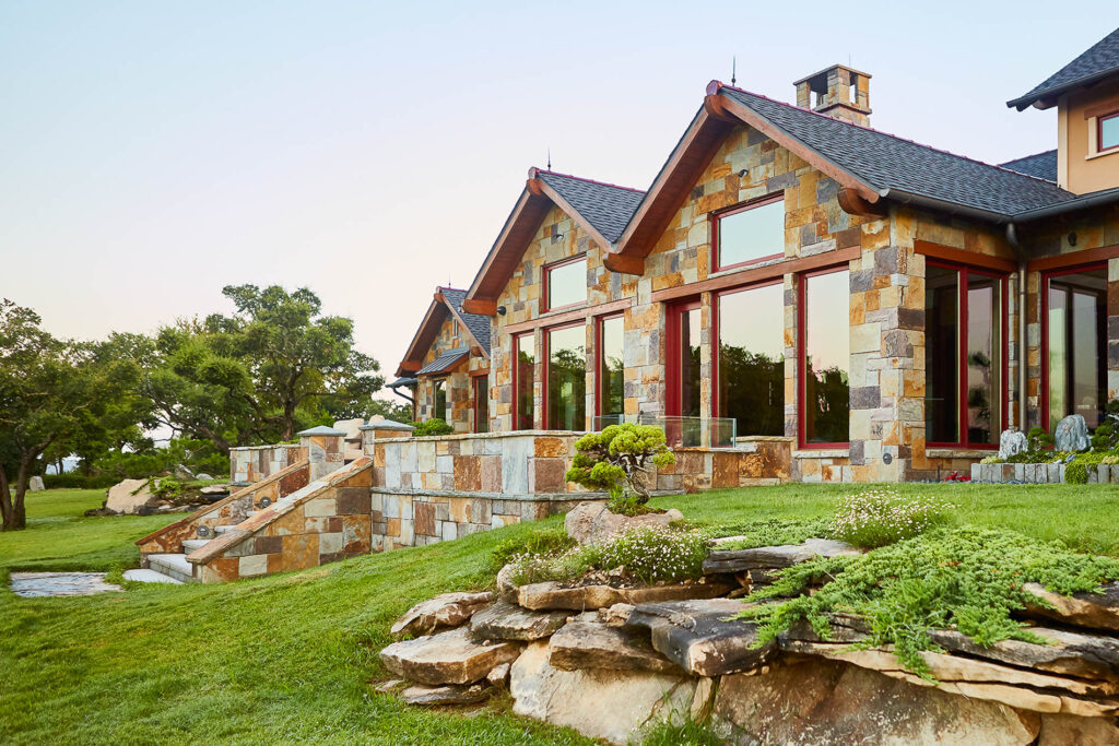 Living in a remote countryside location far away from normal city services like fire, ambulance, natural gas, sewer, water and other conveniences, it was important to incorporate these protections into the project scope. As a result, this custom hill country home was designed with fire sprinklers, lightning protection, back-up power generators, a water well, and propane and aerobic septic systems.