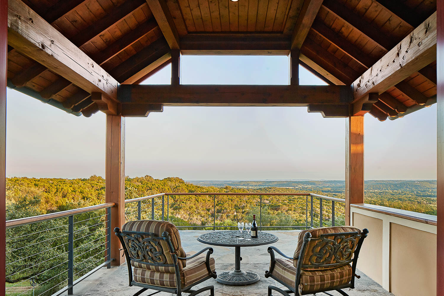 This Greene & Greene architecturally-inspired custom home designed by Dallas Architect Michael Lyons is thoughtfully perched atop a Texas Hill Country bluff overlooking the Paluxy River Valley in Hood County, TX, just south of Granbury. It is a perfect retreat for a former Dallasite to reconnect with nature, wildlife, star filled nights and his family roots.