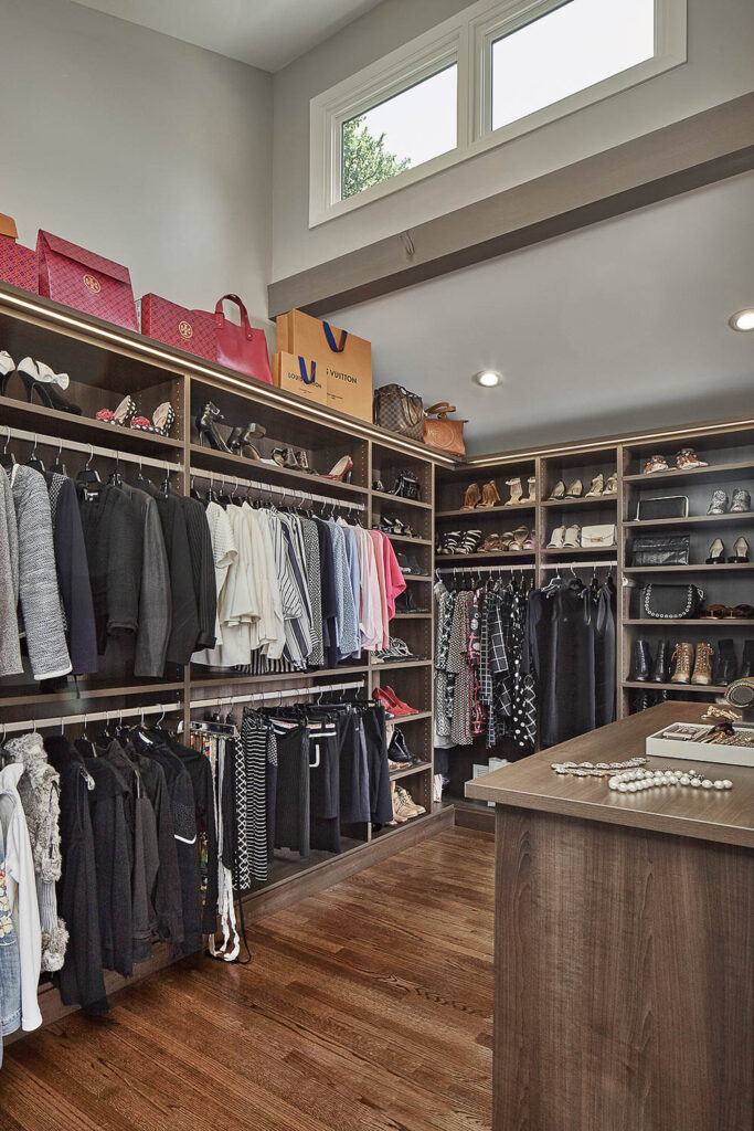 Raised ceilings with Clerestory windows make the newly renovated master suite feel larger and the windows flood the interior spaces with natural light. Large glass patio doors provide great views and access to the pool and outdoor entertainment areas. A customized closet system was designed & installed to provide better storage, organization, and an upscale retail look.