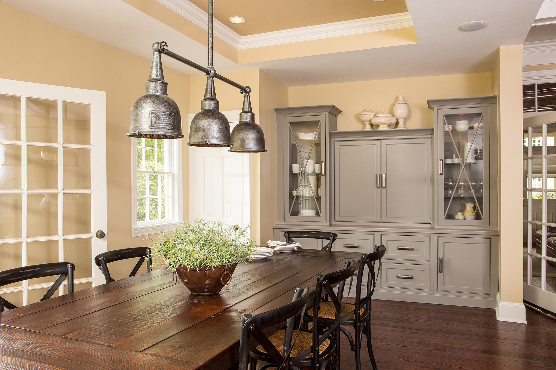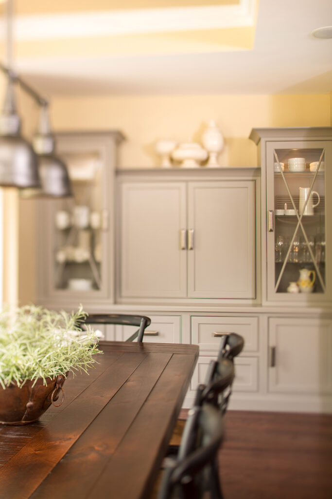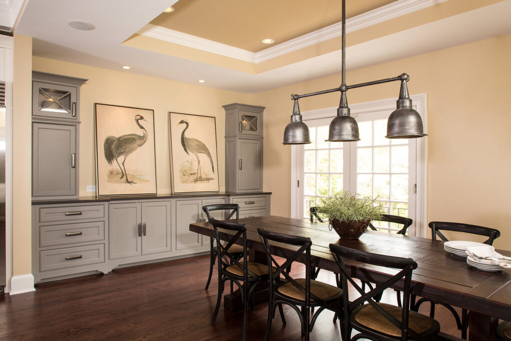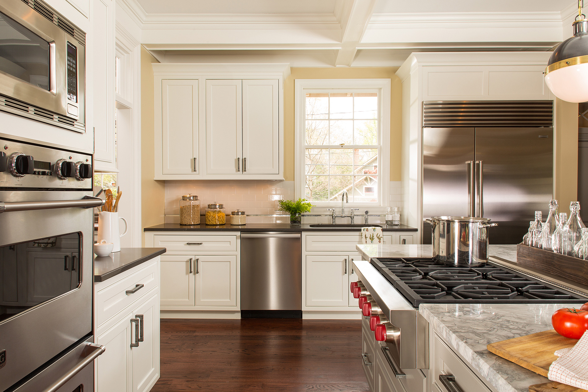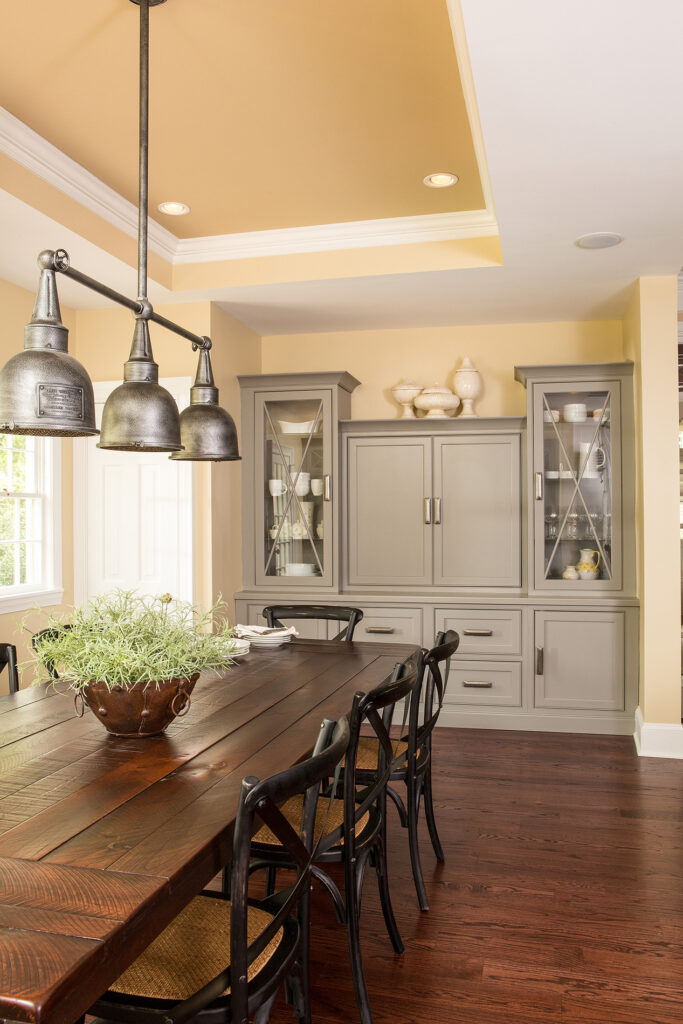 Balancing old and new, this renovation incorporates formal elements with a relaxed vibe. Timeless colors and details create a traditional feel. The lighting nods to the 1920s, while the cabinet hardware mixes antique and industrial styles. The kitchen features clever storage solutions, such as a cocktail bar, custom built-ins and a butler’s pantry with rustic brick veneer. Additional improvements include new hardwood floors and adding coffers to enhance the structural ceiling beams. The renovation created a tighter envelope with relocated ducts, added insulation, and air sealing. This beautifully transformed 500 sq. ft. kitchen not only meets this growing family’s everyday needs, but accommodates their love for entertaining.