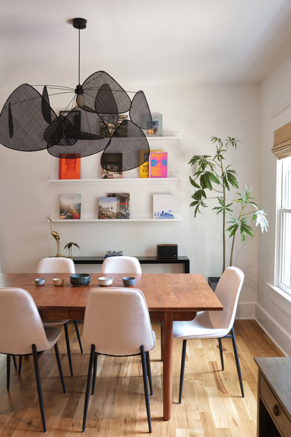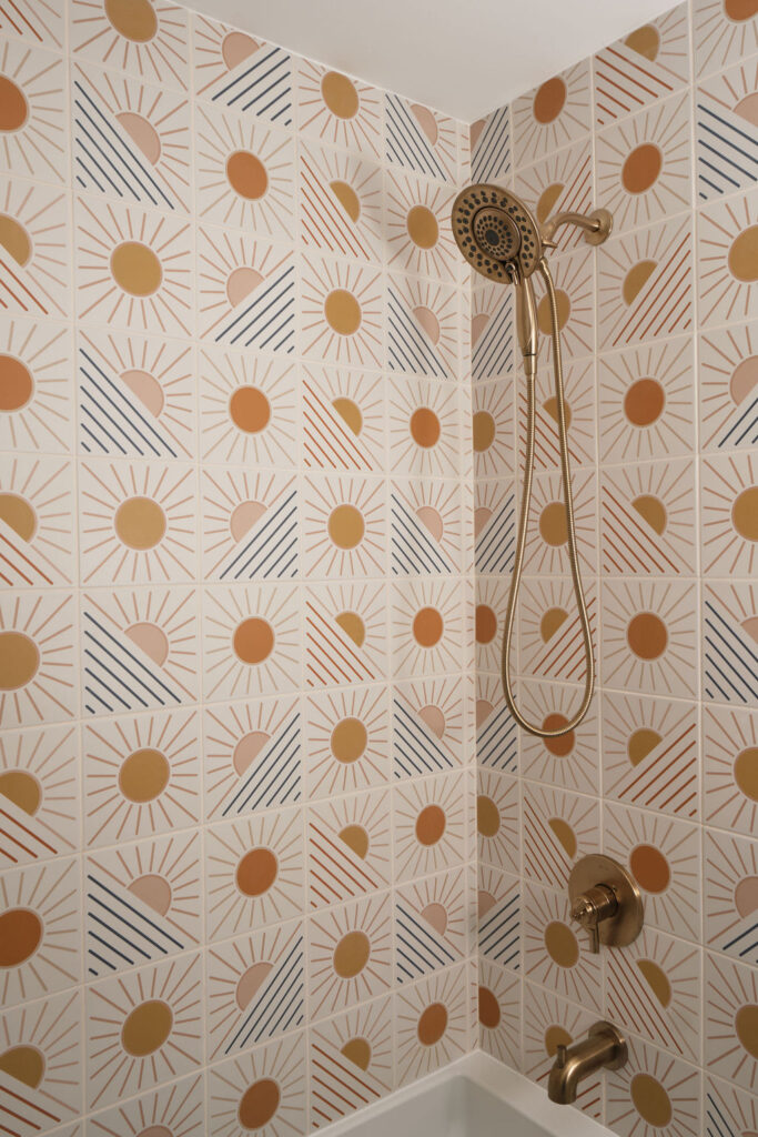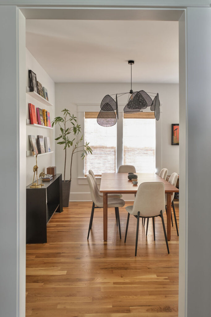 Mixing bold colorful elements with peaceful floors and soothing trim, this home strikes a balance that makes it a lively sanctuary; well-suited for relaxation, while also supporting the vibrant, busy lives of its owners.