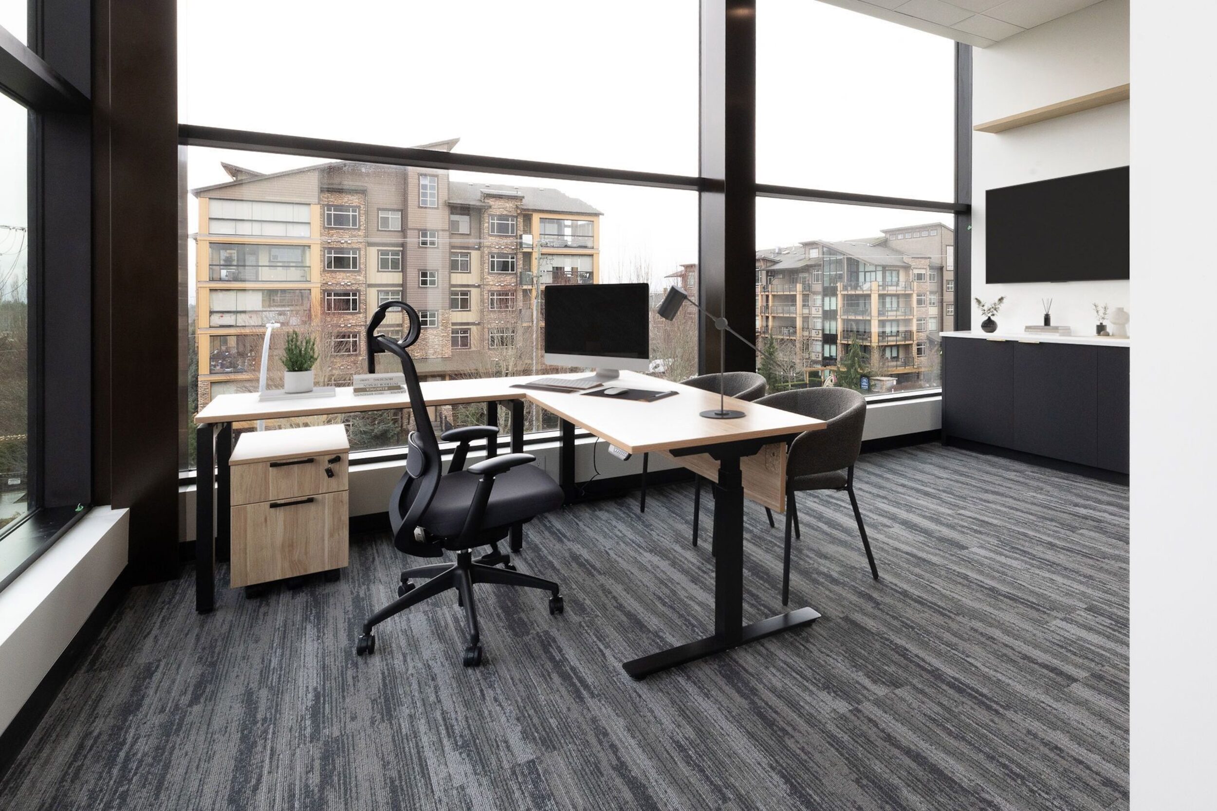The space includes twelve private offices, two shared workstations, a boardroom, kitchen, and centralized printer station, providing a flexible and highly functional workplace. Designed to align with Ashdown’s network of Alair offices across Western Canada, the layout reflects both consistency and local character.