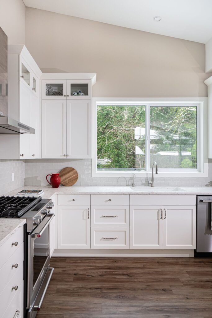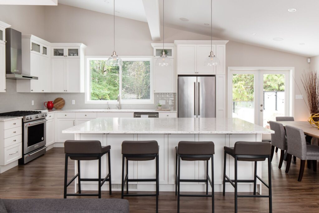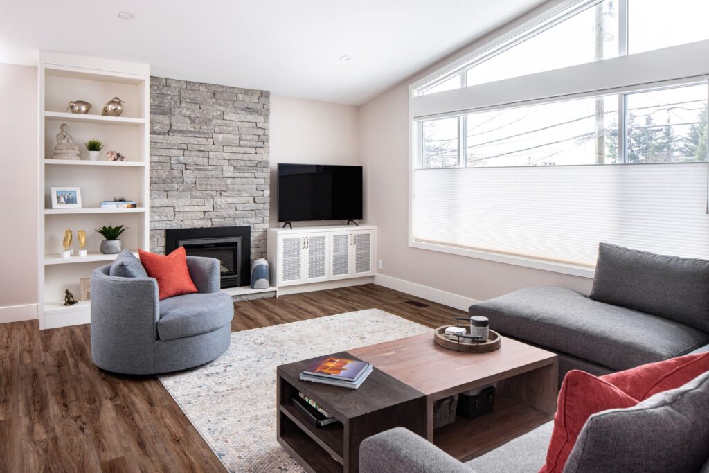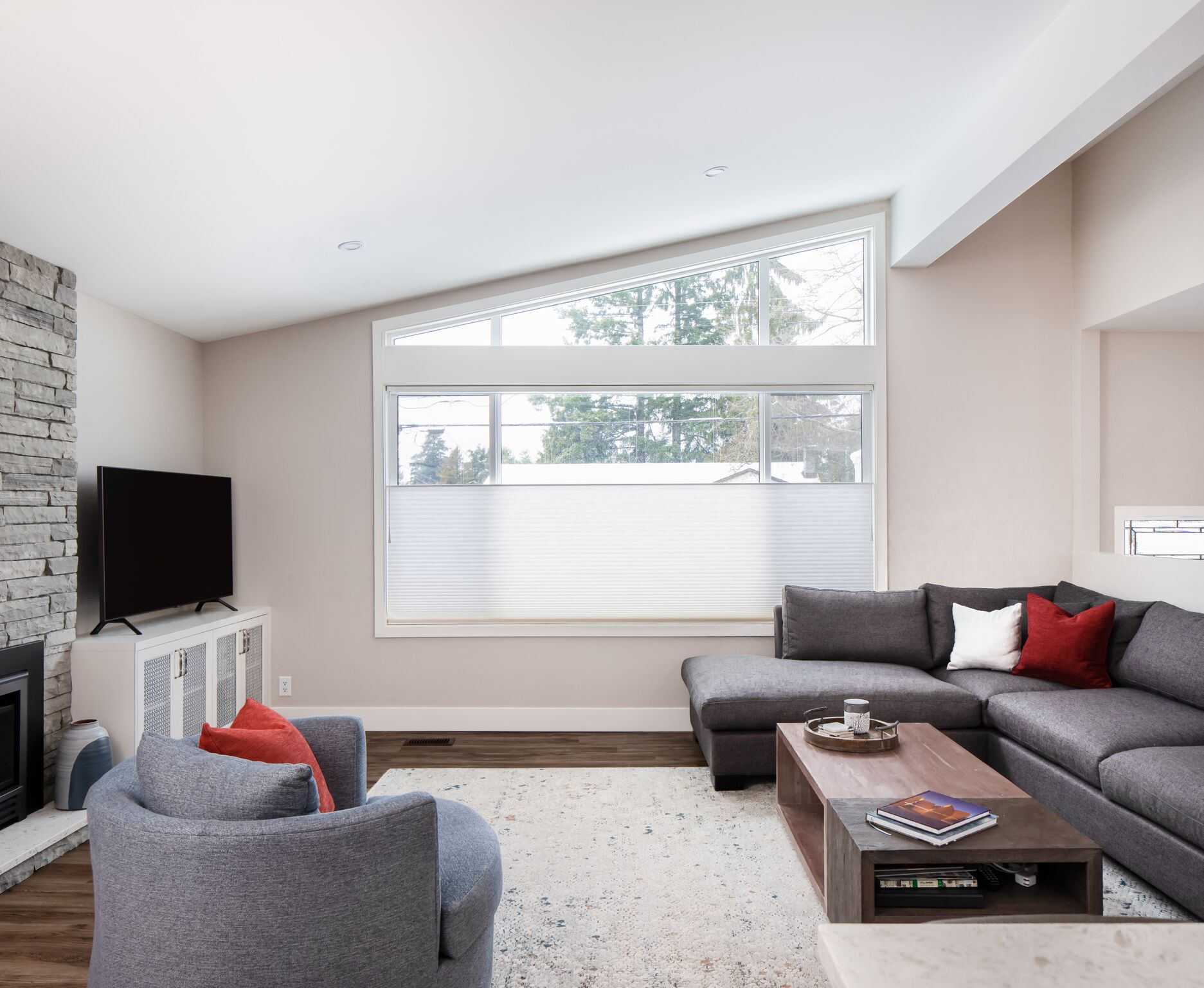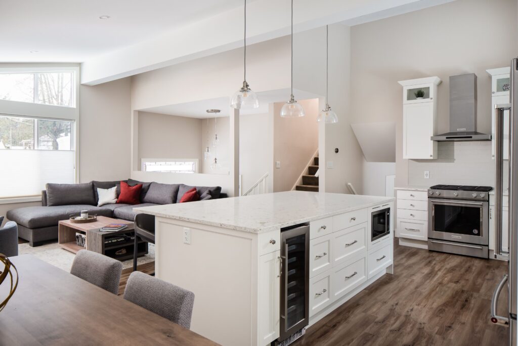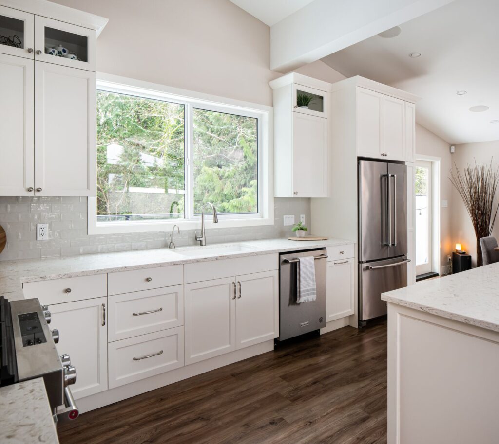 This home had a major facelift with a new front entry, doors, windows & siding. The main floor was completely opened up to take full advantage of the large gathering space and vaulted ceilings. The renovation also included enclosing their under deck space to turn into a proper laundry room and home gym area.