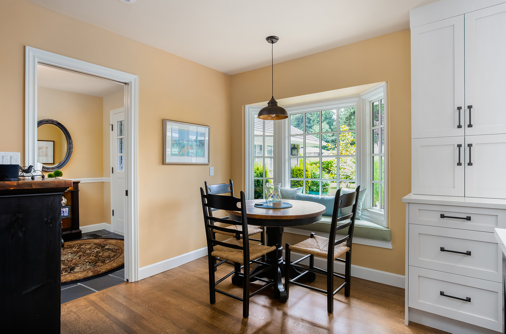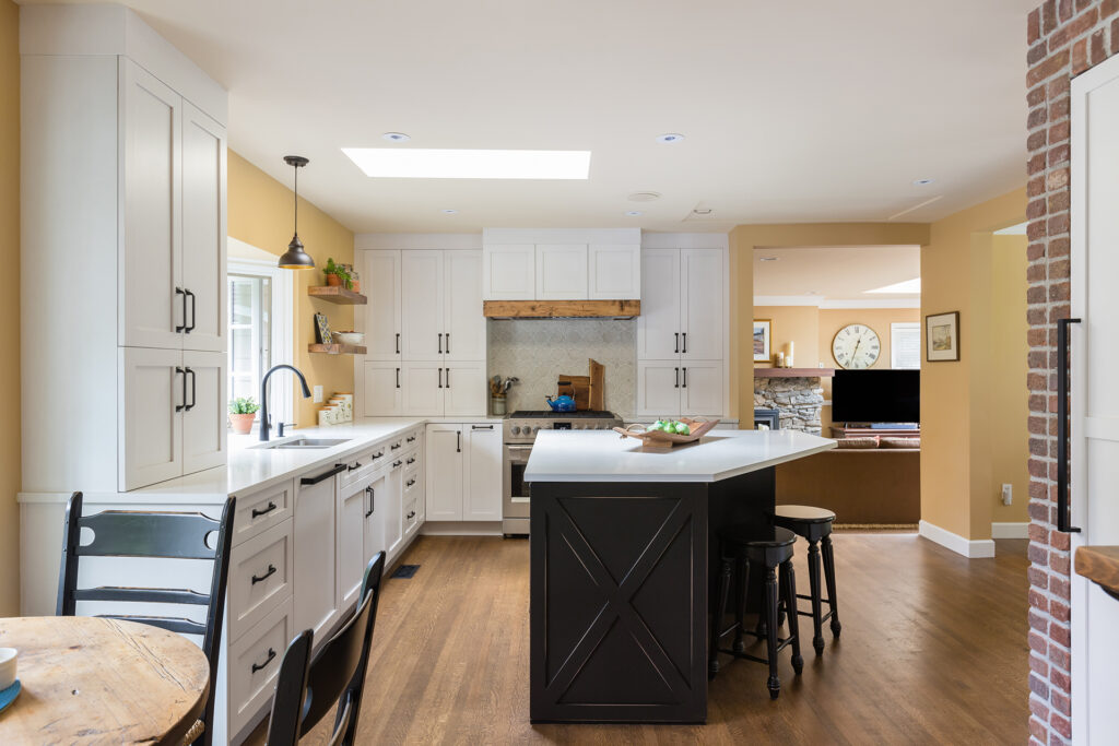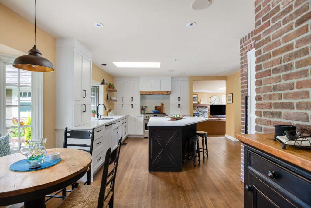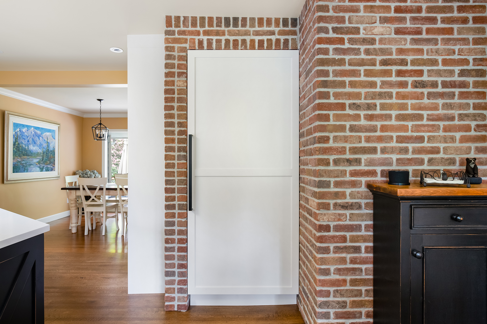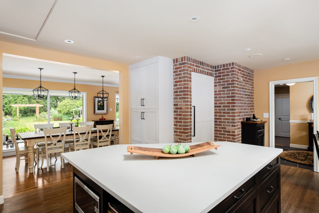 This rancher is original to the area and has seen a few updates in its history. The kitchen design was centered around matching the existing interior elements and to look as if it could always be a part of the home. A more functional island, new cabinetry & appliances with rustic highlights, new brick accents, and refinished oak hardwood to modernize this space, but stay true to the character of the home and neighborhood.