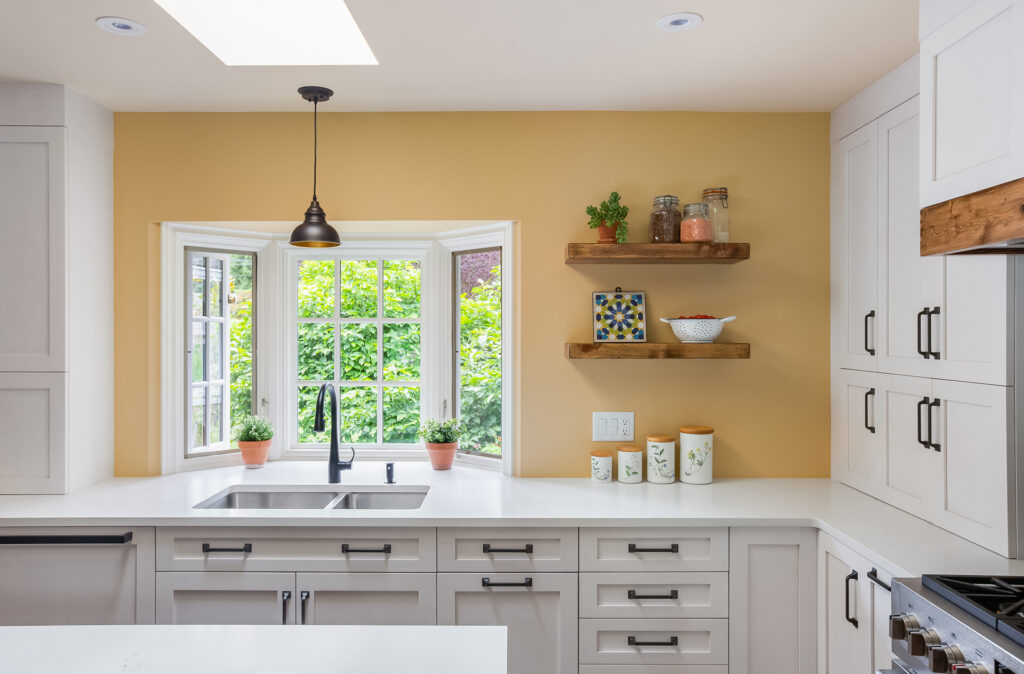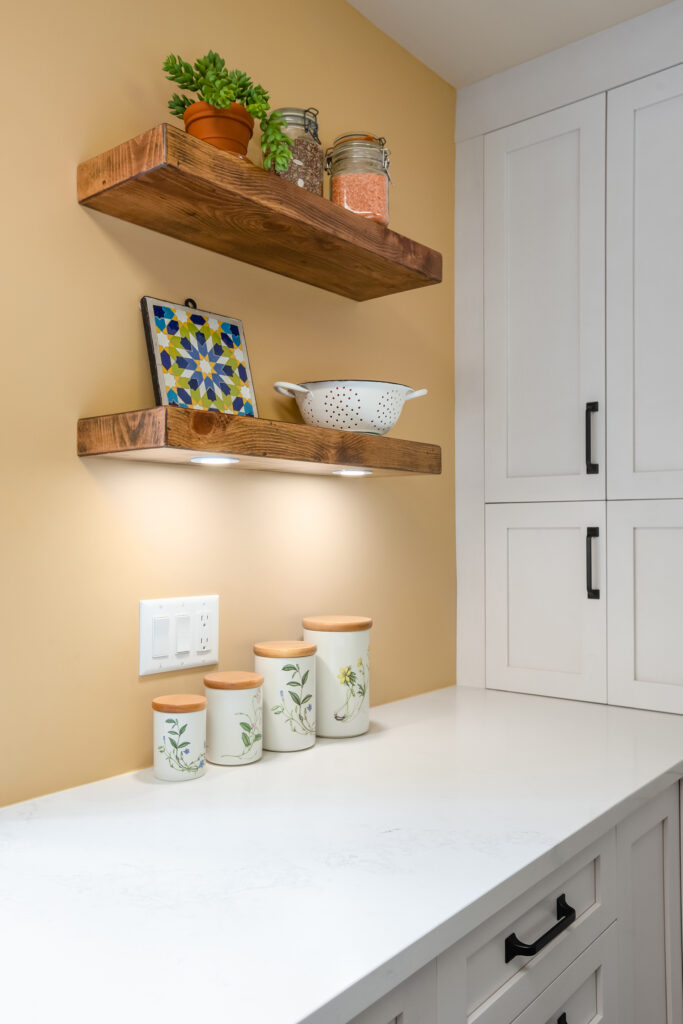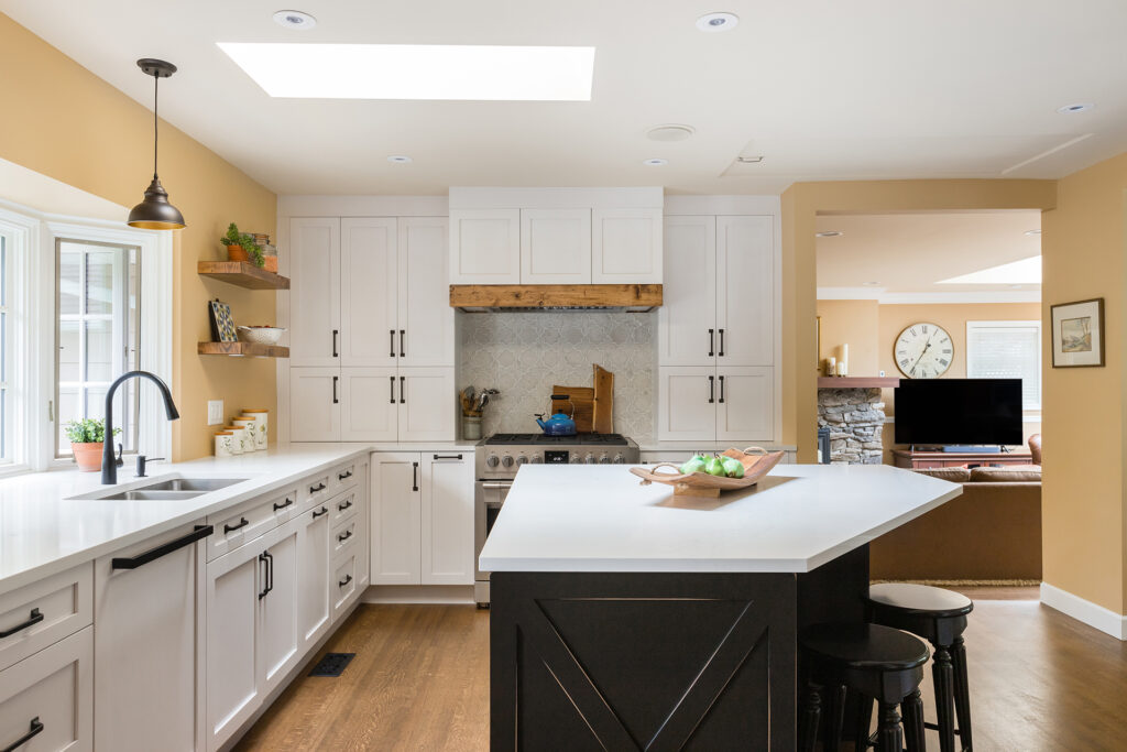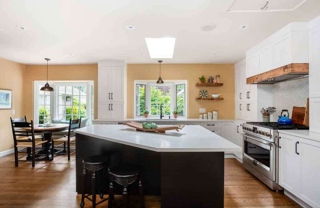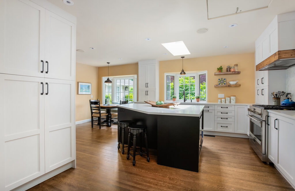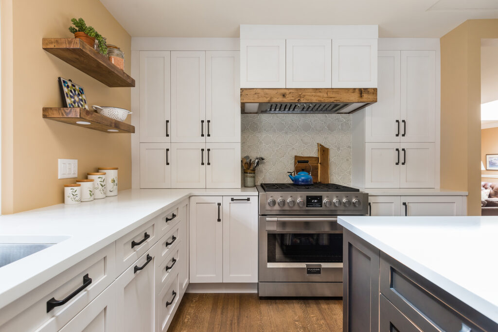 This rancher is original to the area and has seen a few updates in its history. The kitchen design was centered around matching the existing interior elements and to look as if it could always be a part of the home. A more functional island, new cabinetry & appliances with rustic highlights, new brick accents, and refinished oak hardwood to modernize this space, but stay true to the character of the home and neighborhood.