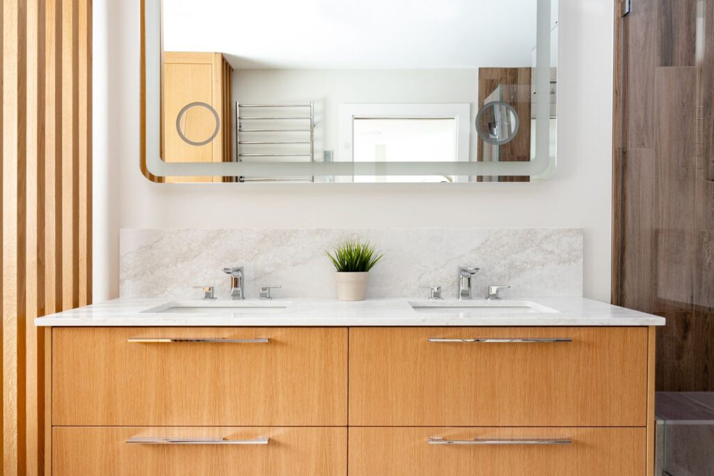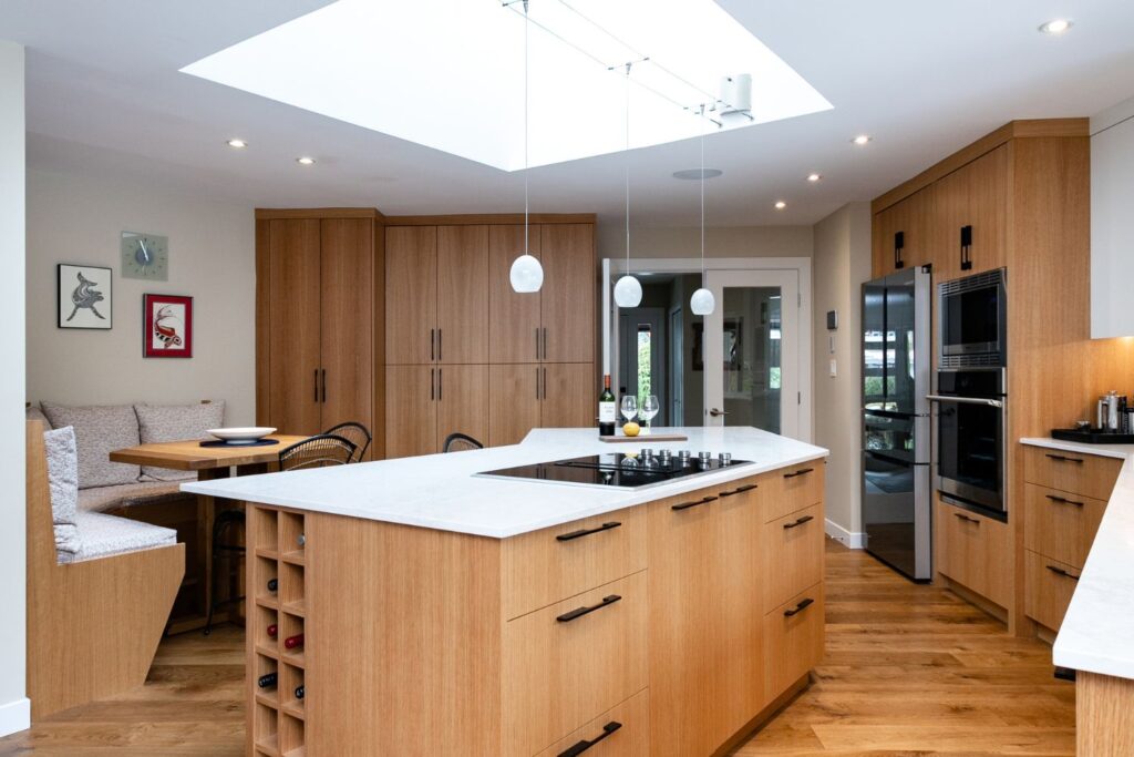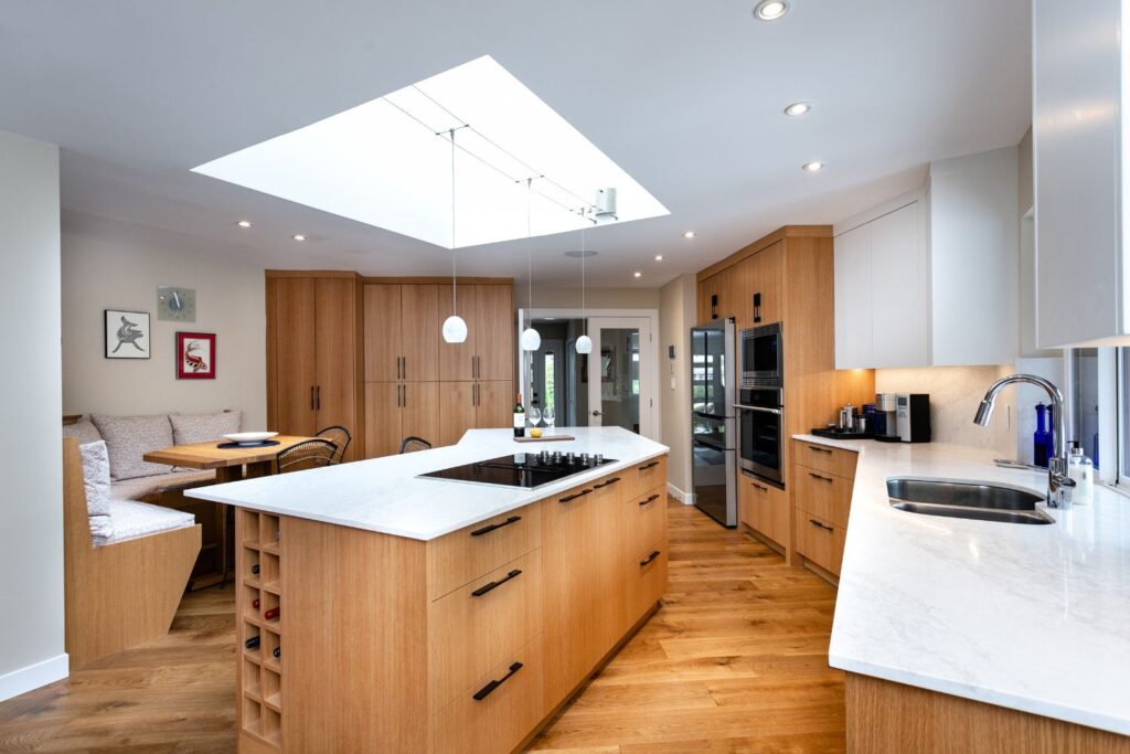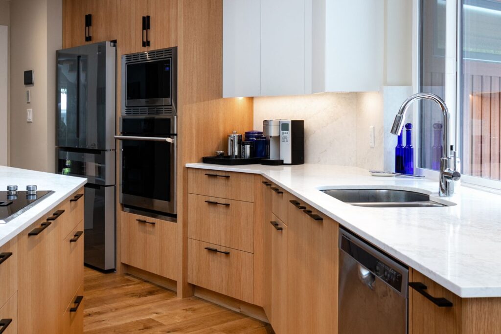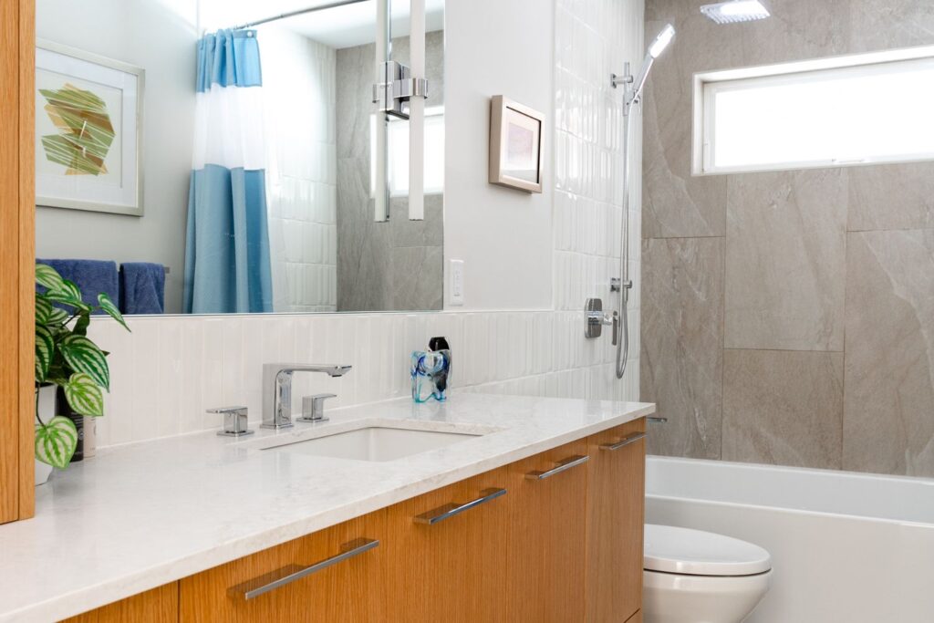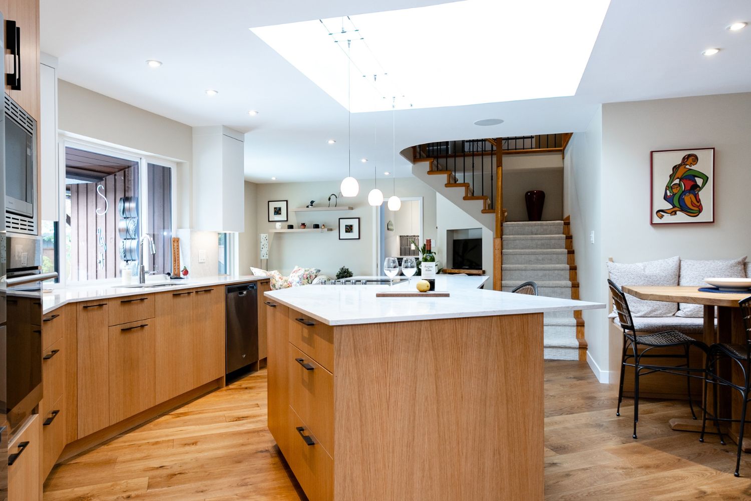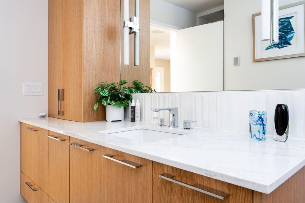 This was a large-scale home renovation of roughly 2500 sq’ that was completed in 6 months. Curve Interiors was involved in the interior design and material specification for the project. Started as an in-floor radiant heat repair and grew into a large-scale renovation. Reconfigure of the master and main bathrooms, kitchen, laundry and powder rooms. Replaced poly b in-floor heat system with Warmboard, new flooring throughout. New millwork throughout the home.