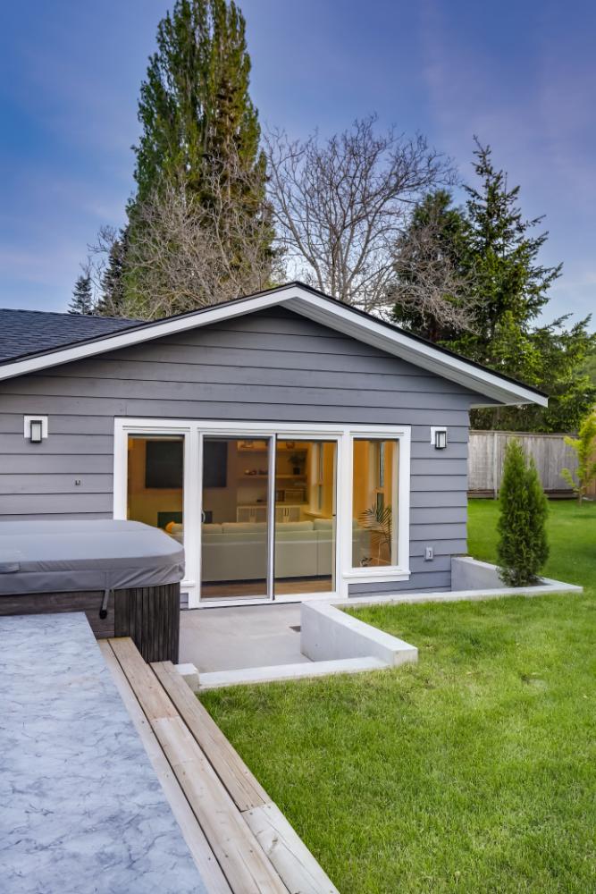 We also added a new mechanical room, an outdoor deck and upgraded the patio area to accommodate a hot tub and an outdoor shower space.