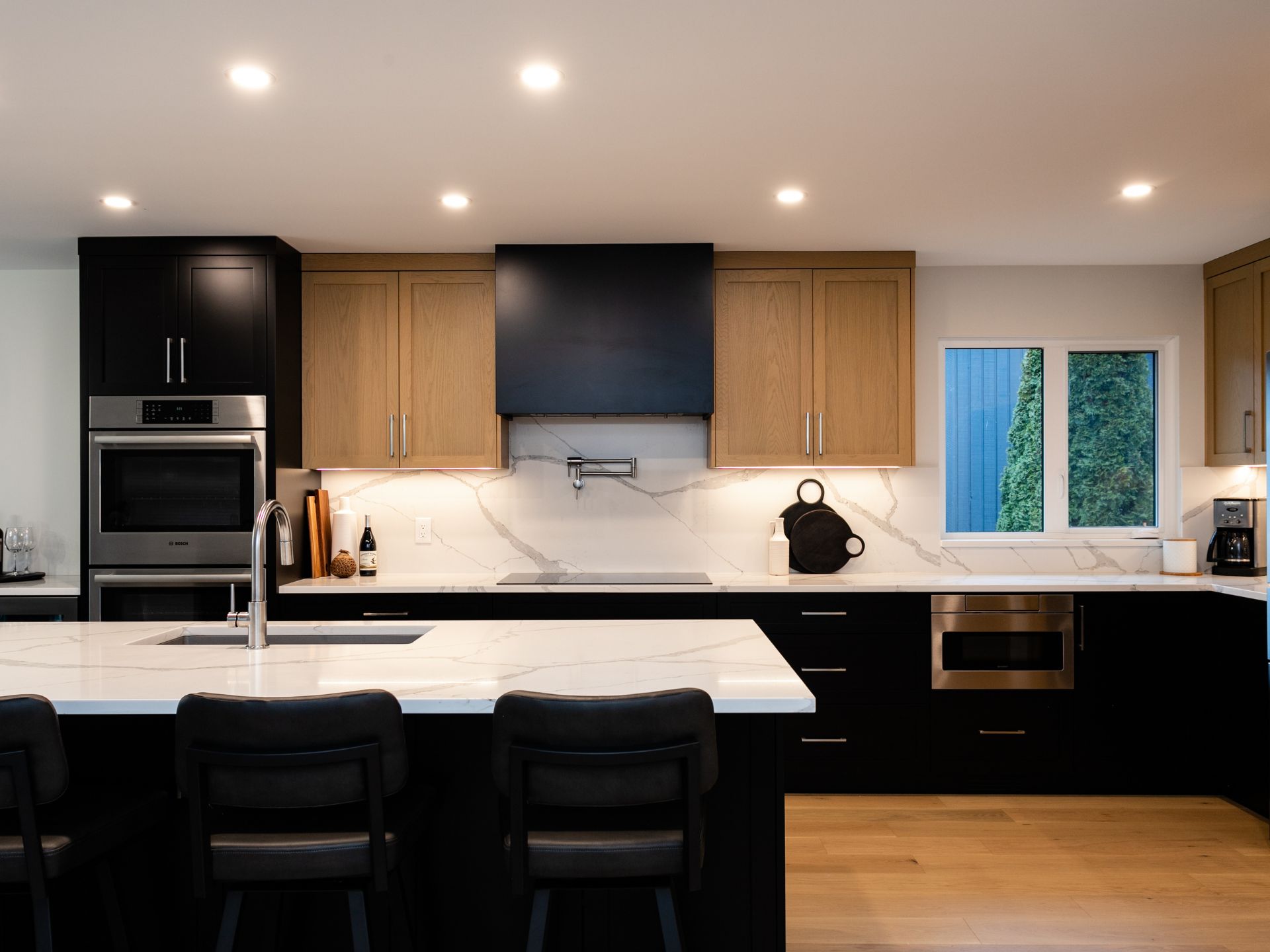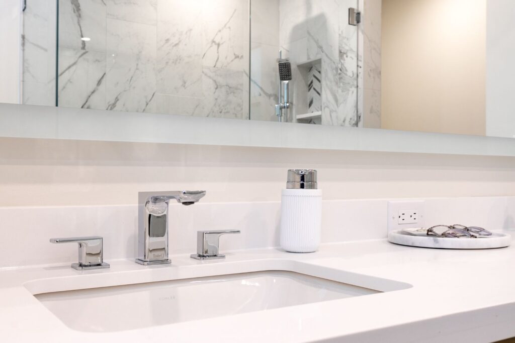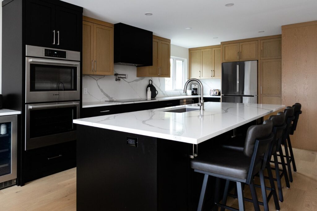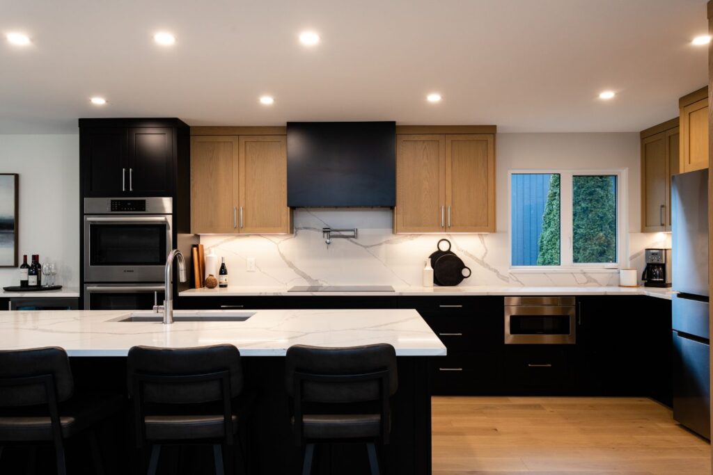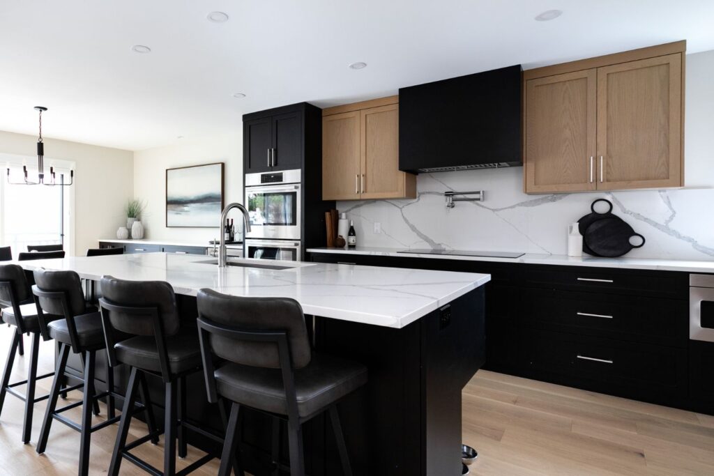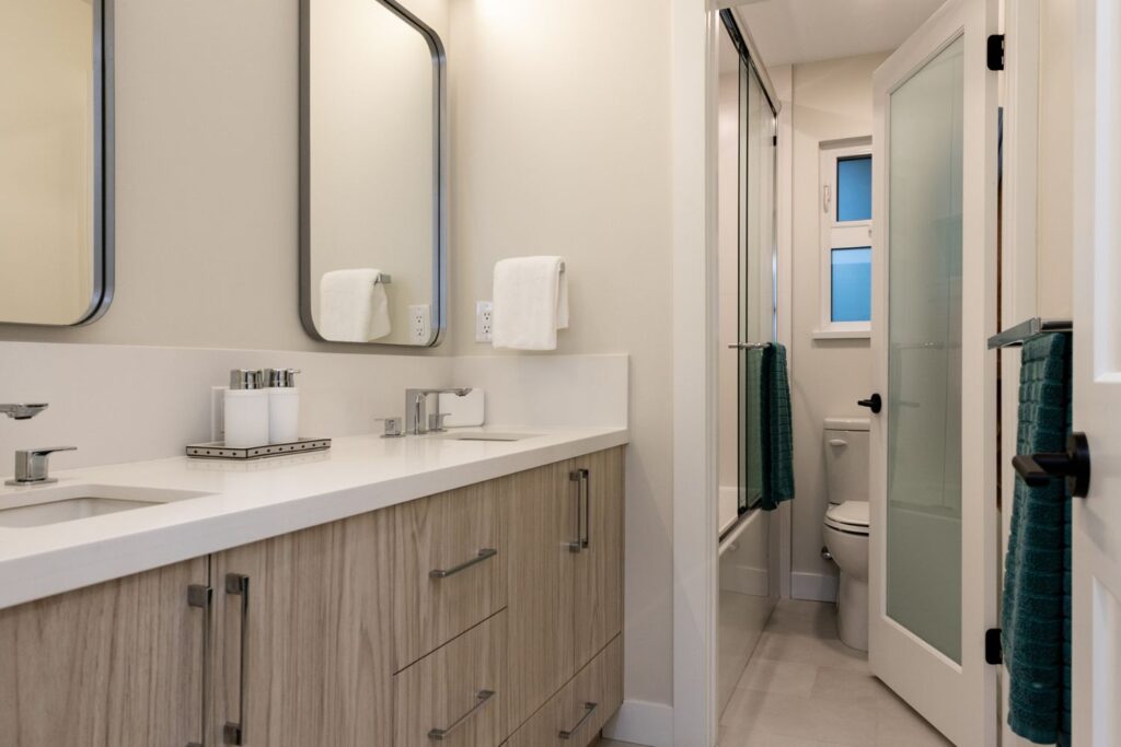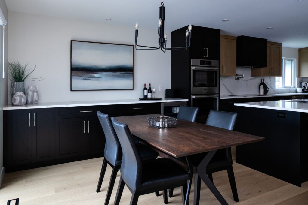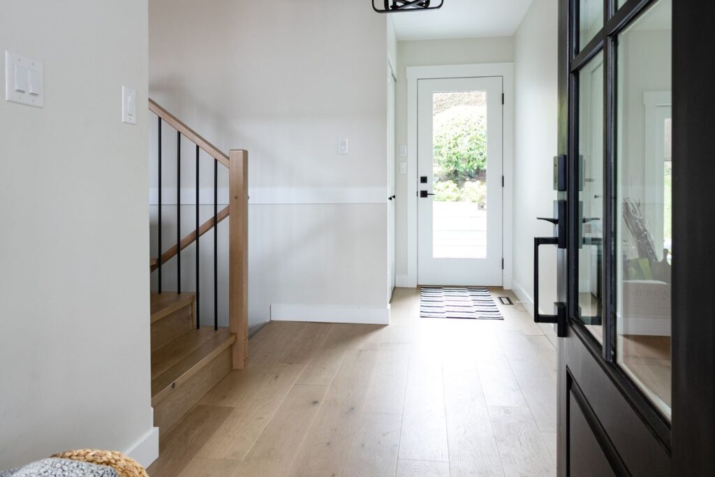 Whole home renovation, including connecting the existing living room and kitchen space to create a new “great room”, renovations to the main bathroom and en suite, new flooring, paint, as well as new finishes to the exterior including new paint, balcony railing, windows and doors.