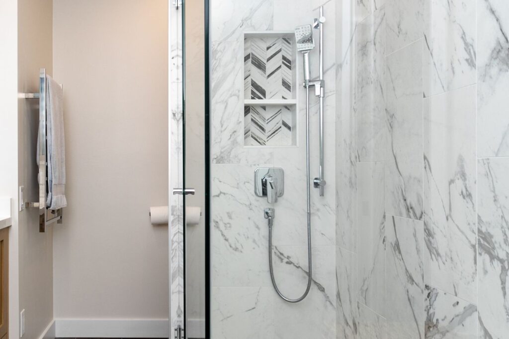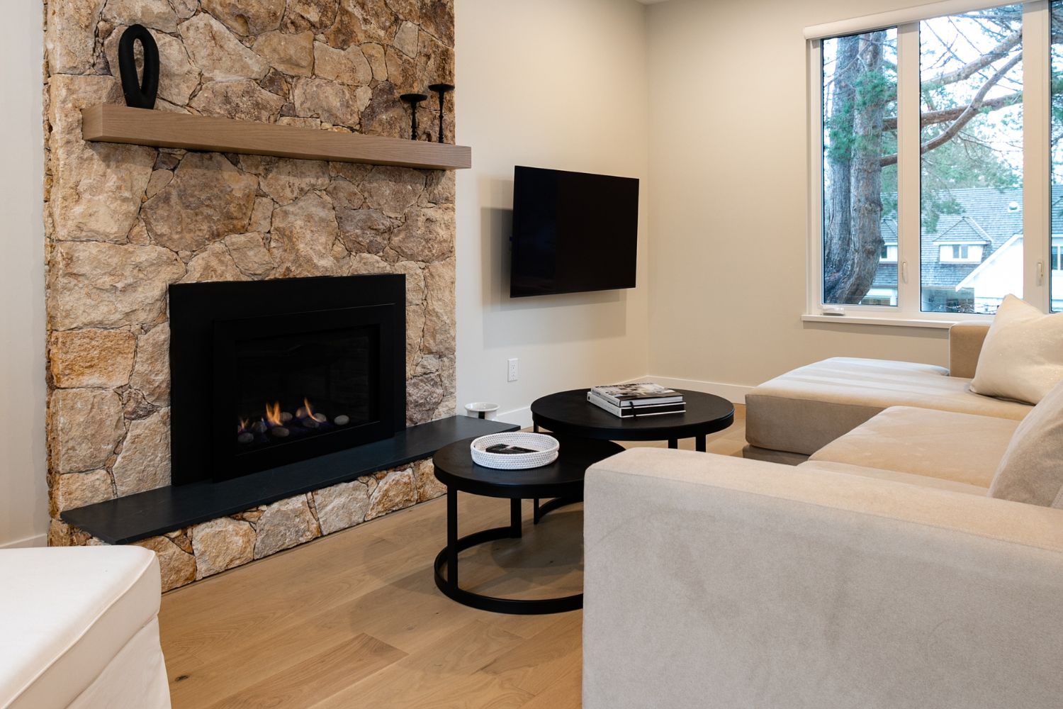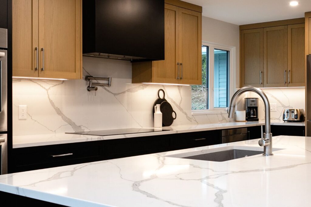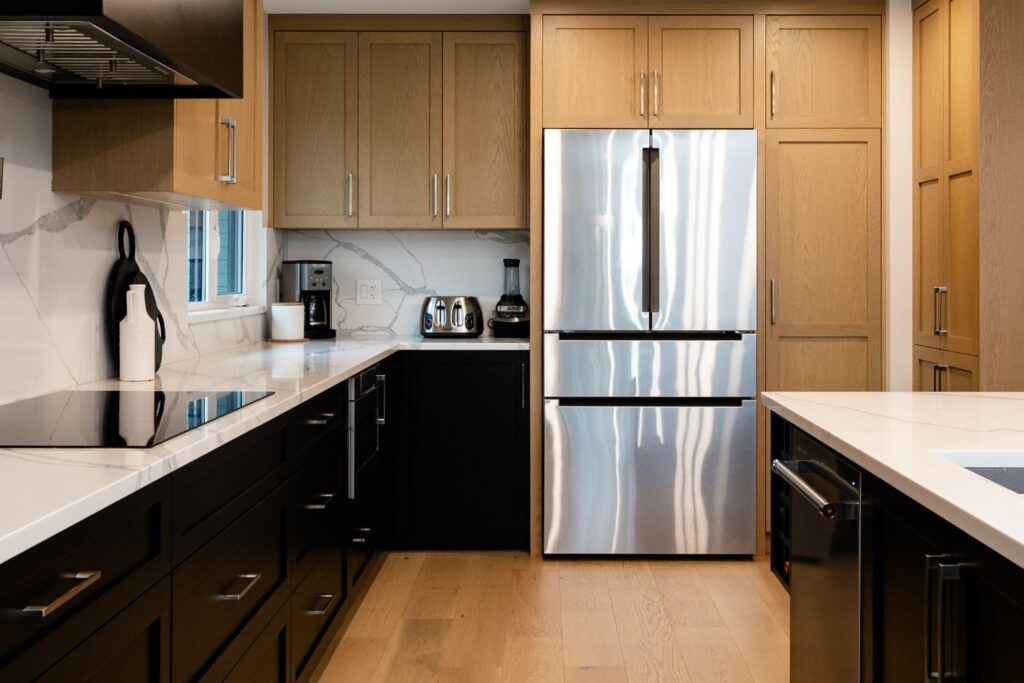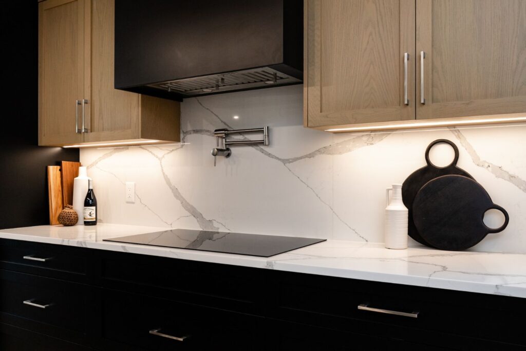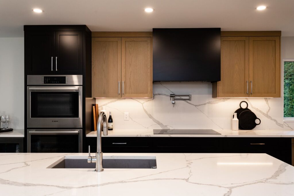 Whole home renovation, including connecting the existing living room and kitchen space to create a new “great room”, renovations to the main bathroom and en suite, new flooring, paint, as well as new finishes to the exterior including new paint, balcony railing, windows and doors.