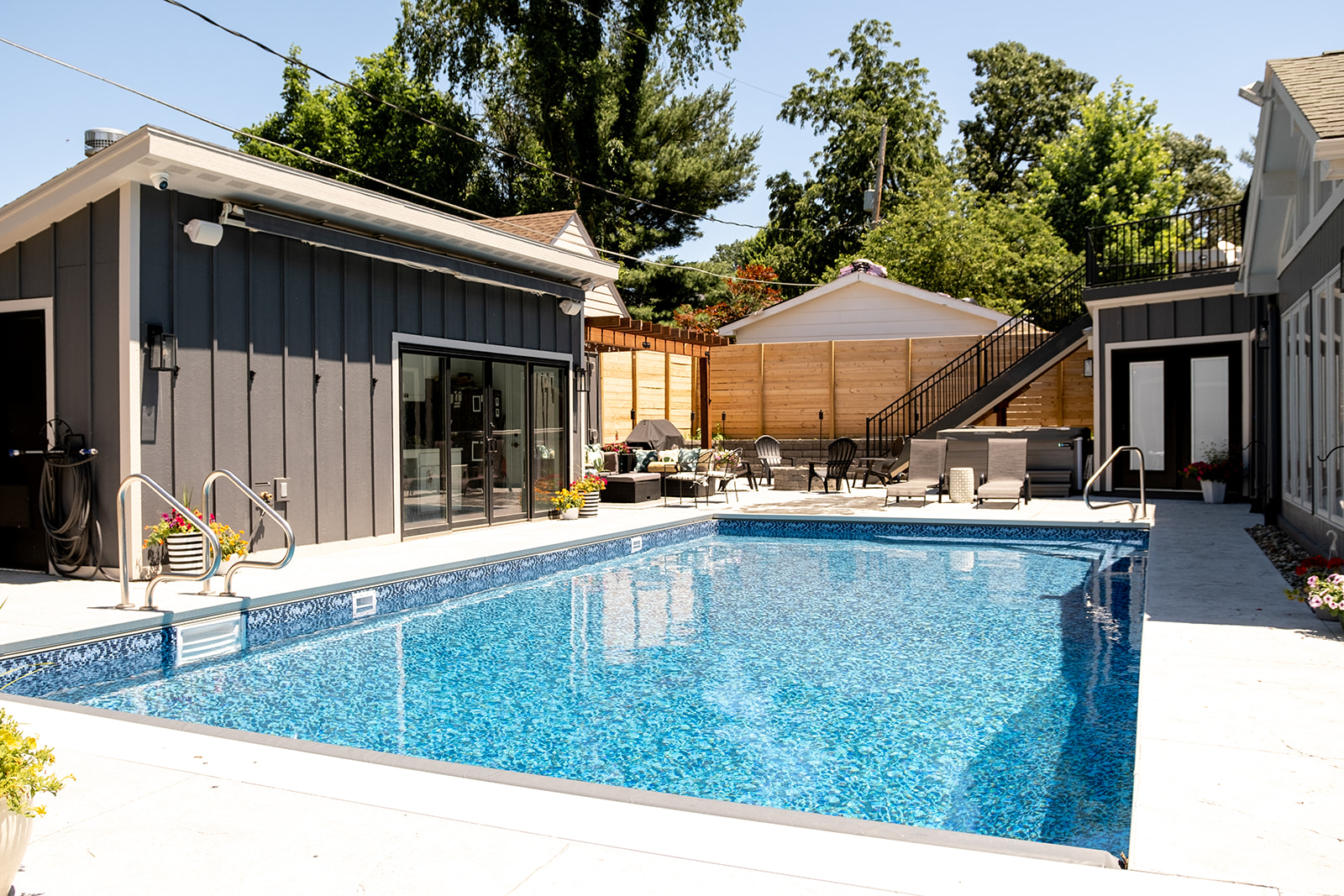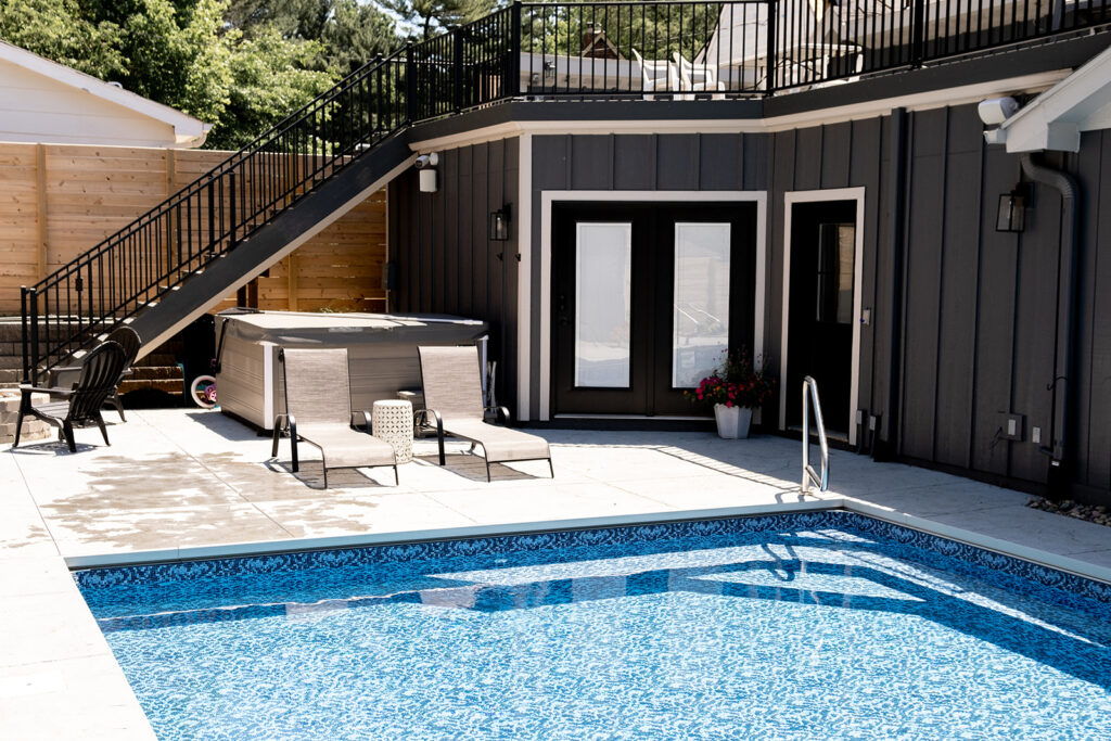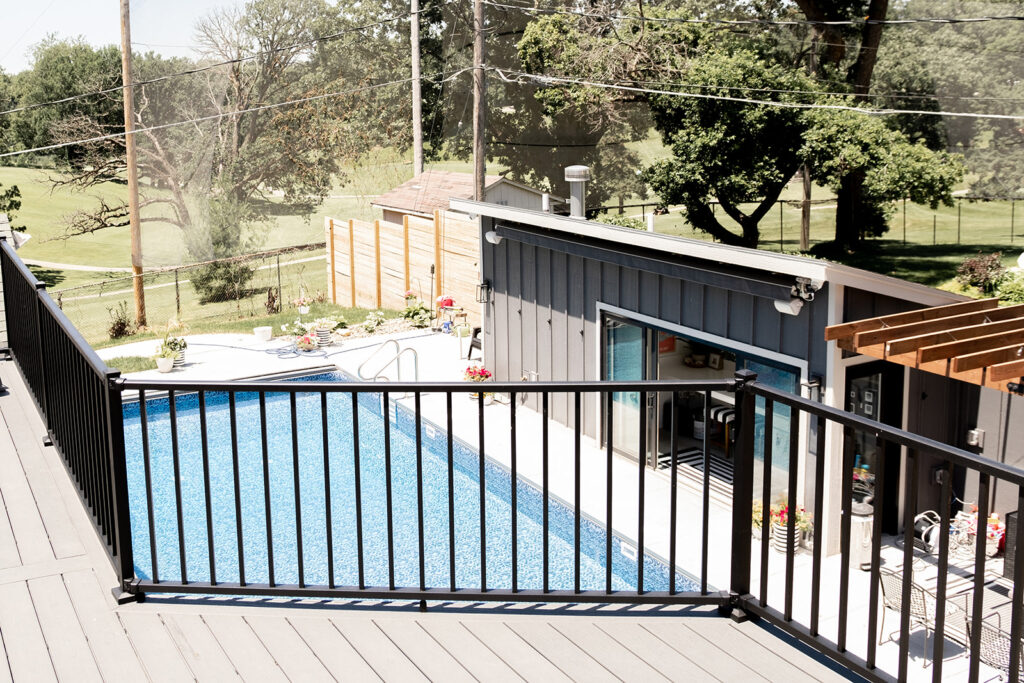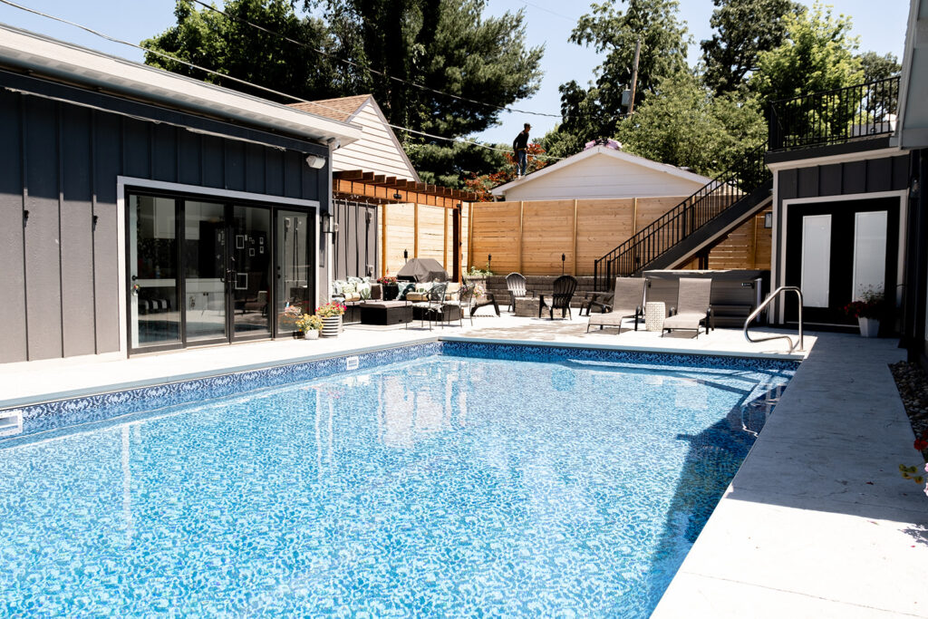 The project consisted of an 800+ square foot addition that included a master suite, laundry room and half bathroom. We renovated the kitchen and add hardwood floors throughout the entire main level of the home. The addition of a pool, pool house, fire pit, and hot tub has created an amazing backyard oasis. The exterior was updated with siding repairs and new paint to top it off.