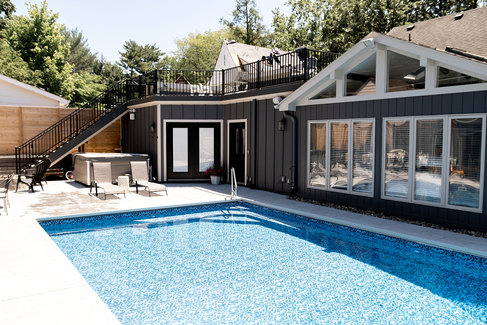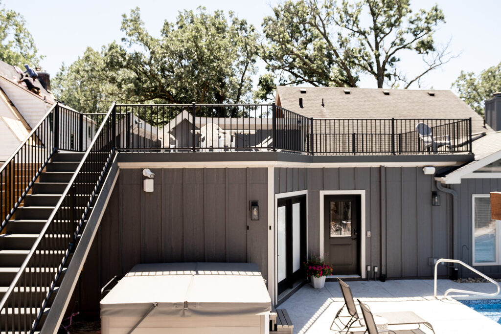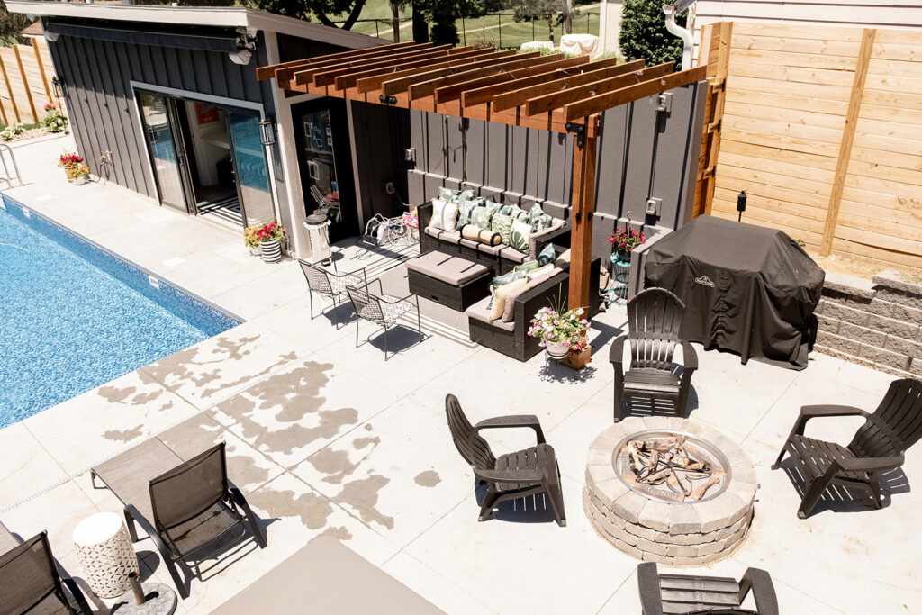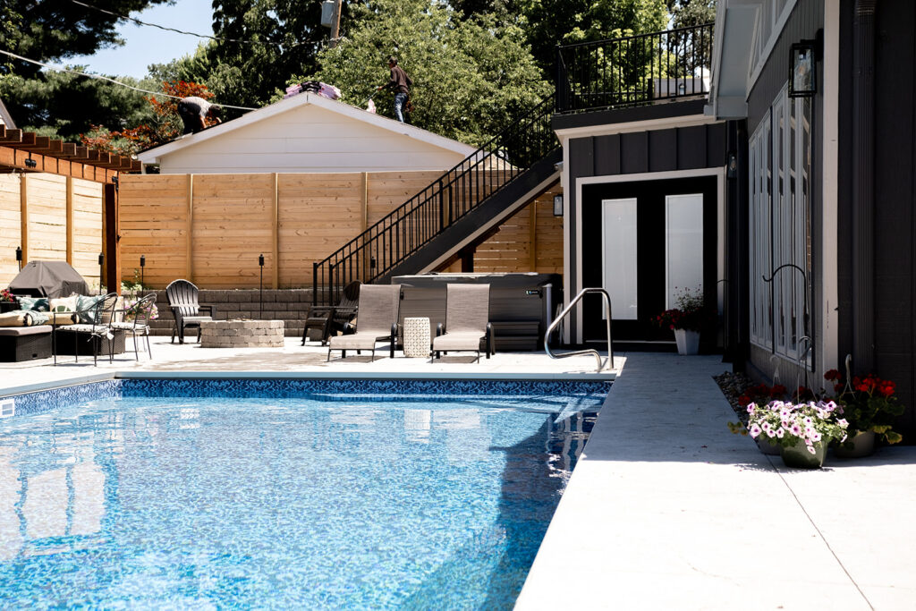 The project consisted of an 800+ square foot addition that included a master suite, laundry room and half bathroom. We renovated the kitchen and add hardwood floors throughout the entire main level of the home. The addition of a pool, pool house, fire pit, and hot tub has created an amazing backyard oasis. The exterior was updated with siding repairs and new paint to top it off.