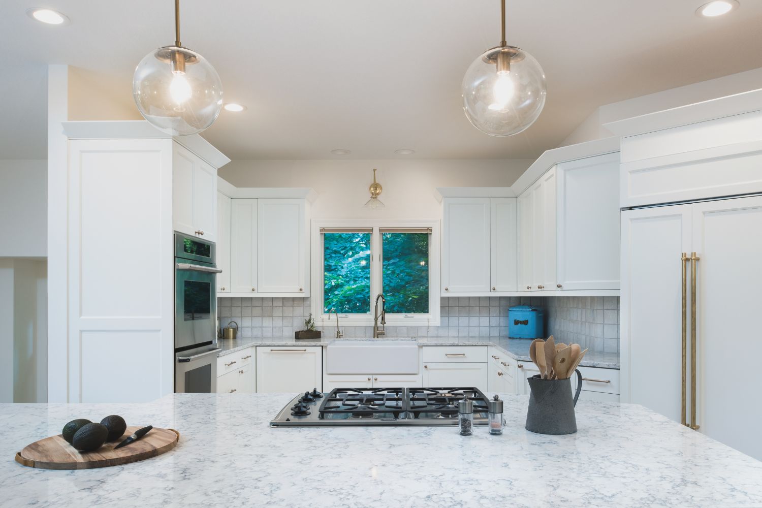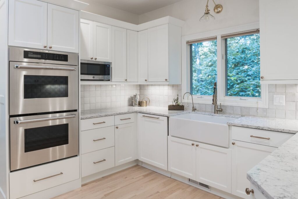 This whole home renovation was done in two phases. Phase one consisted of kitchen renovation, adding hardwood floors to the great room and master bedroom while refinishing the existing hardwood floors. The whole house was repainted along with lightening of the trim woodwork. Phase two consisted of a master bathroom gut and new layout and two secondary bathroom updates.