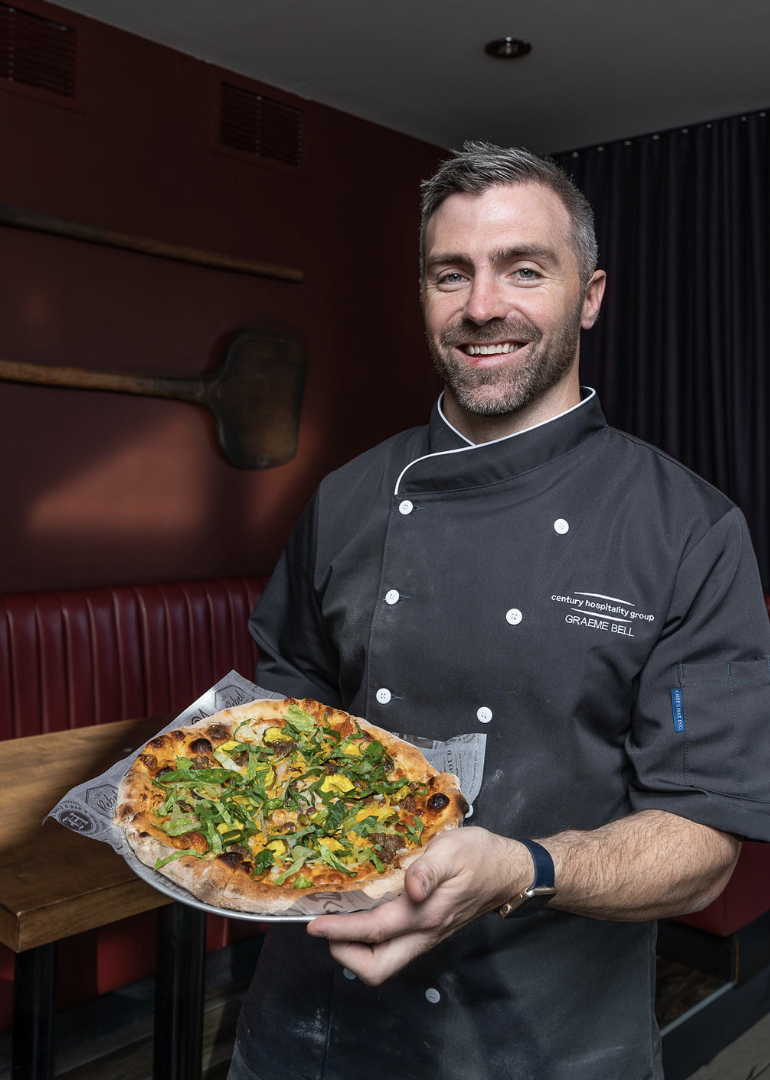 In partnership with The Parlour Italian Kitchen and Bar, Chef Bell is featured as the celebrity chef of the month at the restaurant where he created his “Big Bell” pizza.