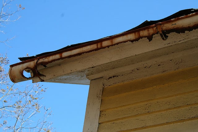 The first step in maintaining your gutters is to climb a ladder and take a look at them regularly. Look for decayed leaves and other organic material that is building up in your gutters and downspout, and make sure to remove it on a regular basis. This material can be removed by hand to be added to your compost bin, or you can take a hose and wash it out. Taking the time to perform this task on a monthly basis will save you a significant amount of time and money versus replacing your gutters more often than necessary.