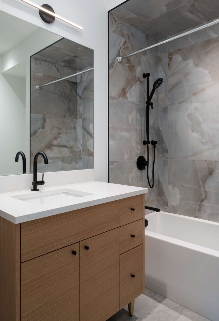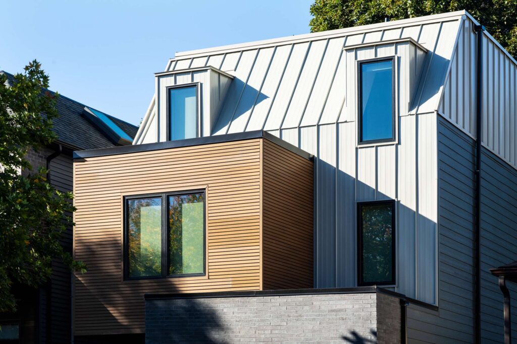 Unique but with a timeless design. The wish list included 3 bedrooms, individual home offices, a gymnasium, and an interior garage, and a maintenance-free exterior with plenty of contrast.