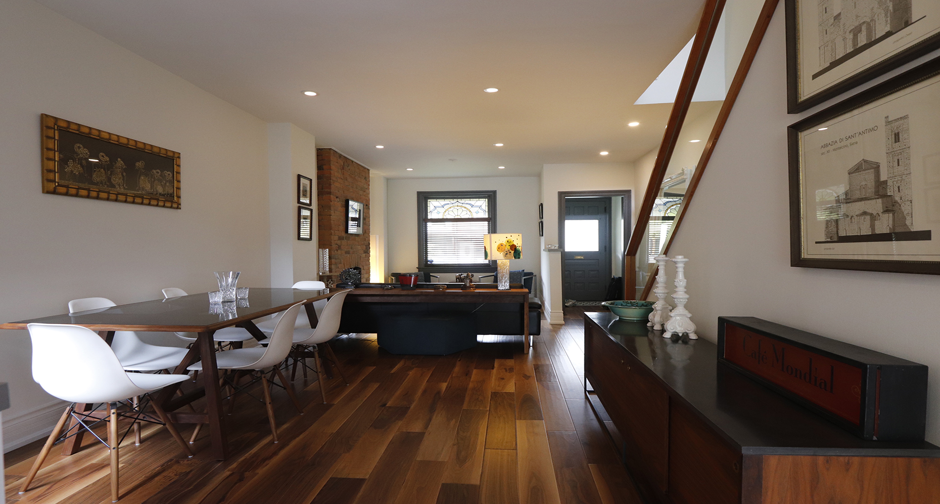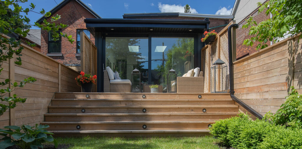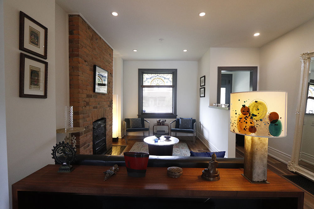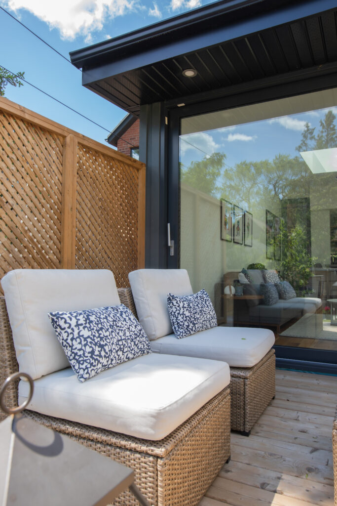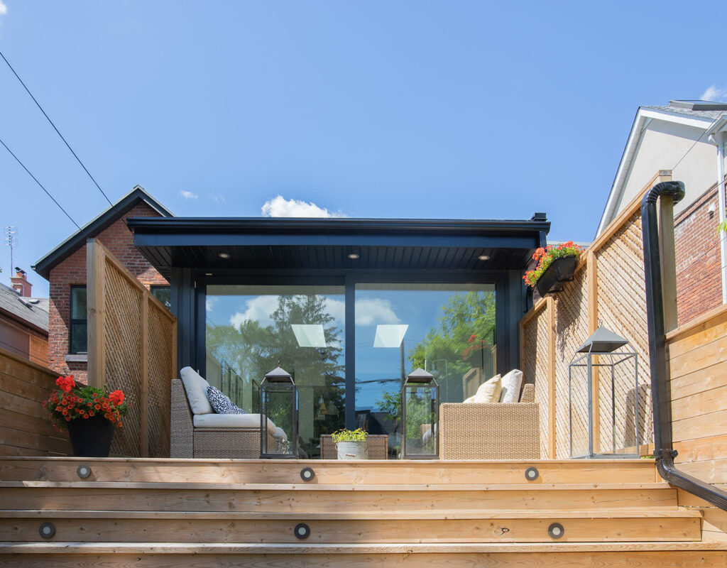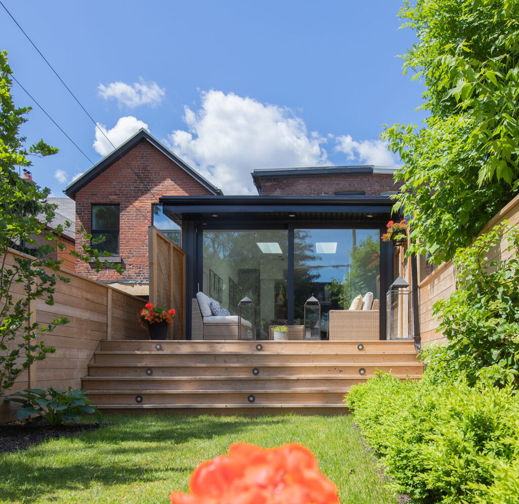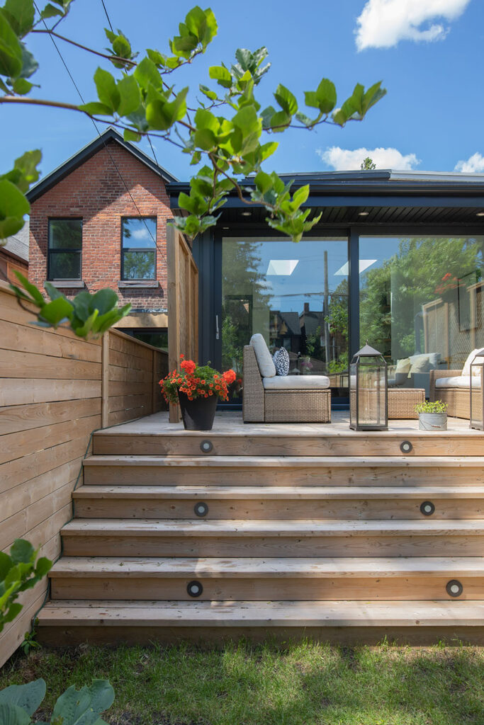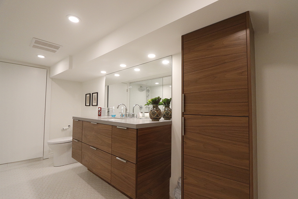 We renovated this Roncy semi’s main floor and basement, extending the original footprint to the rear. We made great use of the narrow layout by adding a full wall to wall and floor to ceiling glass wall on the addition, along with skylights. This project was completed on schedule, under budget, has been nominated for a BILD award.