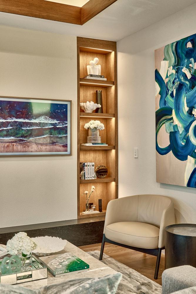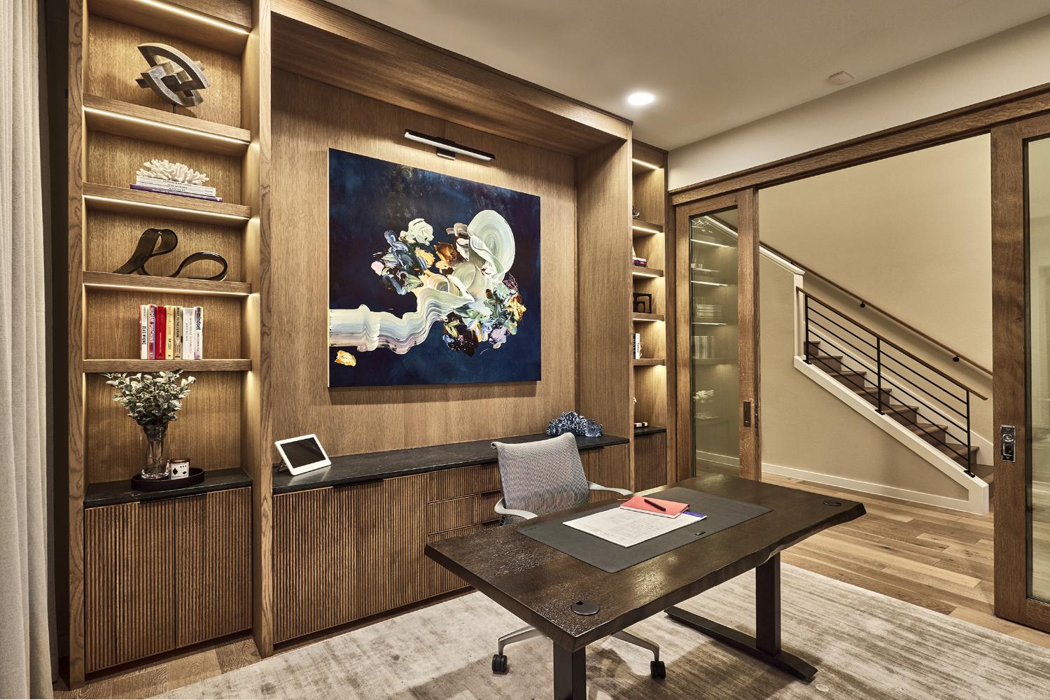 A complete interior remodel that includes the foyer, kitchen, family room, primary suite, powder bath, upstairs lounge area, dining room and study. Modern lighting upgrades, slat wall panels, quartz countertops and a stunning closet.
