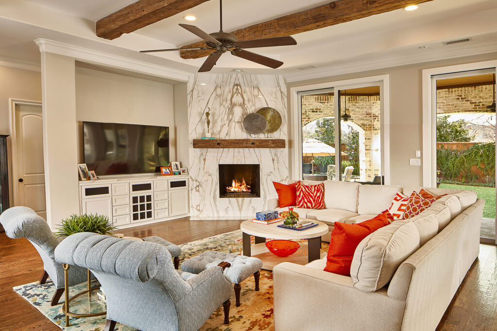 Cosmetic remodel for kitchen, family and dining areas including two fireplaces. Remove outdated doors and windows and replaced with new Marvin doors and windows.