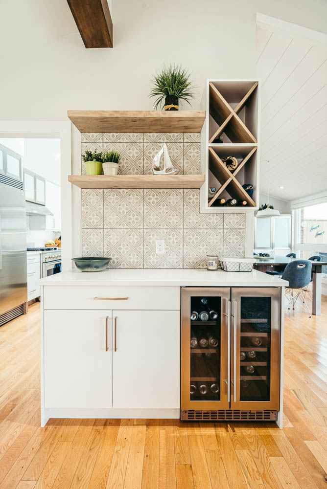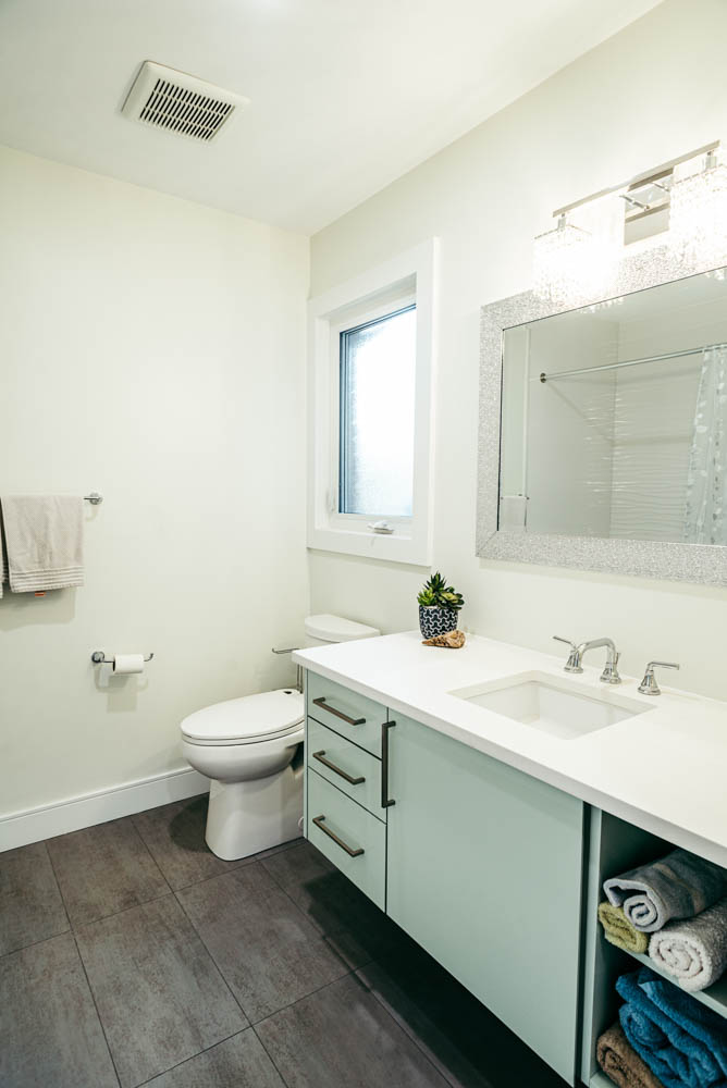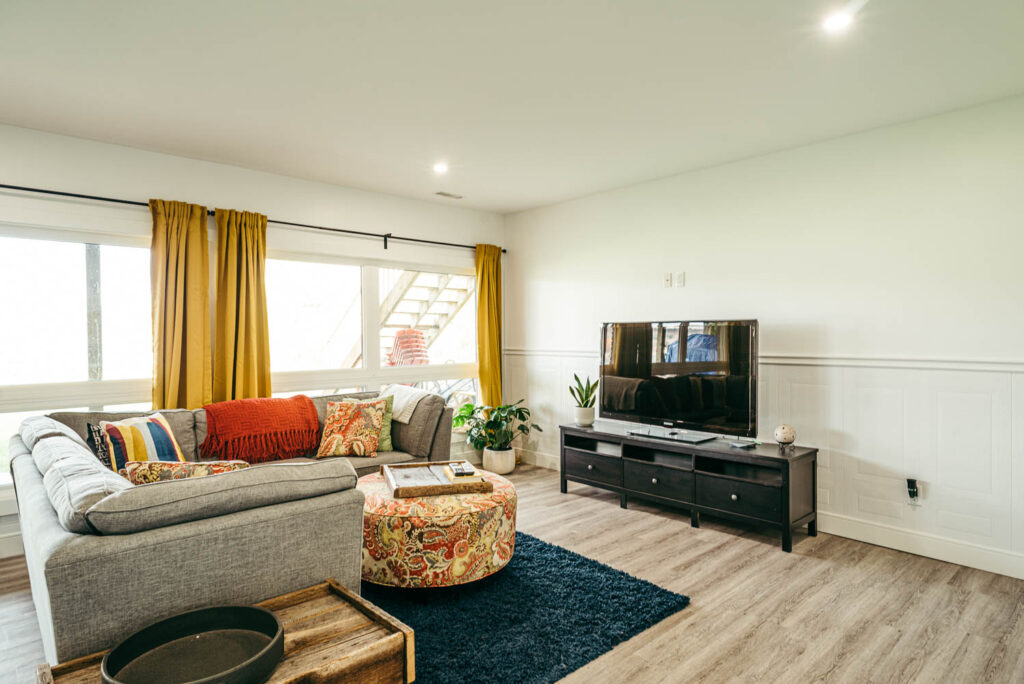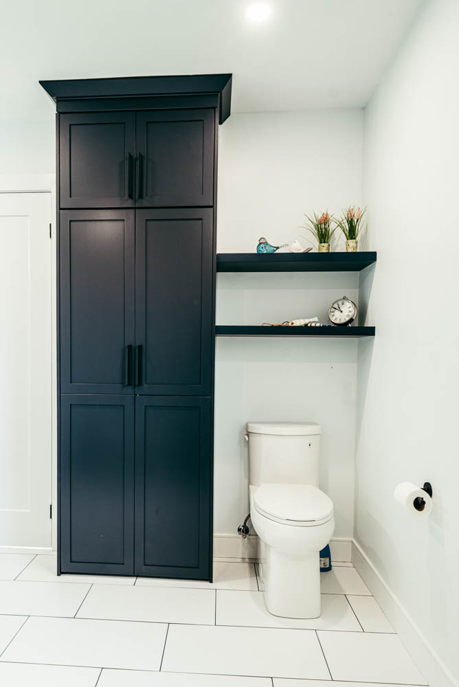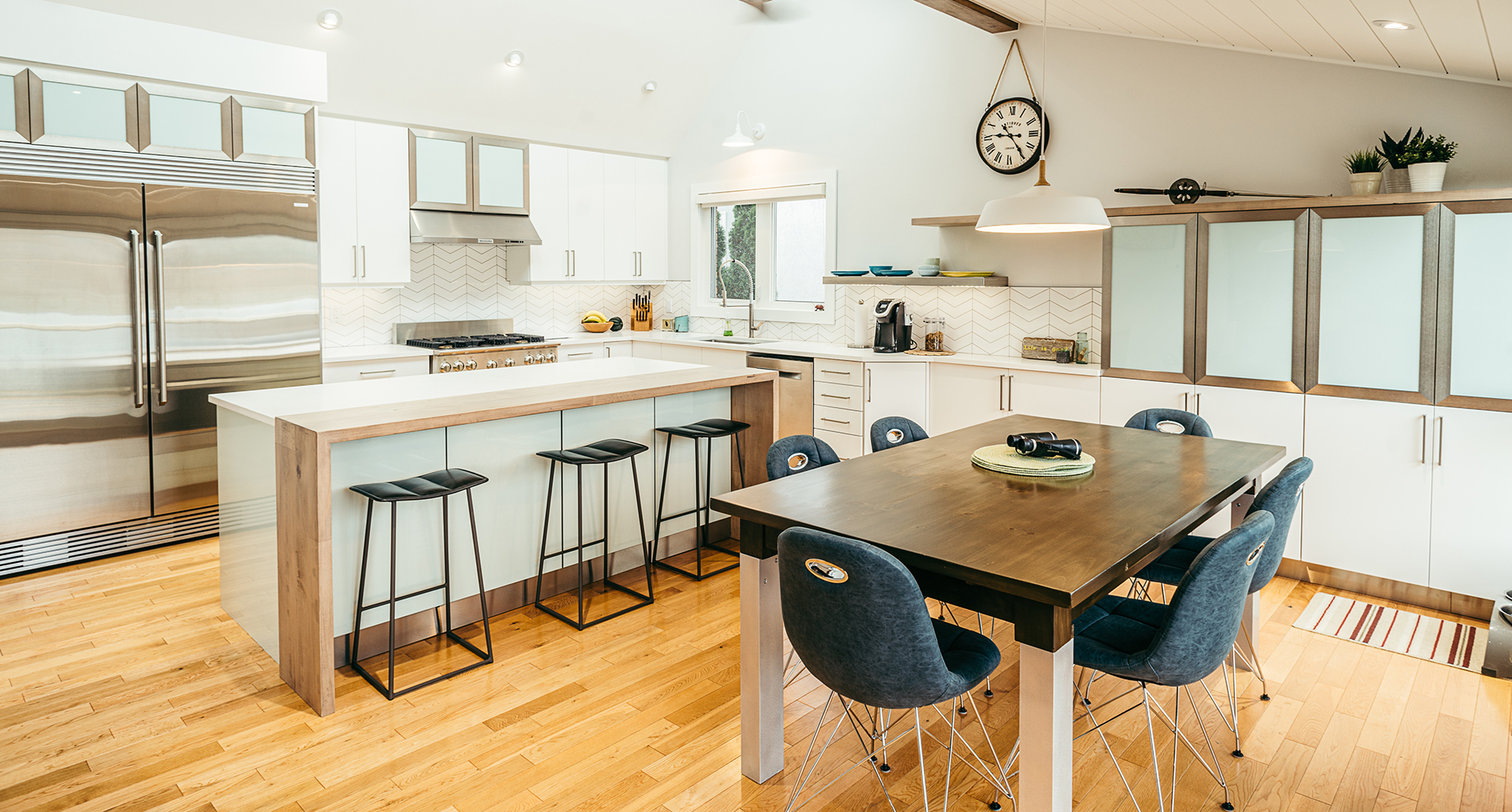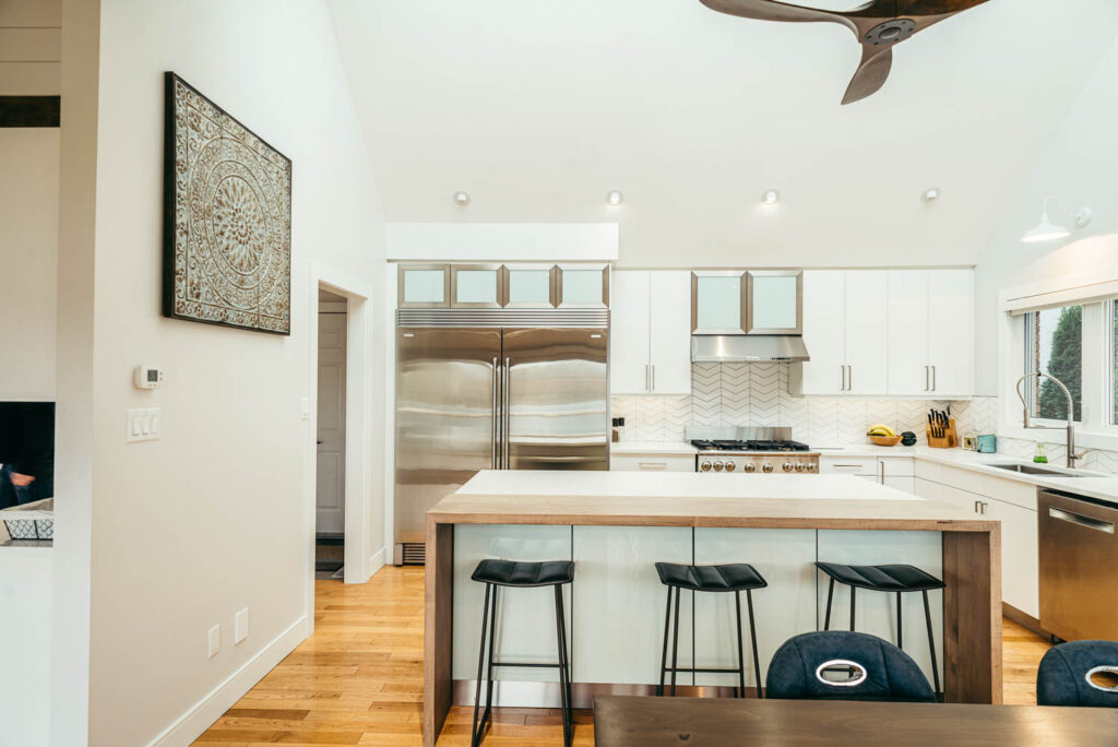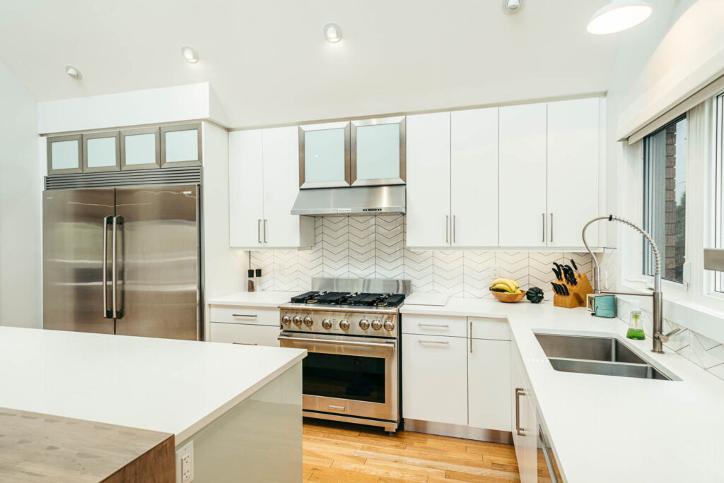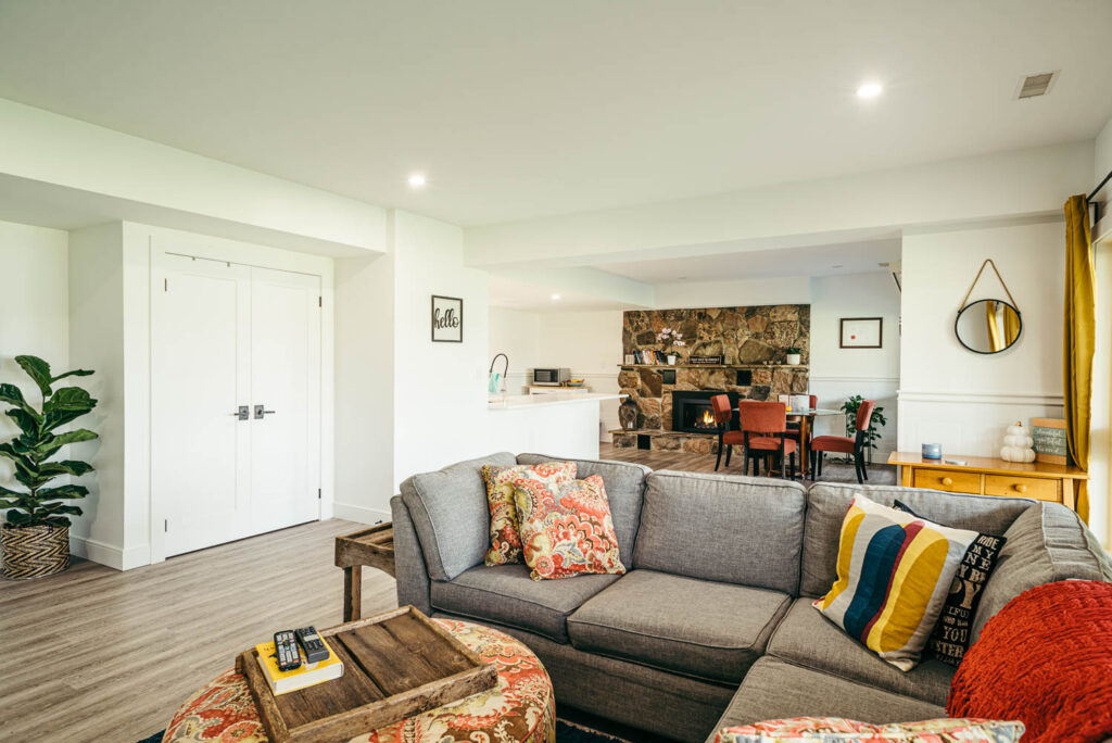 Our client grew up in this waterfront home. The intent of the renovation was to modernize the design while maintaining some of the original features of the home, like the wood burning fireplace clad in Georgian Bay stone in the family room. This provided just the right amount of nostalgia.