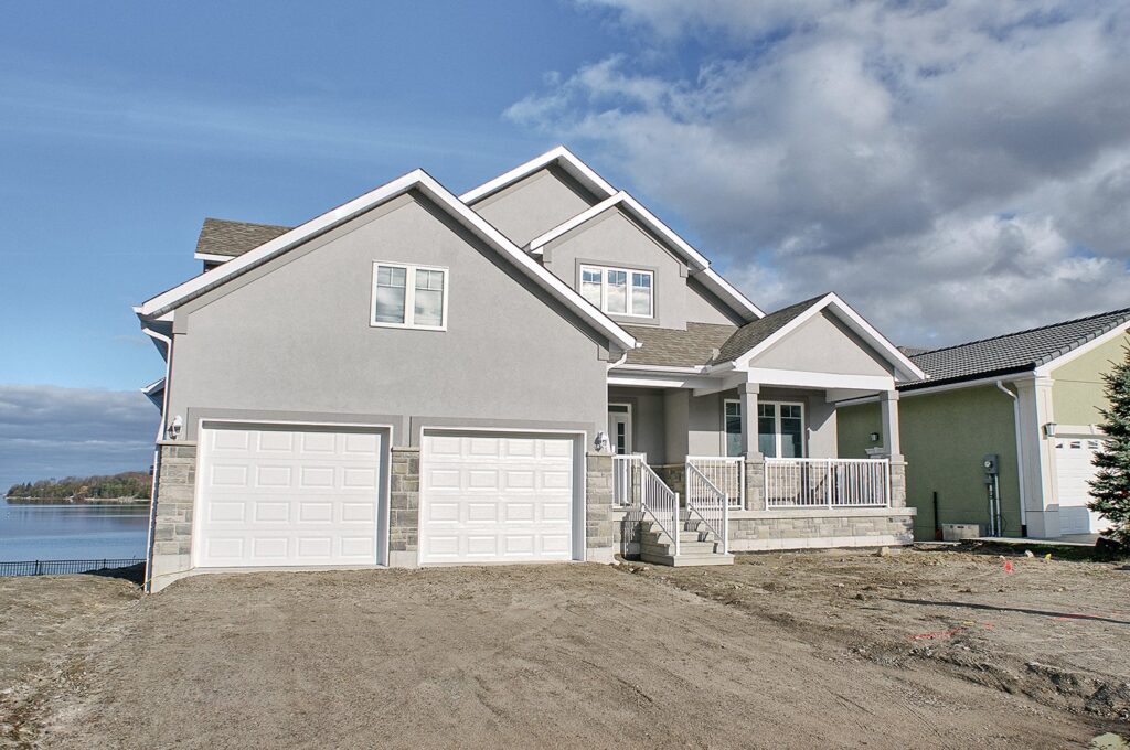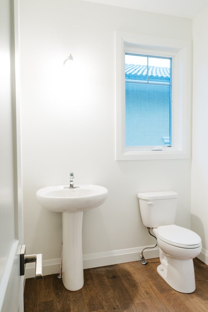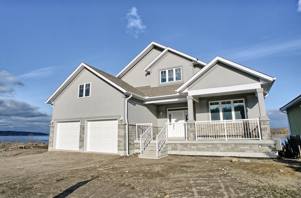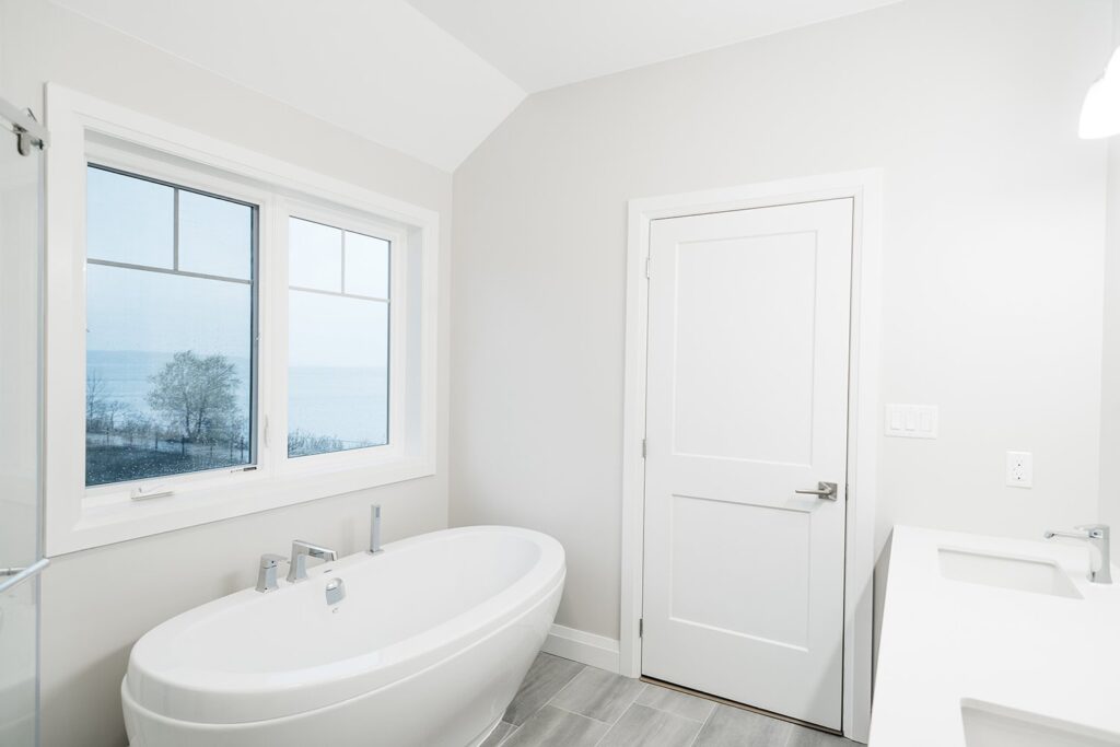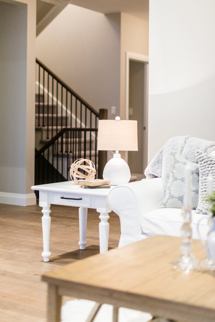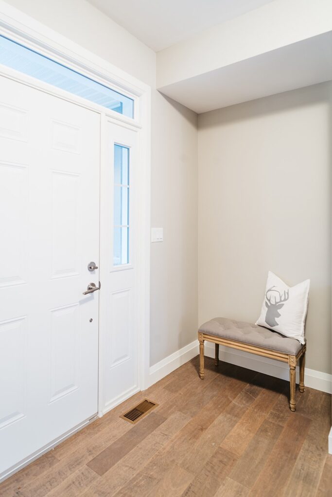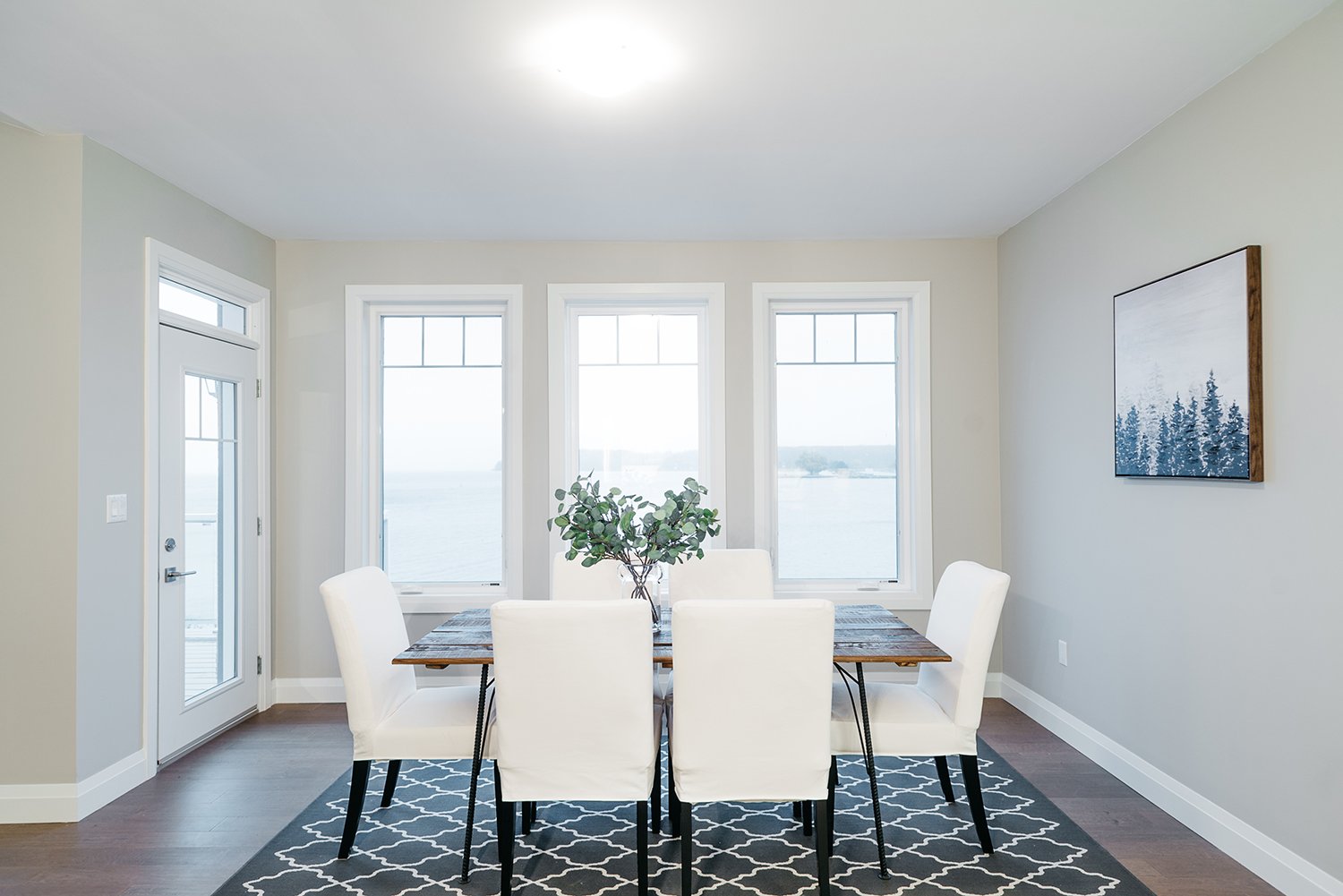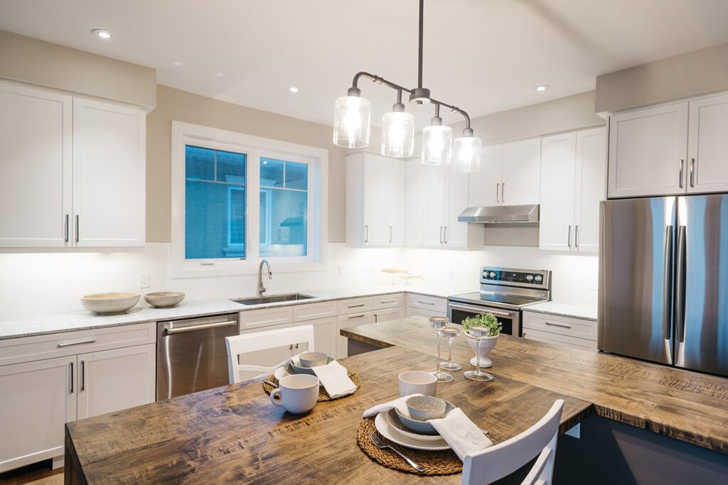 This 4 bedroom, 2.5 bath custom home features an open-concept layout with vaulted ceilings and hardwood floors throughout. The kitchen and living room features a blend of rustic and modern design elements – distressed wood counters and finishes, white cabinets and chairs, and stainless-steel appliances create a cozy and sophisticated atmosphere. The wood stove in the living room adds to the rustic charm of the space.