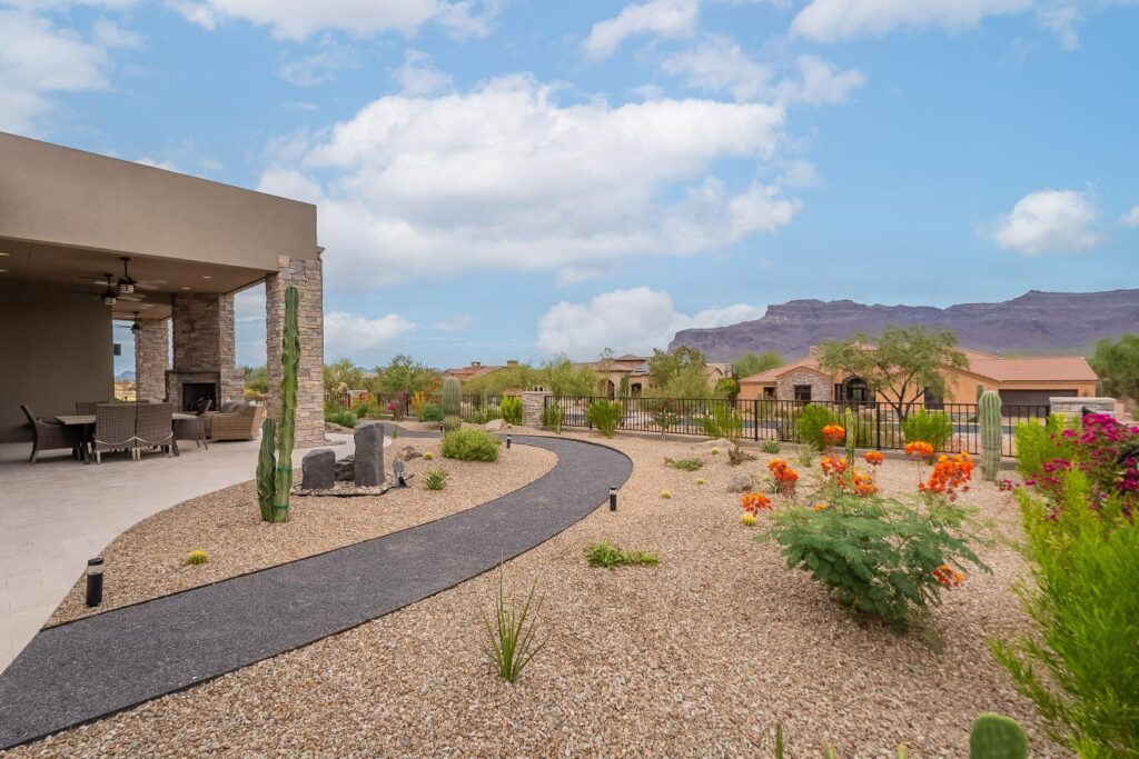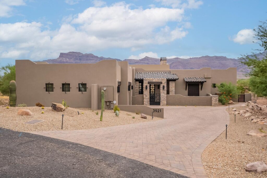 Step into the heart of Arizona’s desert charm with this stunning custom home located in the exclusive gated subdivision of El Mirador, Gold Canyon, AZ. Boasting 3,008 sq. ft. of beautifully designed living space, this residence features 3 spacious bedrooms and a custom office, seamlessly blending the elegance of modern design with the warmth of the southwest aesthetic.