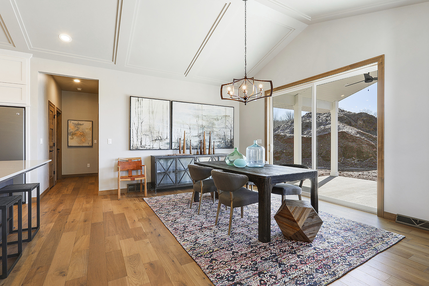 Cassie: Your eye sees a room like your ear hears music. So we talk about rhythm in design, and that’s a big deal with grouping of accessories, artwork and then it’s in relation also to what else is going on in the room. So if you have a lot of straight windows and you’re going to go hang a grouping of art,  then we may suggest more staggering.
