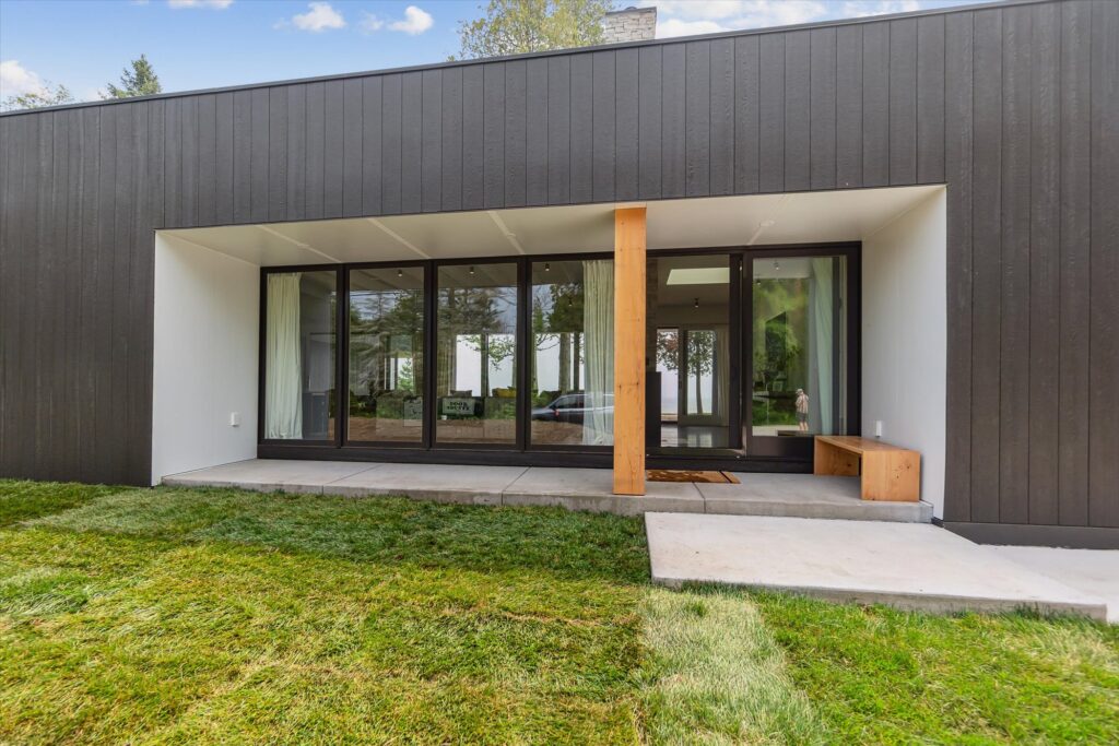 The home is modern in design, but the natural materials throughout—including reclaimed barn wood accents—bring warmth and familiarity, reflecting the character of Wisconsin’s Northwoods.