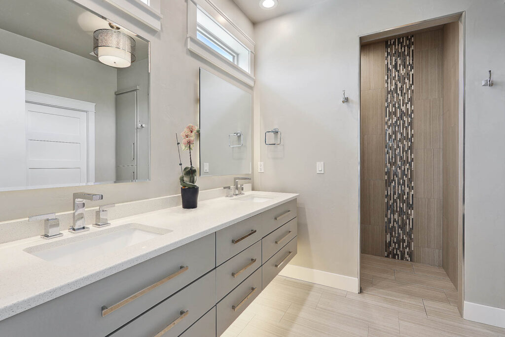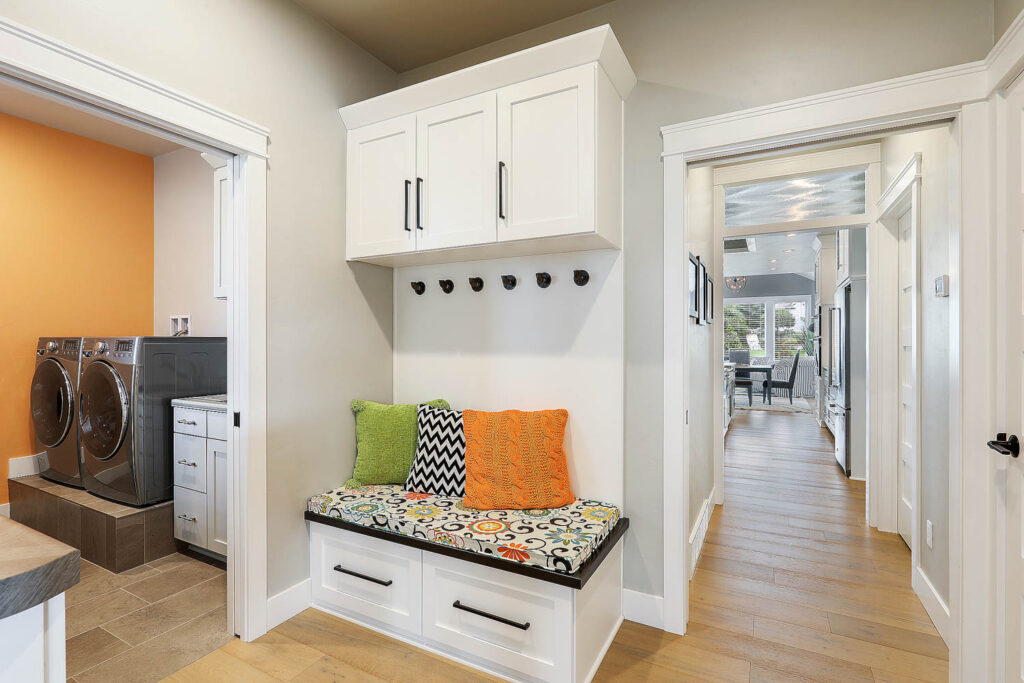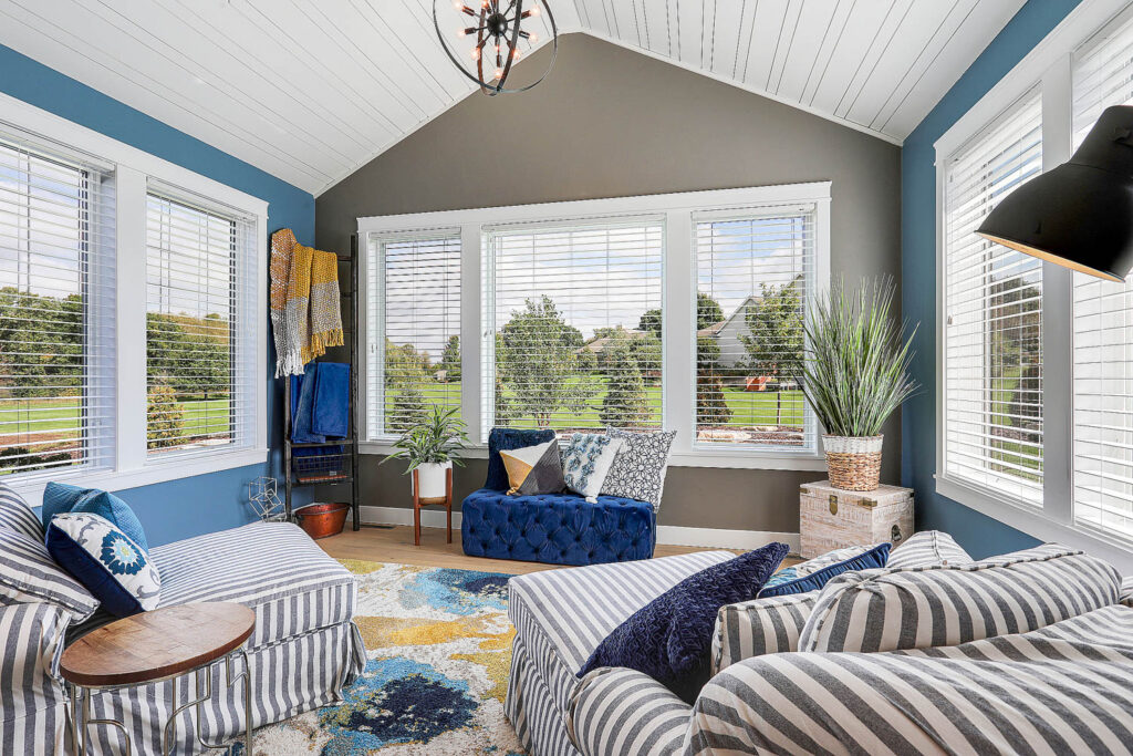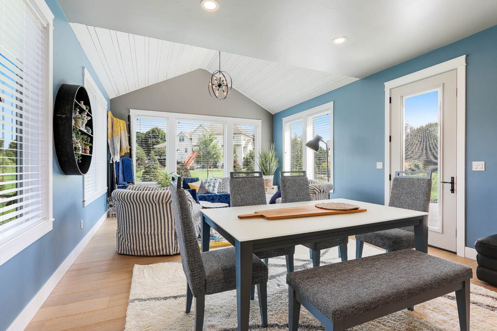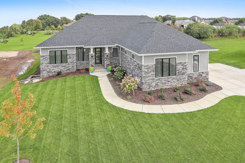This gorgeous custom home features a cohesive blending of styles, an open concept kitchen, and high-end finishes.